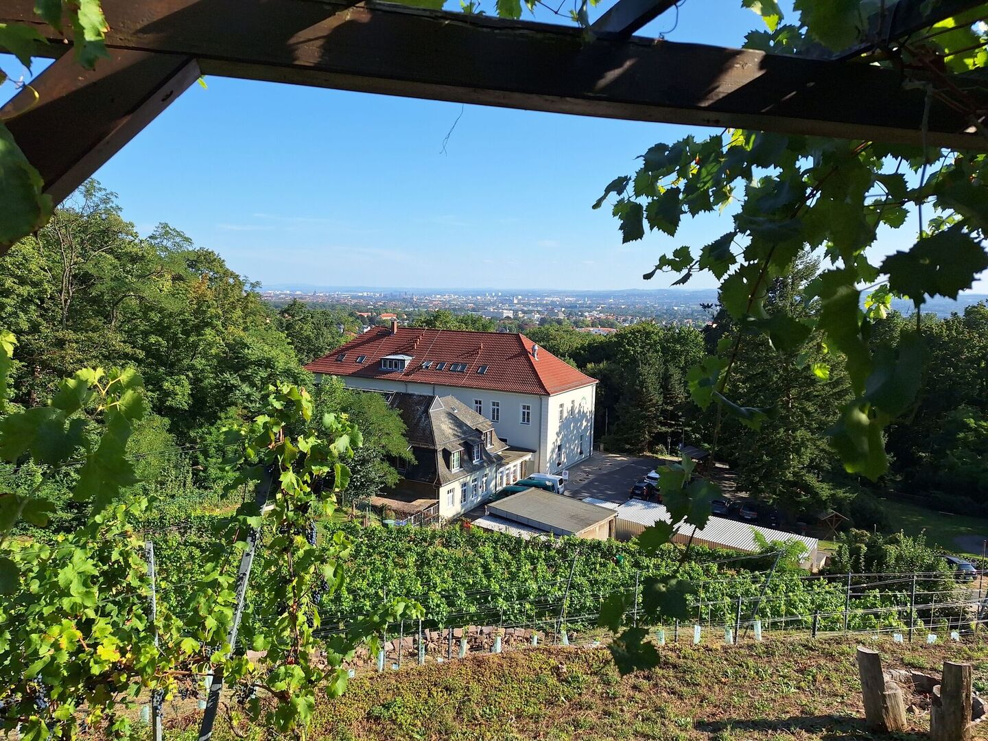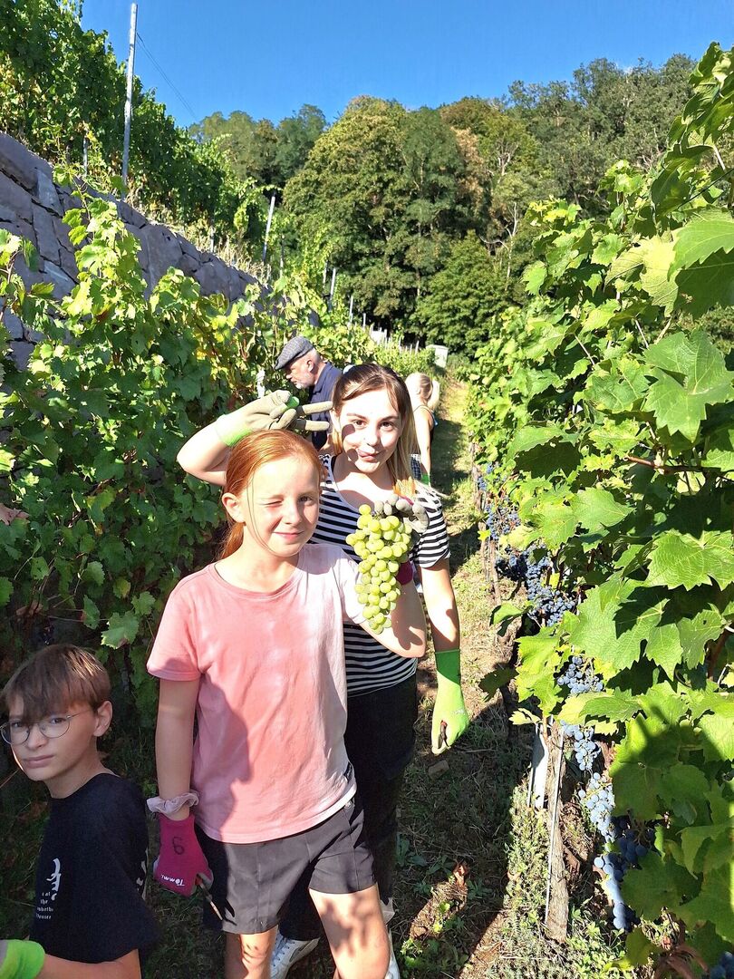Nächste Woche folgt dann Teil 2 der Weinlese, wenn die roten Cabernet Cortis-Trauben gelesen werden, eine Woche später folgen dann noch die Johanniter-Traube von den insgesamt 500 Stöcken im Weinberg hinter dem Haus. Diese werden mit professioneller Unterstützung zu Wein ausgebaut und als Geschenk für Freunde und Förderer der Kinderarche Sachsen verwendet.