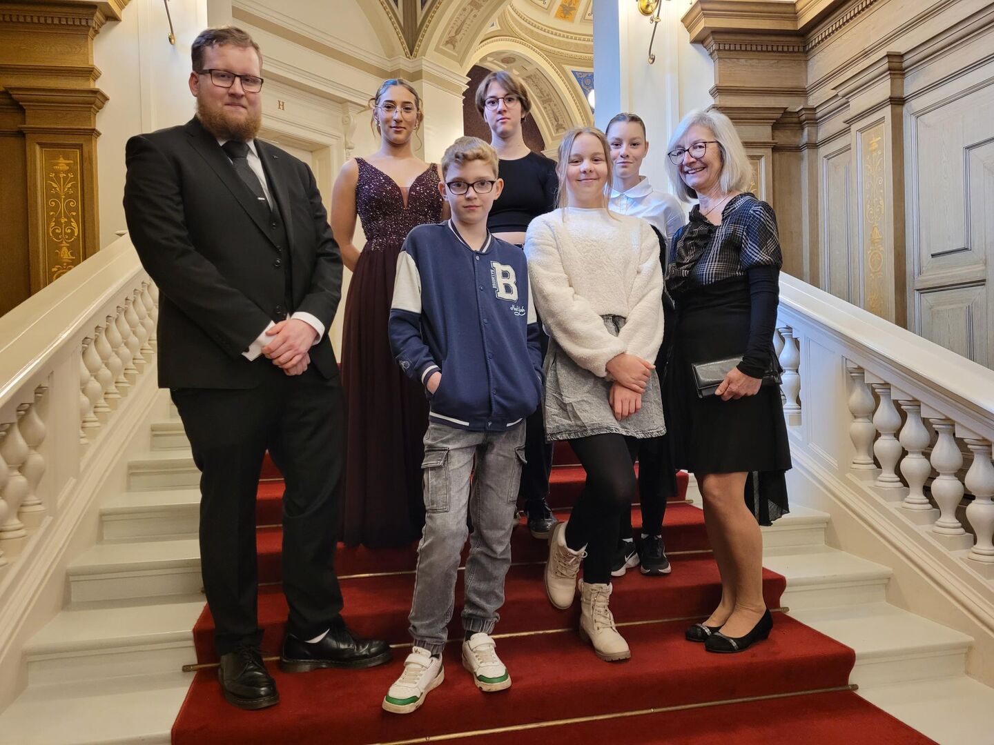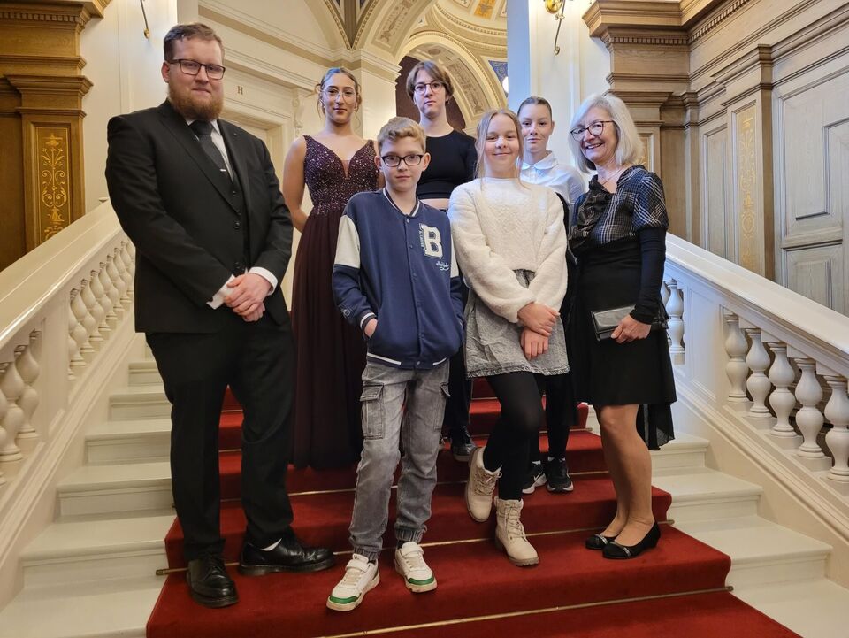 Manche besuchten schon einmal eine Vorstellung, aber für viele war es das erste Mal in der Semperoper. In der Pause waren alle Kinder auf einen Saft eingeladen, der eine willkommene Erfrischung bot, während die Gruppen das schöne Gebäude erkundeten oder Fotos mit den Tänzerinnen und Tänzern machen konnten.