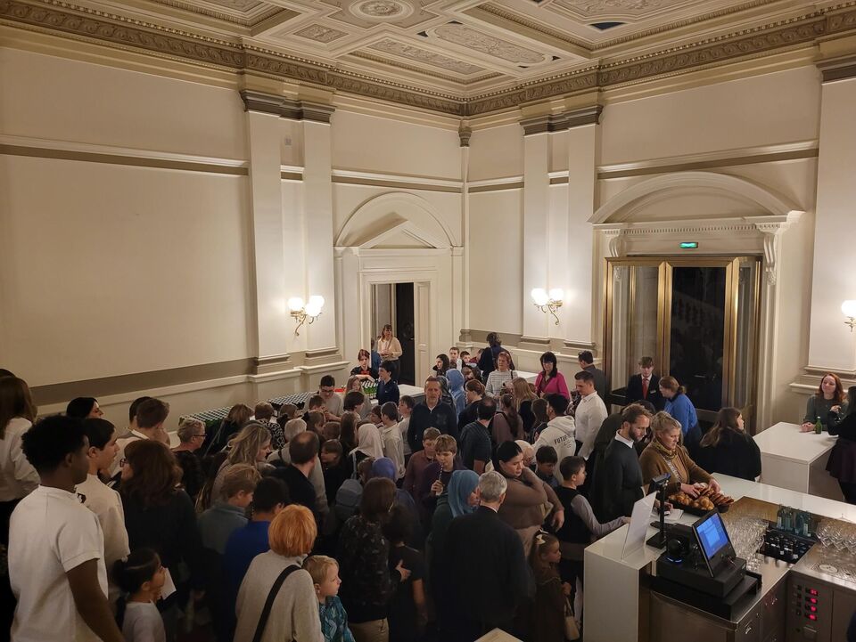 In der Pause waren alle Kinder auf einen Saft eingeladen, der eine willkommene Erfrischung bot, während die Gruppen das schöne Gebäude erkundeten oder Fotos mit den Tänzerinnen und Tänzern machen konnten.