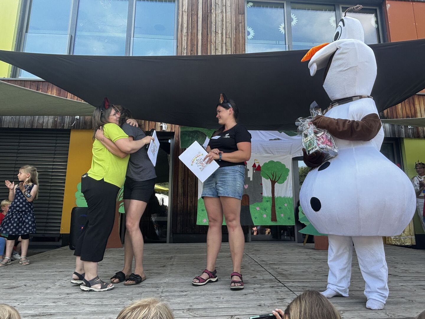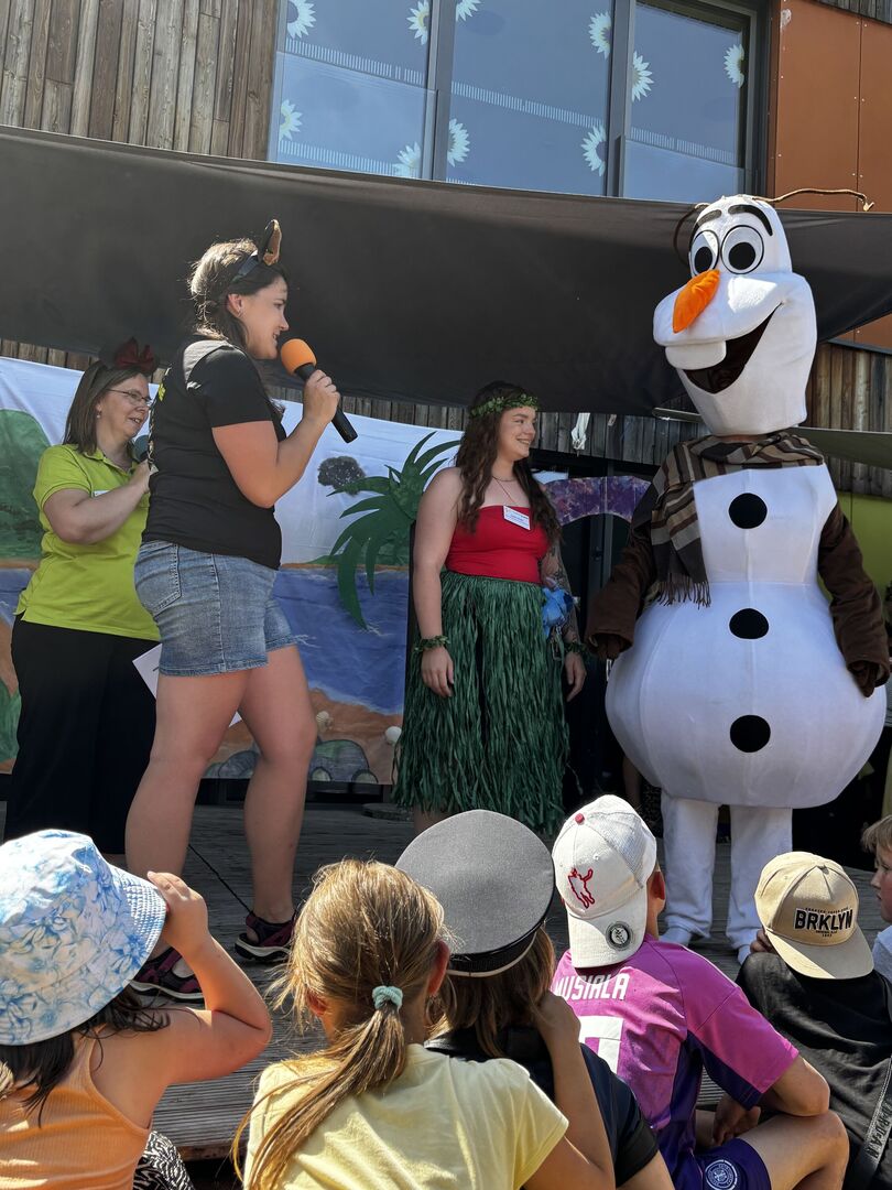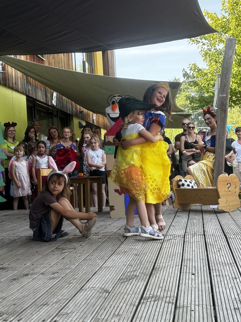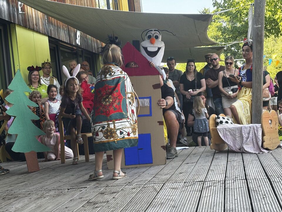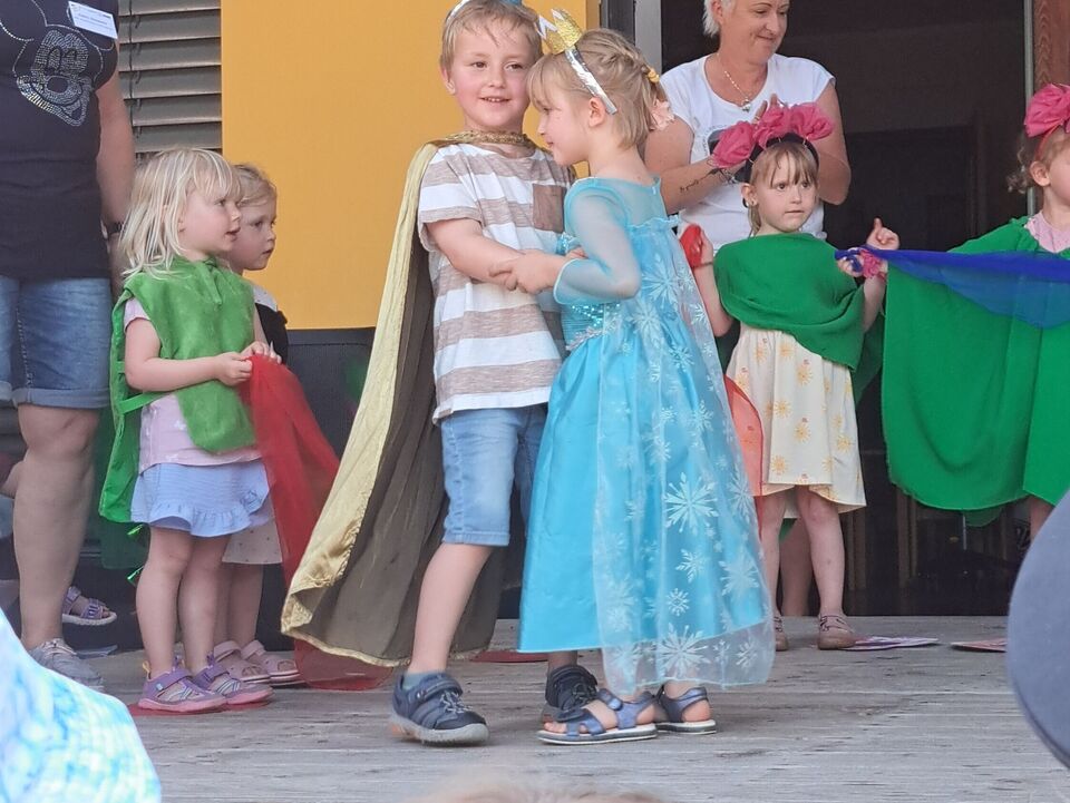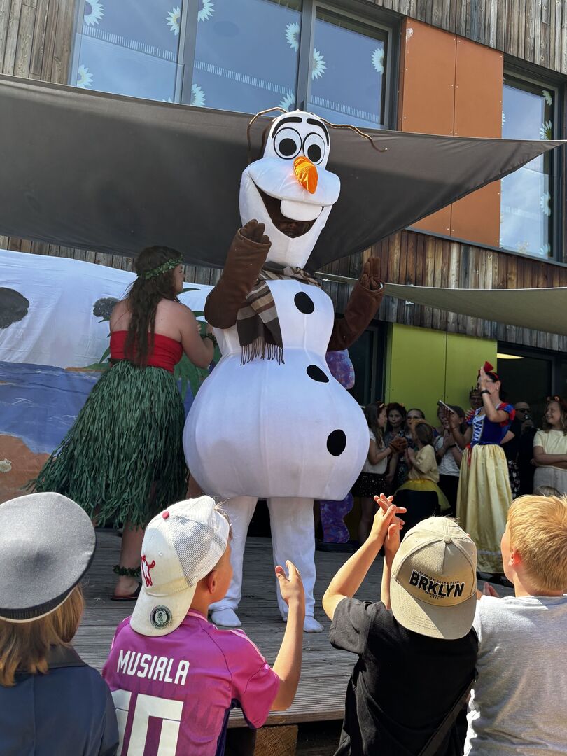 Was war das bitte für ein Nachmittag. Unter dem Motto „Disney“ folgten viele Gäste der Einladung und trafen sich bei bestem Wetter im großen Garten der Kindertagesstätte. Bei leckerem Kuchen und einer Tasse Kaffee genossen Eltern, Großeltern, Kinder und Freunde die gemeinsame Zeit in der tolle Gespräche entstanden. Punkt 15.15 Uhr eröffneten beide Einrichtungsleiterinnen Frau Förster und Frau Halbauer das diesjährige Sommerfest. Zu Beginn starteten kleine zauberhafte Schmetterlinge aus dem gelben Bereich mit einer Tanzeinlage von der Raupe zum Schmetterling und verzückten somit das Publikum schon zu Beginn. Daran angeknüpft folgte eine coole Überraschung, denn Olaf der Schneemann lies es sich nicht nehmen die Kinder höchstpersönlich zu besuchen und dabei das tolle einstudierte Theaterstück der Hortkinder zu bestaunen. Ein Zusammenspiel aus König der Löwen, Eiskönigin und Vaiana welches mit Worten und Tänzen begleitet wurde, erhielt tosenden Beifall durch das Publikum.