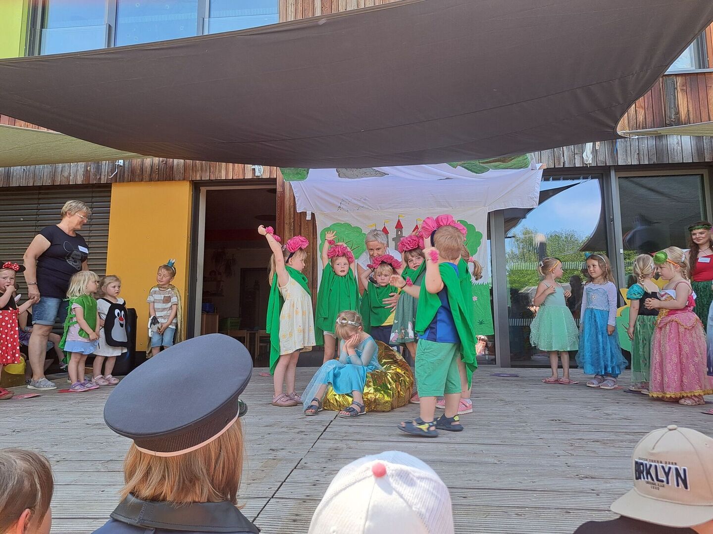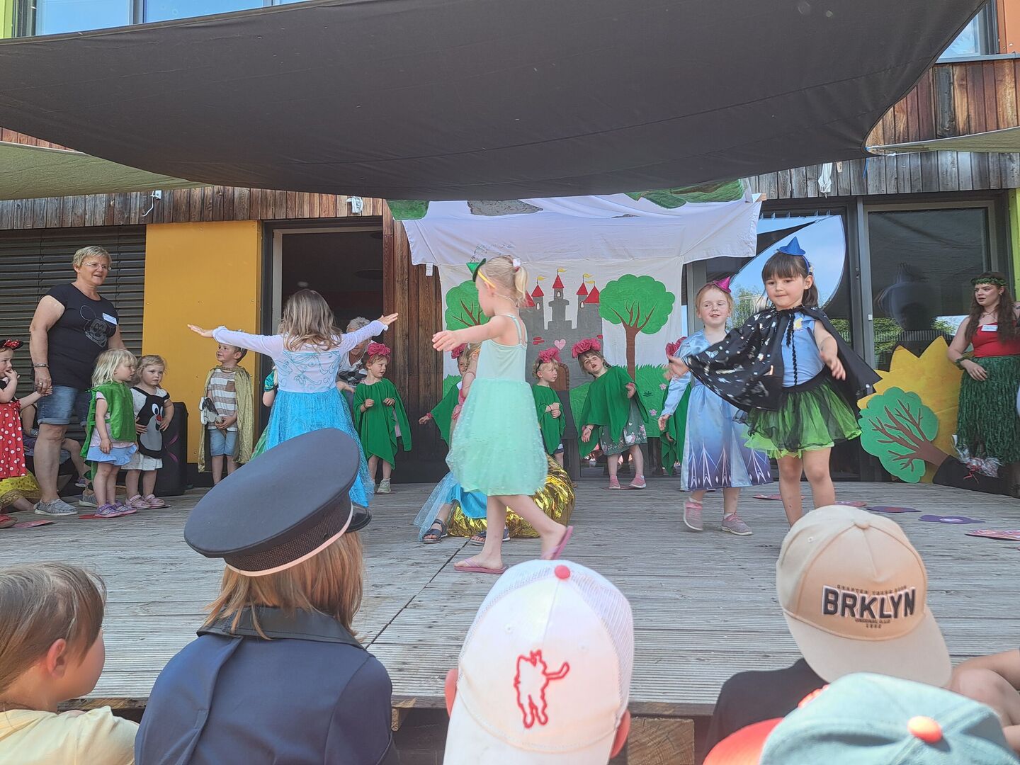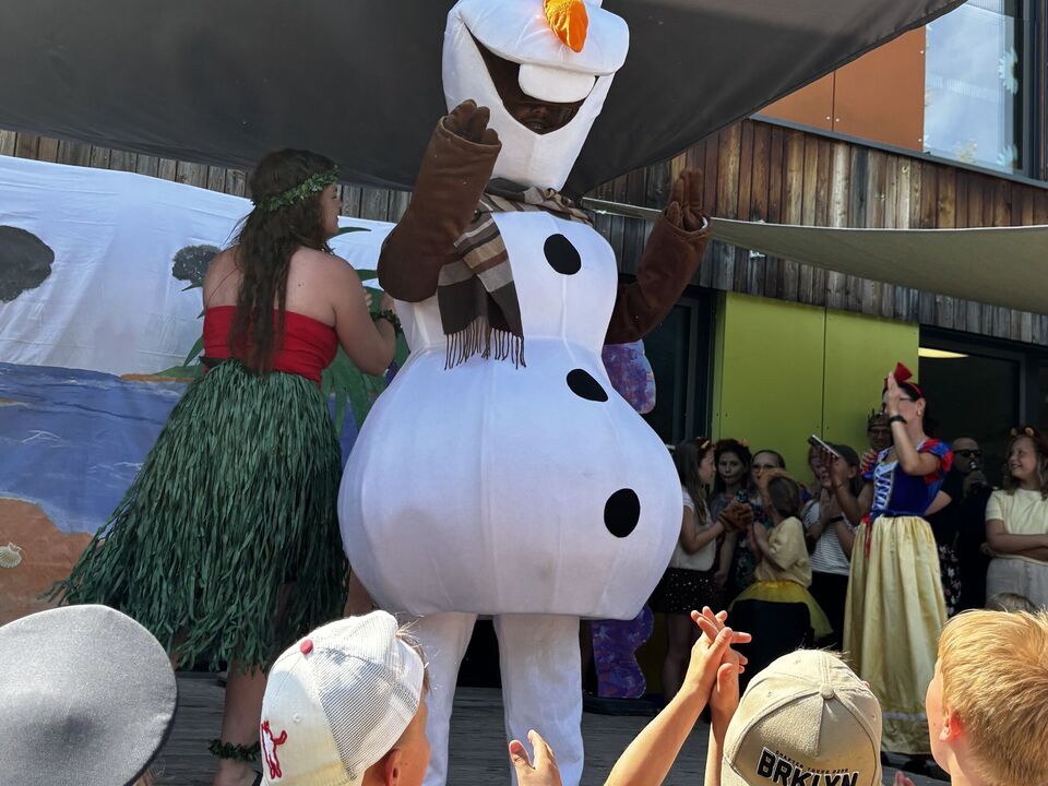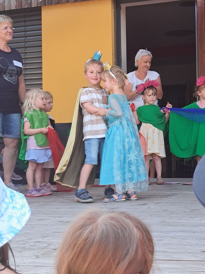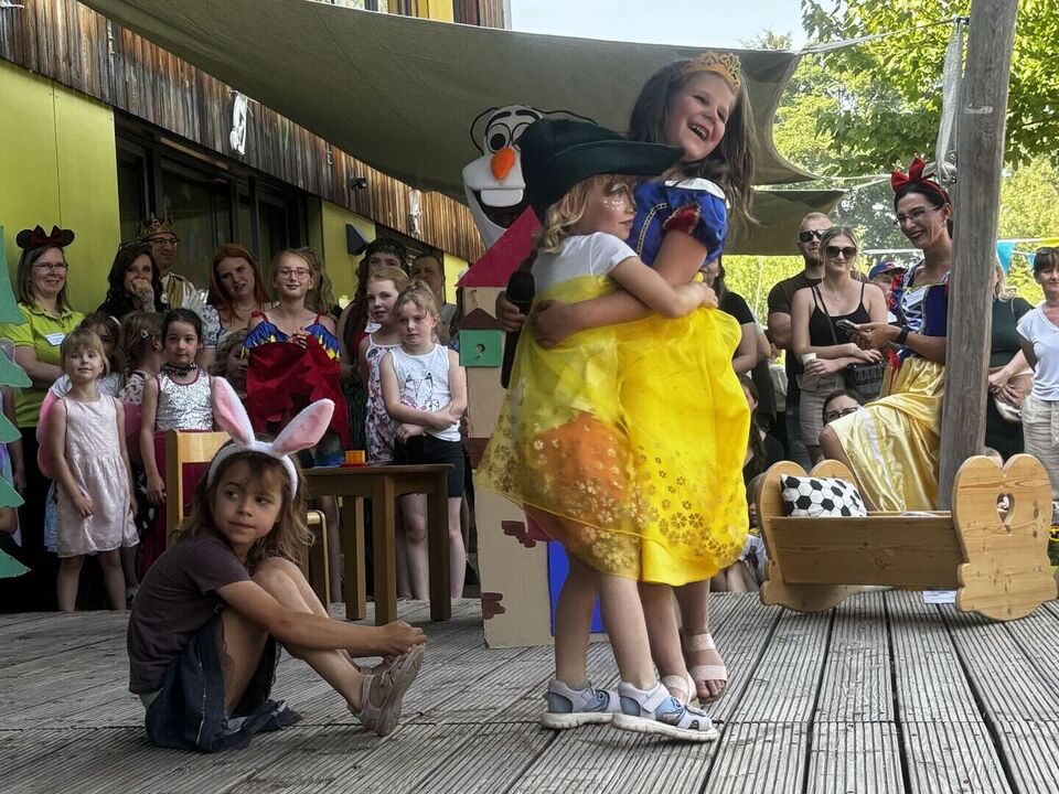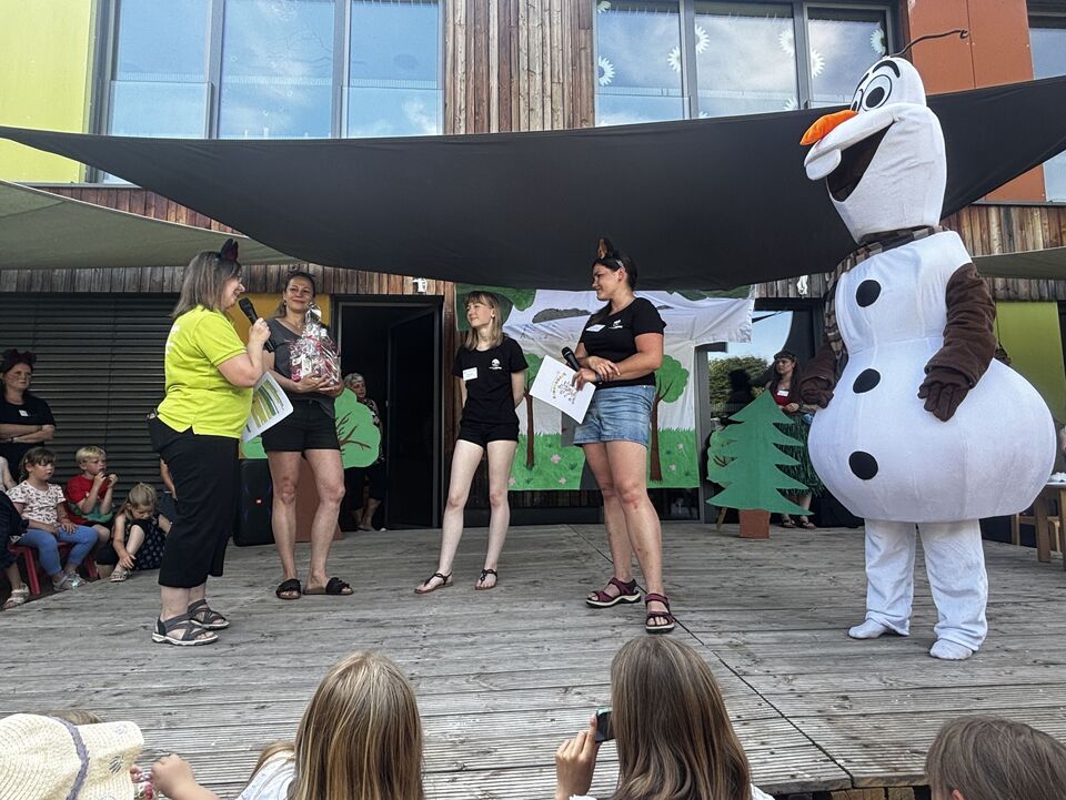 Was war das bitte für ein Nachmittag. Unter dem Motto „Disney“ folgten viele Gäste der Einladung und trafen sich bei bestem Wetter im großen Garten der Kindertagesstätte. Bei leckerem Kuchen und einer Tasse Kaffee genossen Eltern, Großeltern, Kinder und Freunde die gemeinsame Zeit in der tolle Gespräche entstanden. Punkt 15.15 Uhr eröffneten beide Einrichtungsleiterinnen Frau Förster und Frau Halbauer das diesjährige Sommerfest. Zu Beginn starteten kleine zauberhafte Schmetterlinge aus dem gelben Bereich mit einer Tanzeinlage von der Raupe zum Schmetterling und verzückten somit das Publikum schon zu Beginn. Daran angeknüpft folgte eine coole Überraschung, denn Olaf der Schneemann lies es sich nicht nehmen die Kinder höchstpersönlich zu besuchen und dabei das tolle einstudierte Theaterstück der Hortkinder zu bestaunen. Ein Zusammenspiel aus König der Löwen, Eiskönigin und Vaiana welches mit Worten und Tänzen begleitet wurde, erhielt tosenden Beifall durch das Publikum.