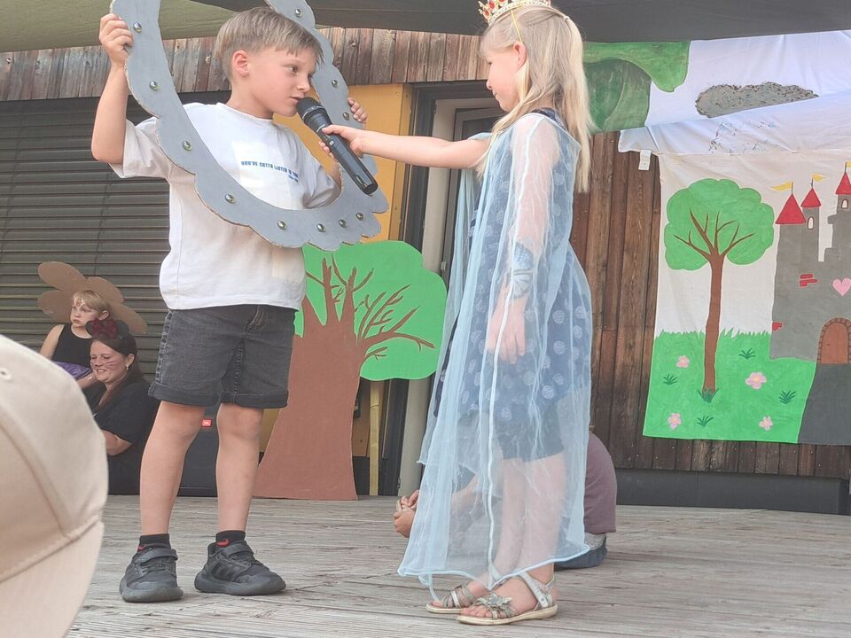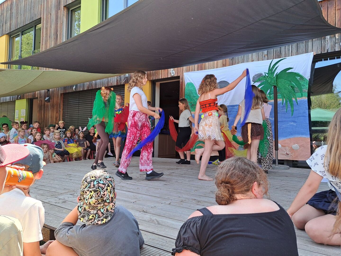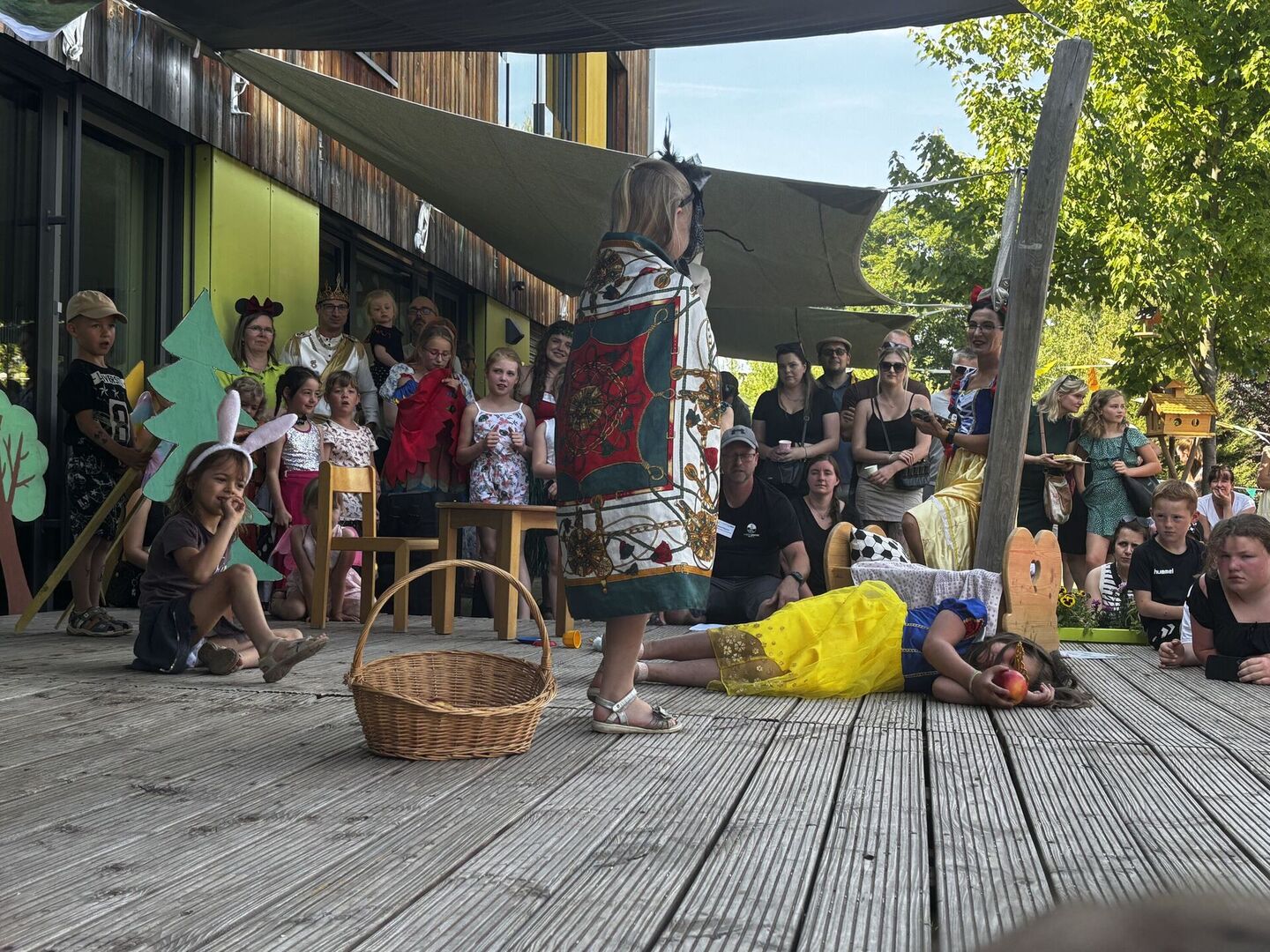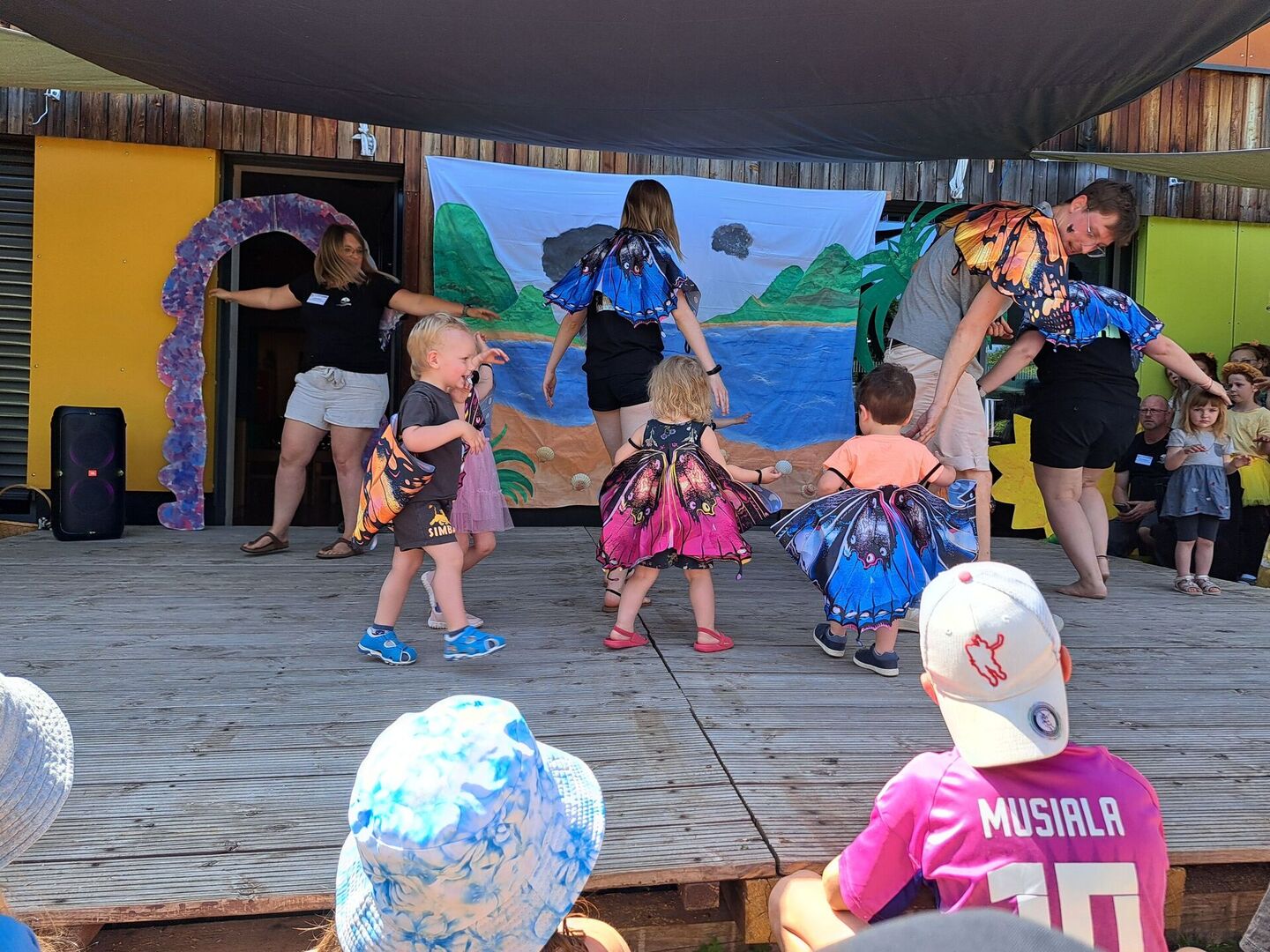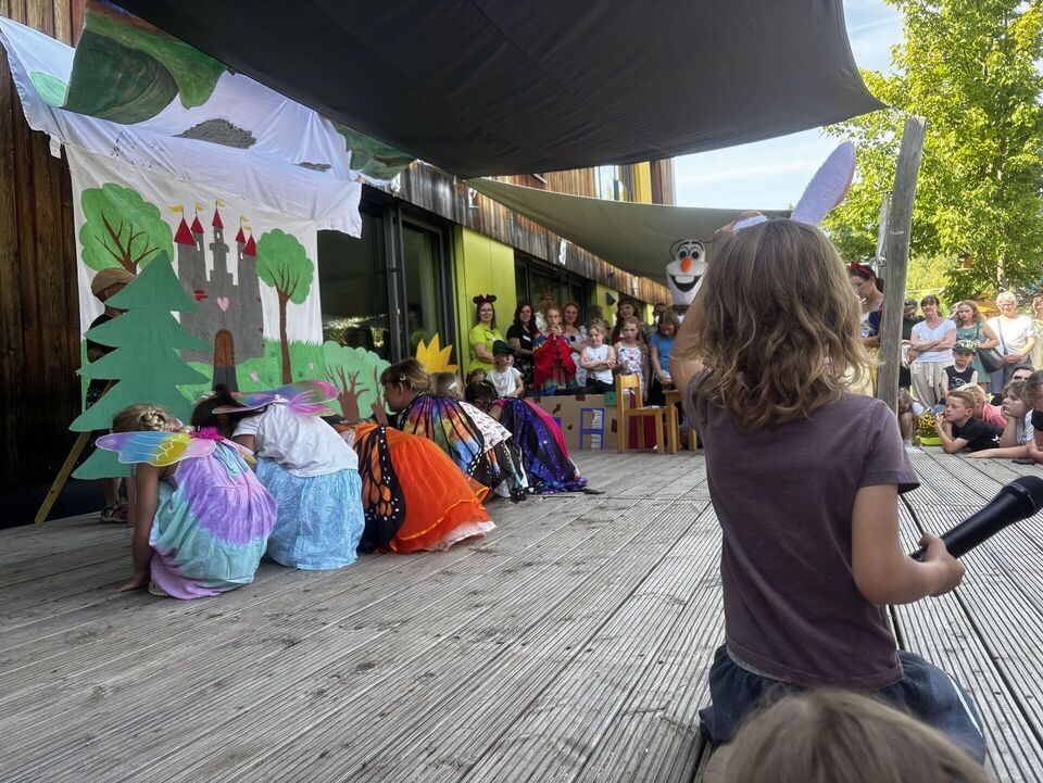 Was war das bitte für ein Nachmittag. Unter dem Motto „Disney“ folgten viele Gäste der Einladung und trafen sich bei bestem Wetter im großen Garten der Kindertagesstätte. Bei leckerem Kuchen und einer Tasse Kaffee genossen Eltern, Großeltern, Kinder und Freunde die gemeinsame Zeit in der tolle Gespräche entstanden. Punkt 15.15 Uhr eröffneten beide Einrichtungsleiterinnen Frau Förster und Frau Halbauer das diesjährige Sommerfest. Zu Beginn starteten kleine zauberhafte Schmetterlinge aus dem gelben Bereich mit einer Tanzeinlage von der Raupe zum Schmetterling und verzückten somit das Publikum schon zu Beginn. Daran angeknüpft folgte eine coole Überraschung, denn Olaf der Schneemann lies es sich nicht nehmen die Kinder höchstpersönlich zu besuchen und dabei das tolle einstudierte Theaterstück der Hortkinder zu bestaunen. Ein Zusammenspiel aus König der Löwen, Eiskönigin und Vaiana welches mit Worten und Tänzen begleitet wurde, erhielt tosenden Beifall durch das Publikum.