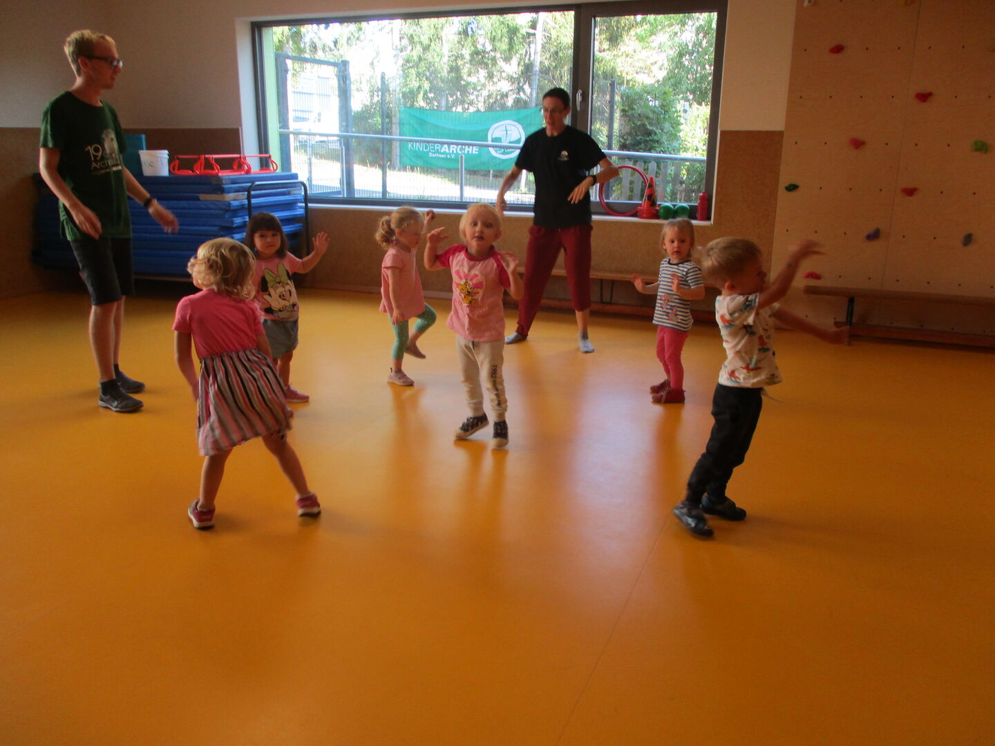 Das Recht auf Gesundheit kam auch nicht zu kurz. Dazu zählt neben gesunder Ernährung auch ausreichend Bewegung. In unserem tollen Bewegungsraum gab es diese Woche viele Möglichkeiten zu Bewegungsliedern zu tanzen oder sportliche Hindernisse zu überwinden.