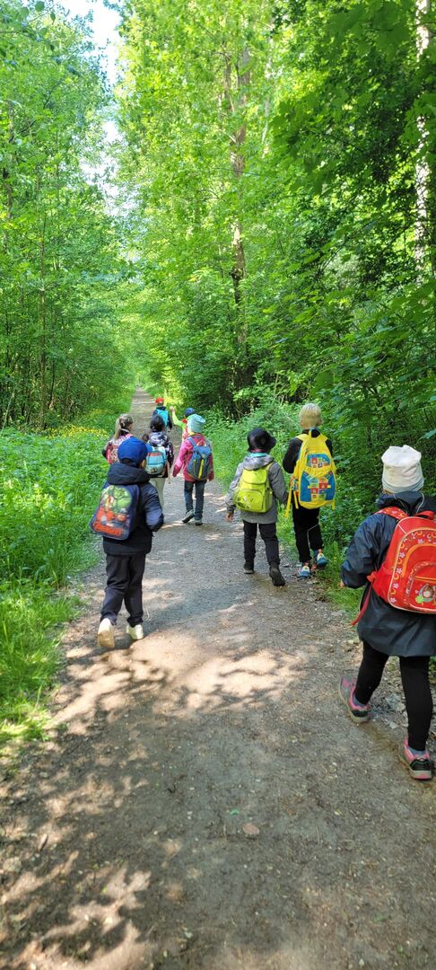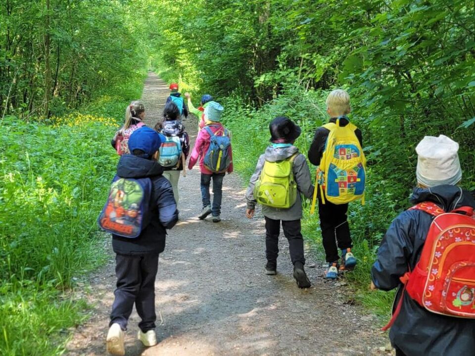 Die Vorschüler der Kinderoase starteten bei herrlichem Sonnenschein, gepacktem Rucksack und bester Laune ihre Wandertour. Der lange Weg war das Ziel, denn mit allen Sinnen konnten die Kinder die Natur wahrnehmen. Ob das Singen der Vögel, die Fische im Teich oder die Vielfalt der Farben in der Natur.