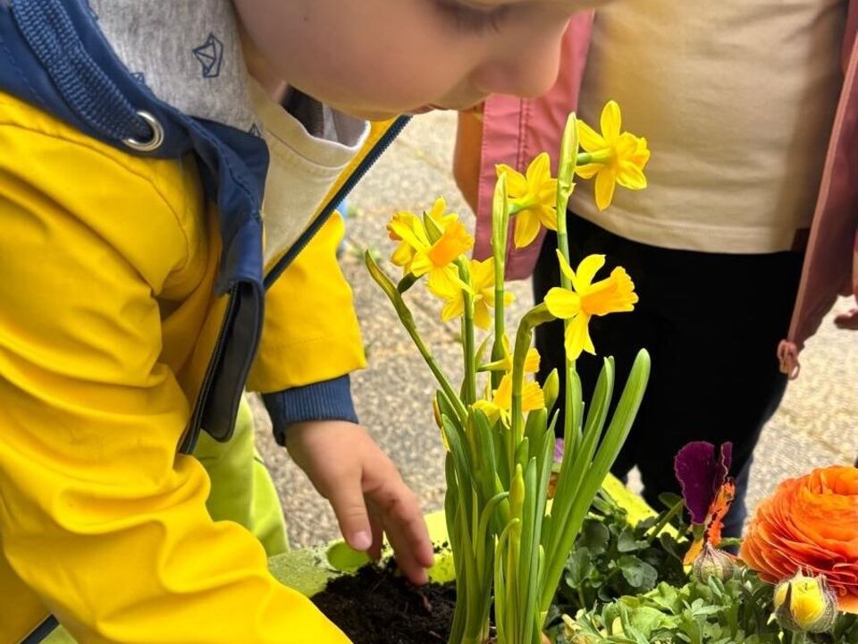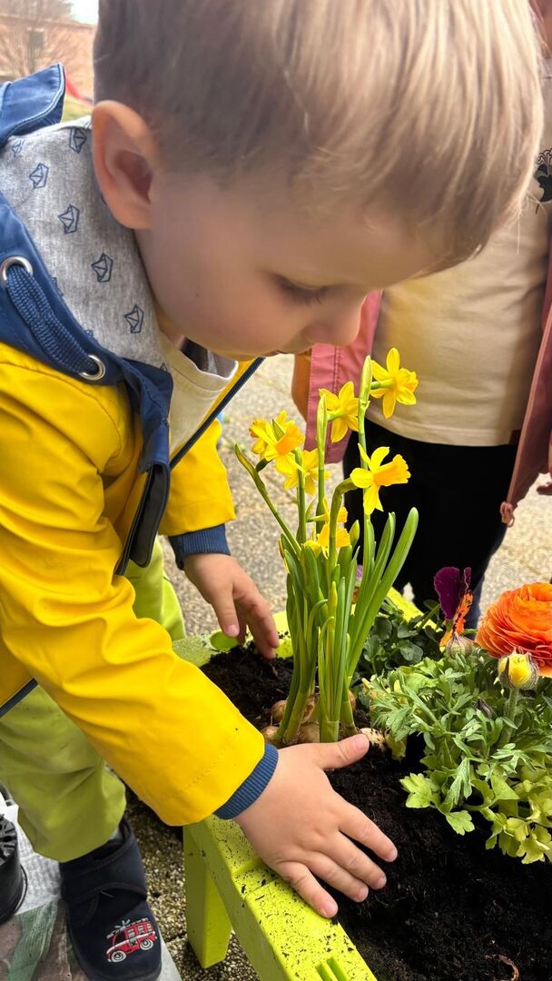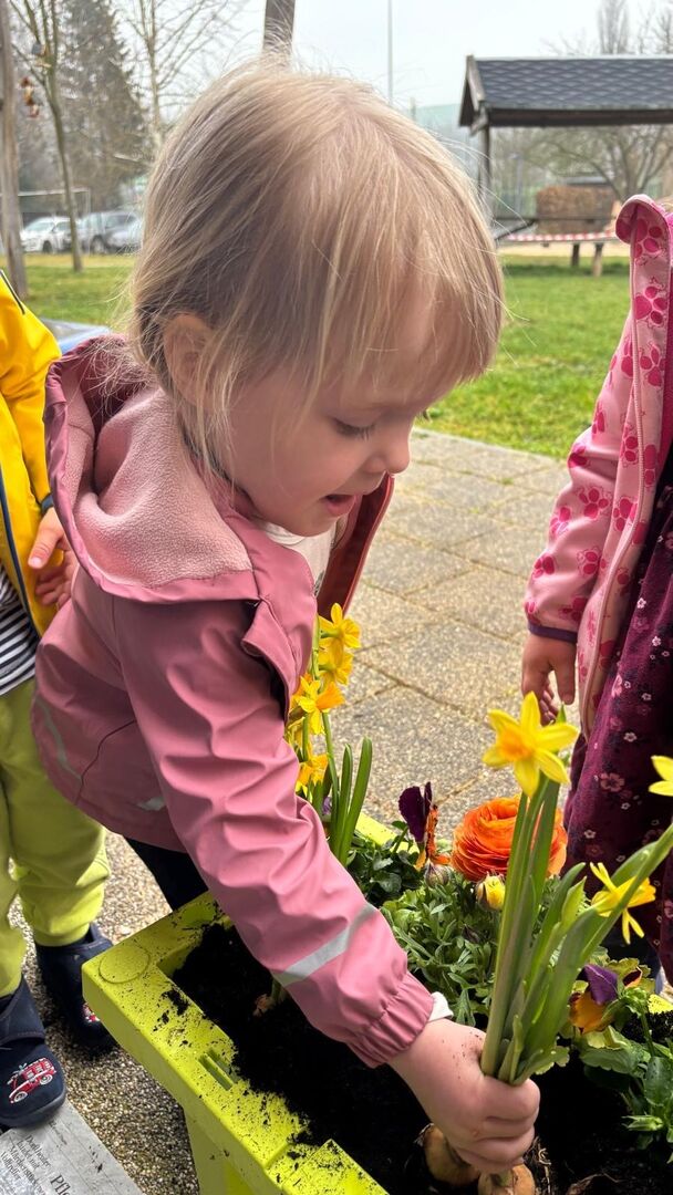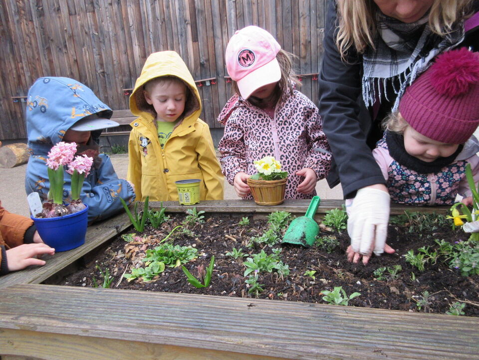 Am Mittwoch wurde der Frühling dann in die Kinderoase geholt. Nach einem ausgiebigen Frühstück begrüßten sich die Kinder und Fachkräfte mit Geschichten und Liedern und begannen damit ihr Frühlingsfest im roten Bereich. Für ein paar bunte Farbkleckse in unserem Garten sorgten dann die Blümchen, die die Kinder zuvor mitgebracht hatten. Gemeinsam wurden diese mit den Kindern in die vorhandenen Pflanzkästen und Hochbeete gesetzt. Lieben Dank an die Eltern für diese Spende.