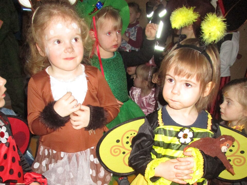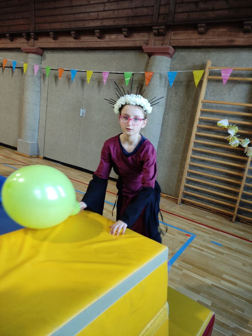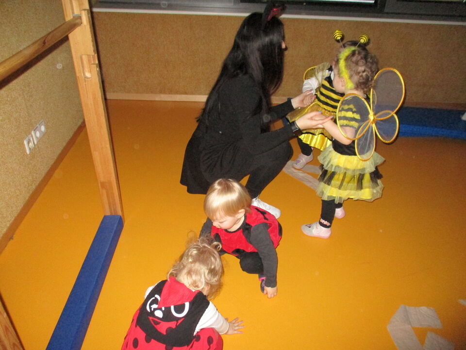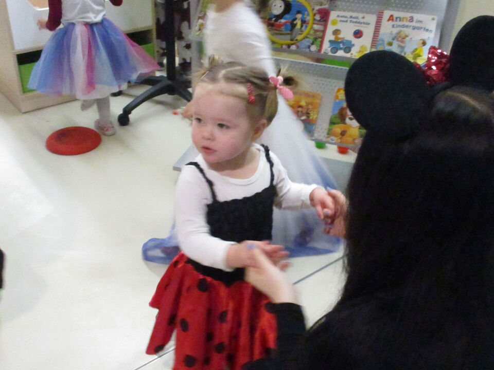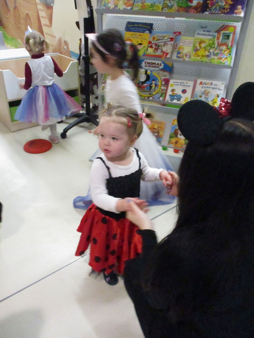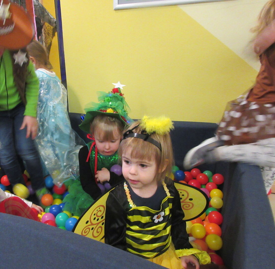 Zu Beginn der Faschingsparty bekamen unsere Kita-Kinder Besuch von der Hexe Baba Jaga. Anschließend erwartete die Kinder viele lustige Spiele für Groß und Klein. Mit viel Ausgelassenheit, Trubel und Freude flitzten die Kinder durch unseren großen Flur, in dem ein kleiner Parcour aufgebaut war, veranstalteten eine Stuhlpolonaise, tanzten zu Musik bei unserer Mini-Disko und dekorierten unsere Kita mit jeder Menge Klopapier, Luftballons und Papierschlangen. Besonders beliebt unter unseren Kleinsten waren das Bällebad und die Hüpftiere, auf denen sie ausgelassen durch die Räume hüpften.