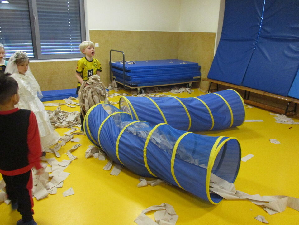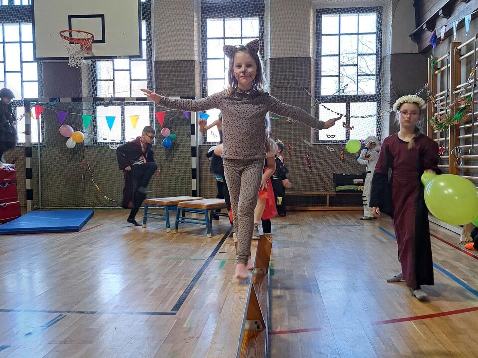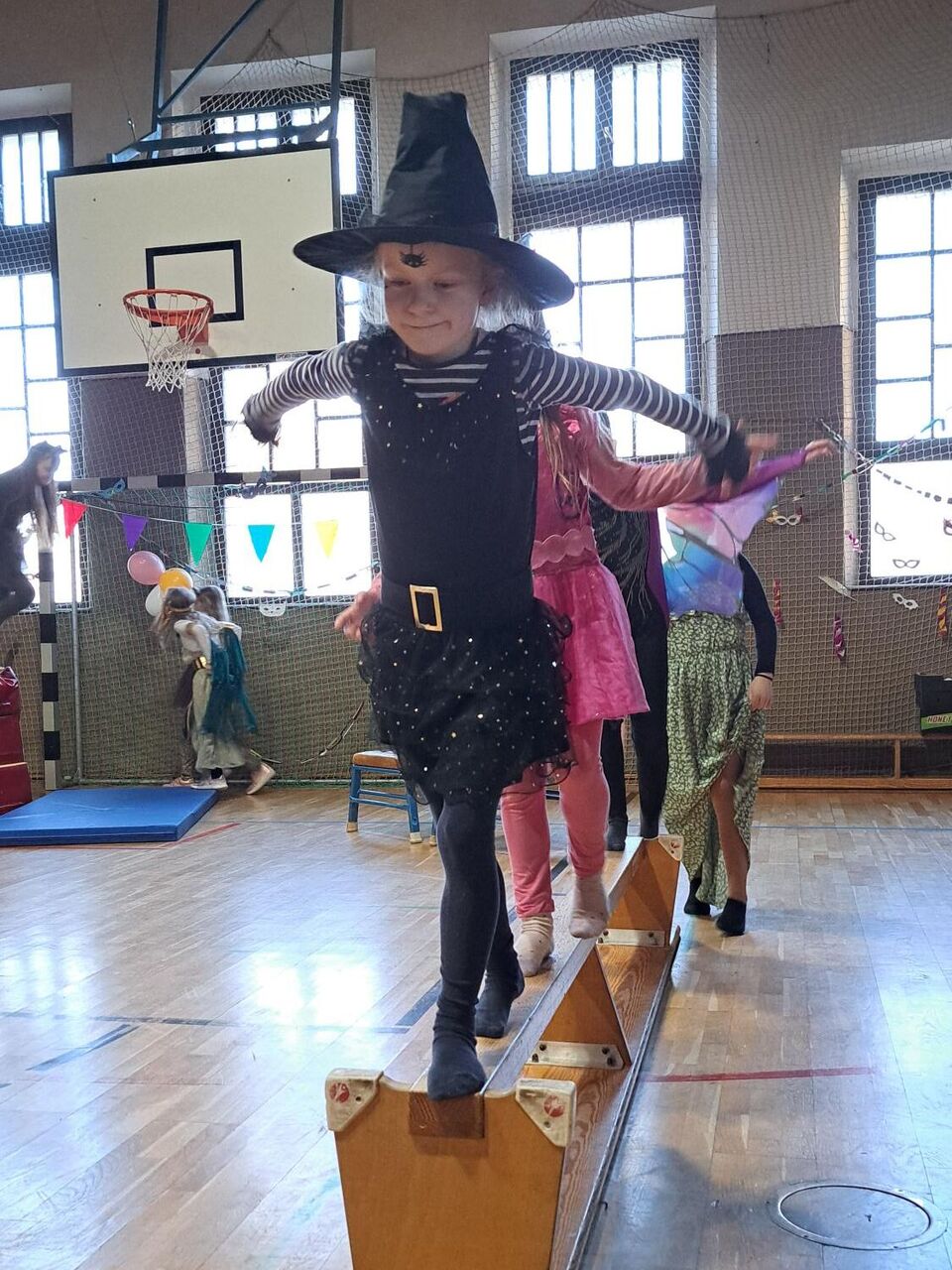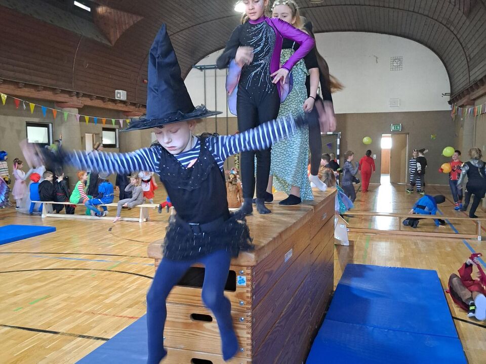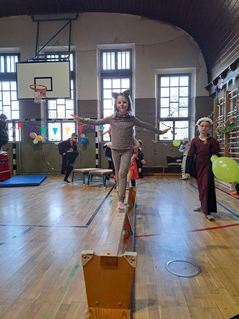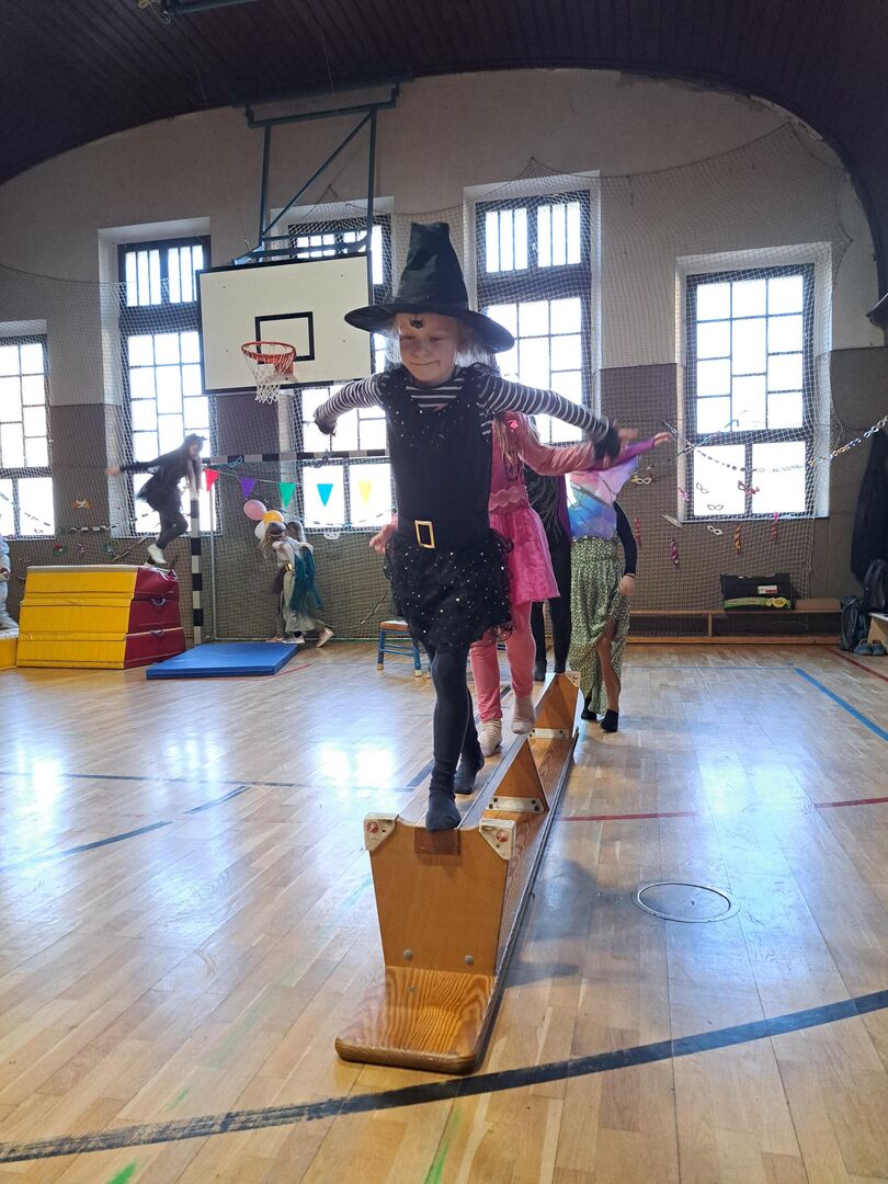 Auch bei unseren Größten, den Hortkindern stand heute das Ferienprogramm ganz im Sinne des Faschingsdienstages. Gemeinsam liefen wir kostümiert in die nahegelegene Sporthalle der Sahnschule in Crimmitschau, in der dann die Faschingsparty steigen sollte. Dort konnten die Kinder sich durch einen Parcour balancieren, klettern und springen oder sich auf unserer großen Tanzfläche bewegen. Und was darf da nicht fehlen?!
