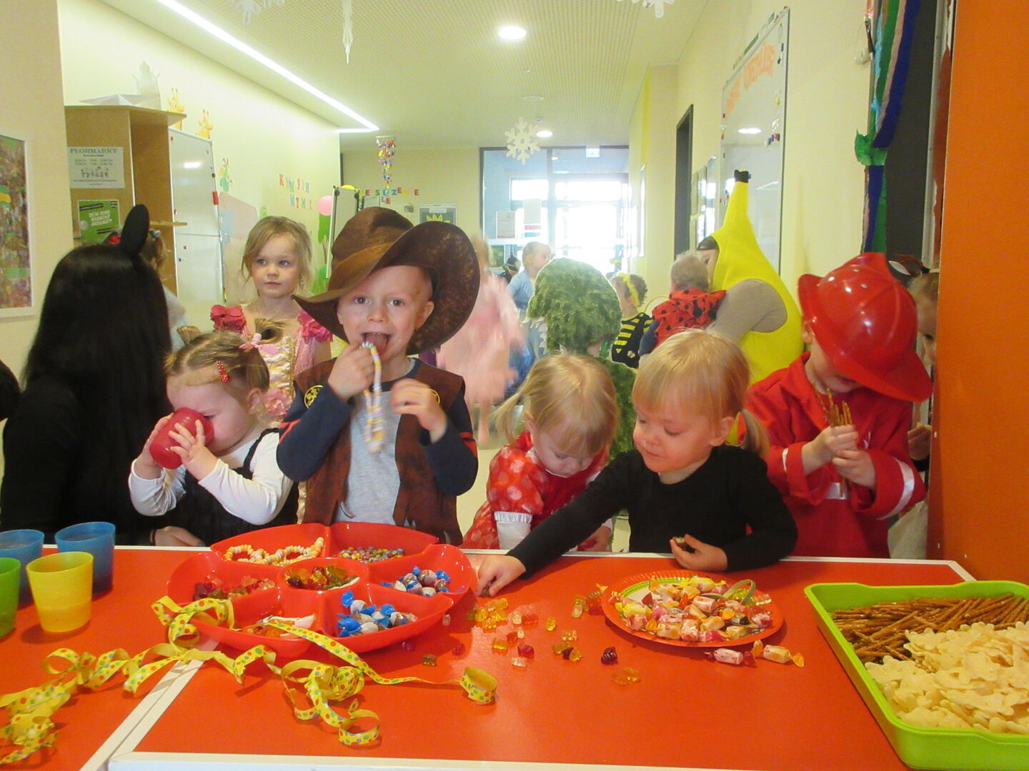Während der Faschingsparty im Kindergarten und Hort durfte die Stärkung mit kleinen Naschereien und einem Pfannkuchen nicht fehlen. Wir feierten also mit viel Halli Galli und Spaß eine tolle, ereignisreiche Faschingsfete.