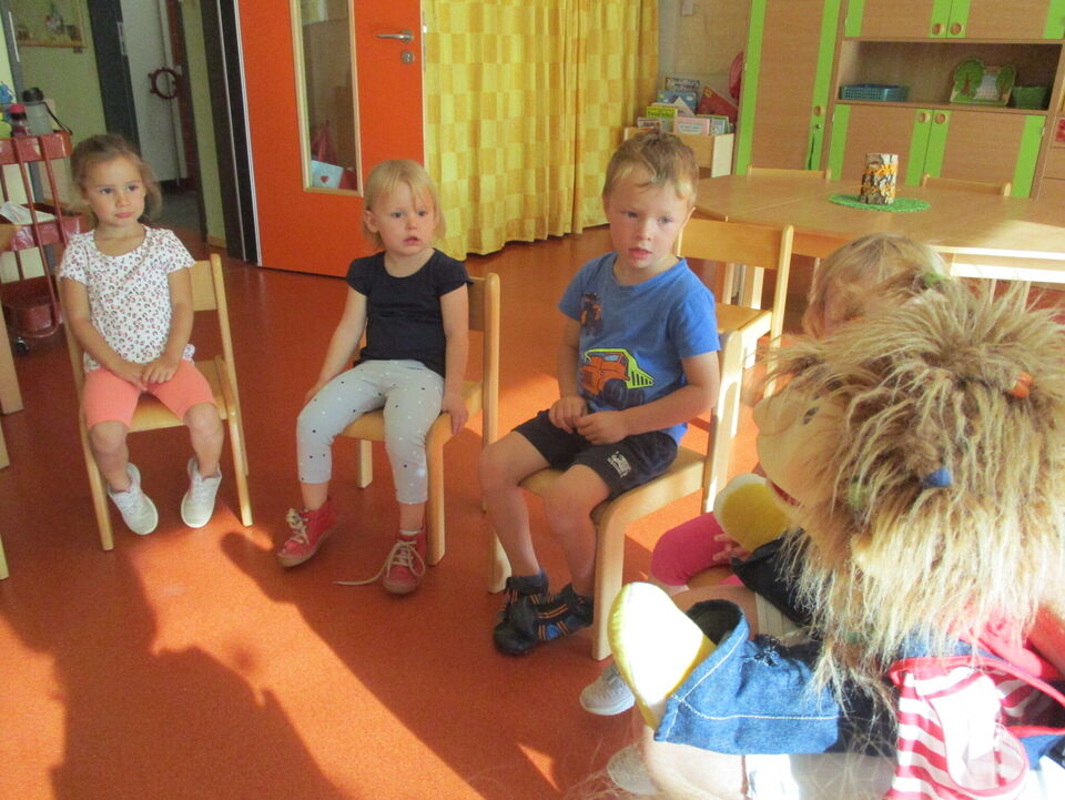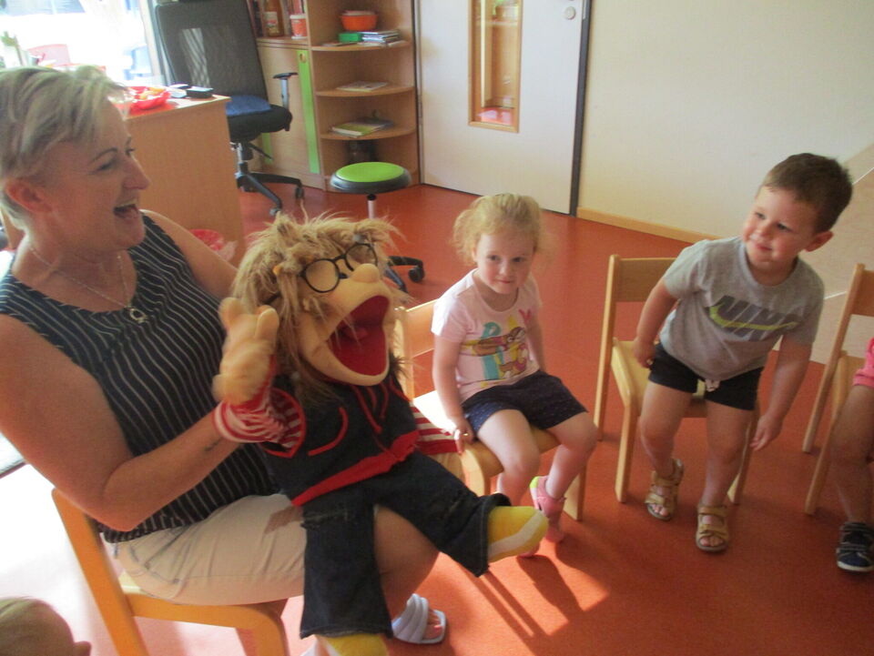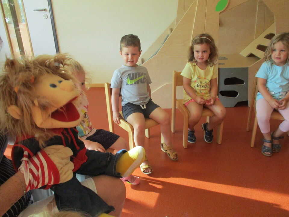 Puppe Maja besucht die Kinder des roten Bereiches der Kita "Kinderoase"
