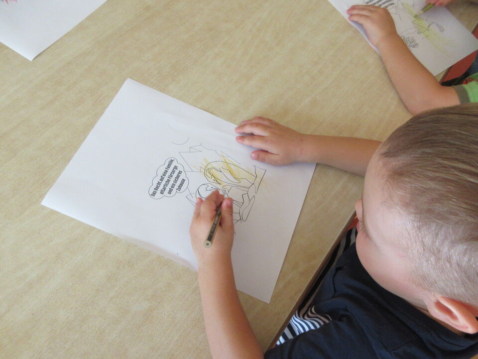 Mit einer kleinen Wiederholung aus der letzten Woche begann die neue Woche für die Kinder des roten Bereiches. Aufbauend auf dem Thema Gefühle lauschten die Kinder einer kurzen Geschichte, in der es um ein Kind ging, welches bewusst sich dafür entschied, ein Kind nicht zu seinem Geburtstag einzuladen. Im anschließenden Gespräch mit den Kindern ging es darum, die verschiedenen Gefühle in dieser Geschichte wahrzunehmen. Viele weitere Situationen fielen daraufhin den Kindern ein, in denen sie sich ähnlich oder völlig anders fühlten. Das Gedicht "Ich bin ich und du bist du" fand auch in dieser Woche einen Platz und wird von den Kindern gerne mitgesprochen.