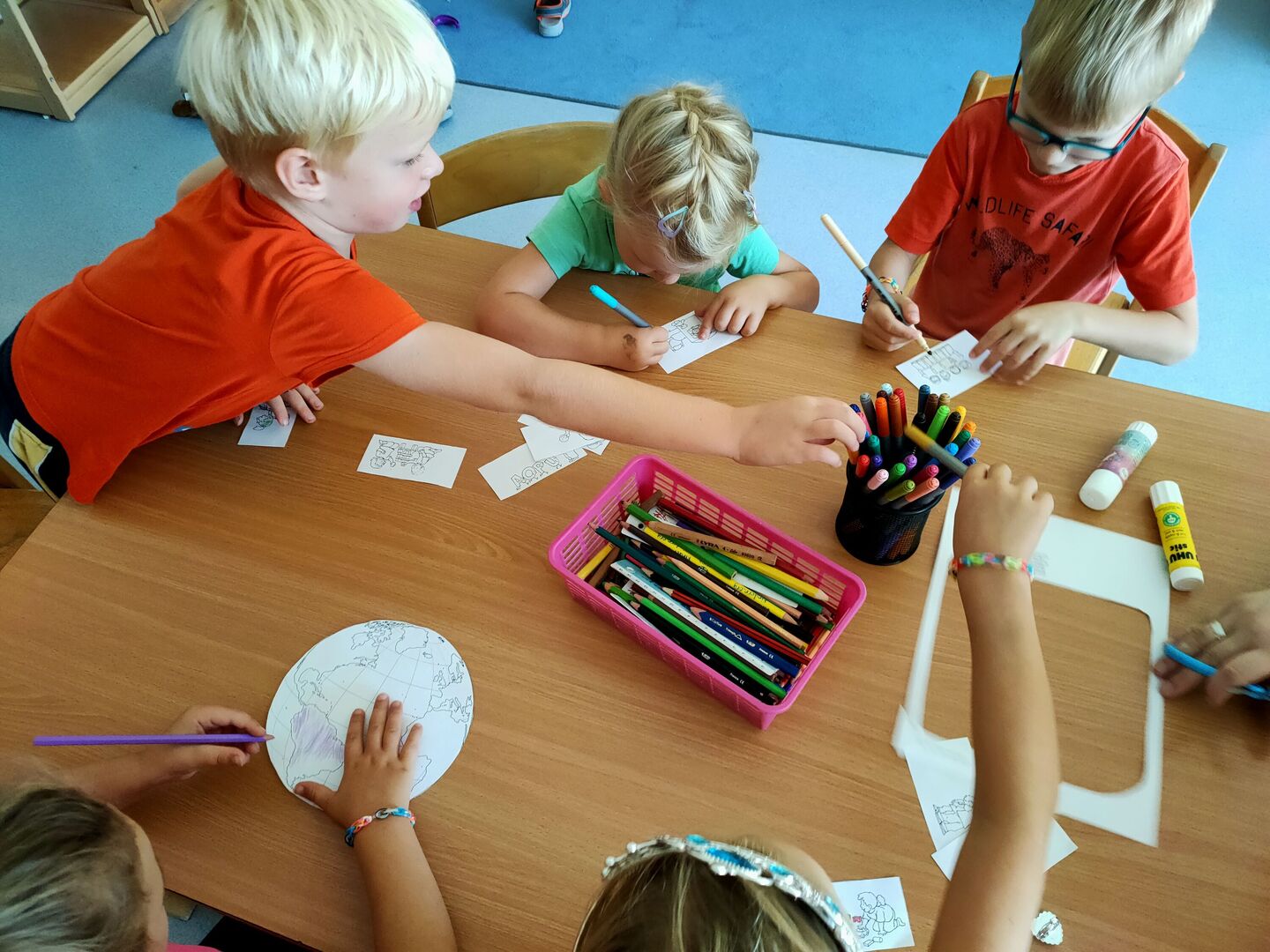 Auch im blauen Bereich ist das Thema Kinderrechte aktuell. Dazu entstand über die Woche eine tolle Collage, die von den Kindern selbstständig zugeordnet wurde und nun einen Platz im Zimmer gefunden hat.