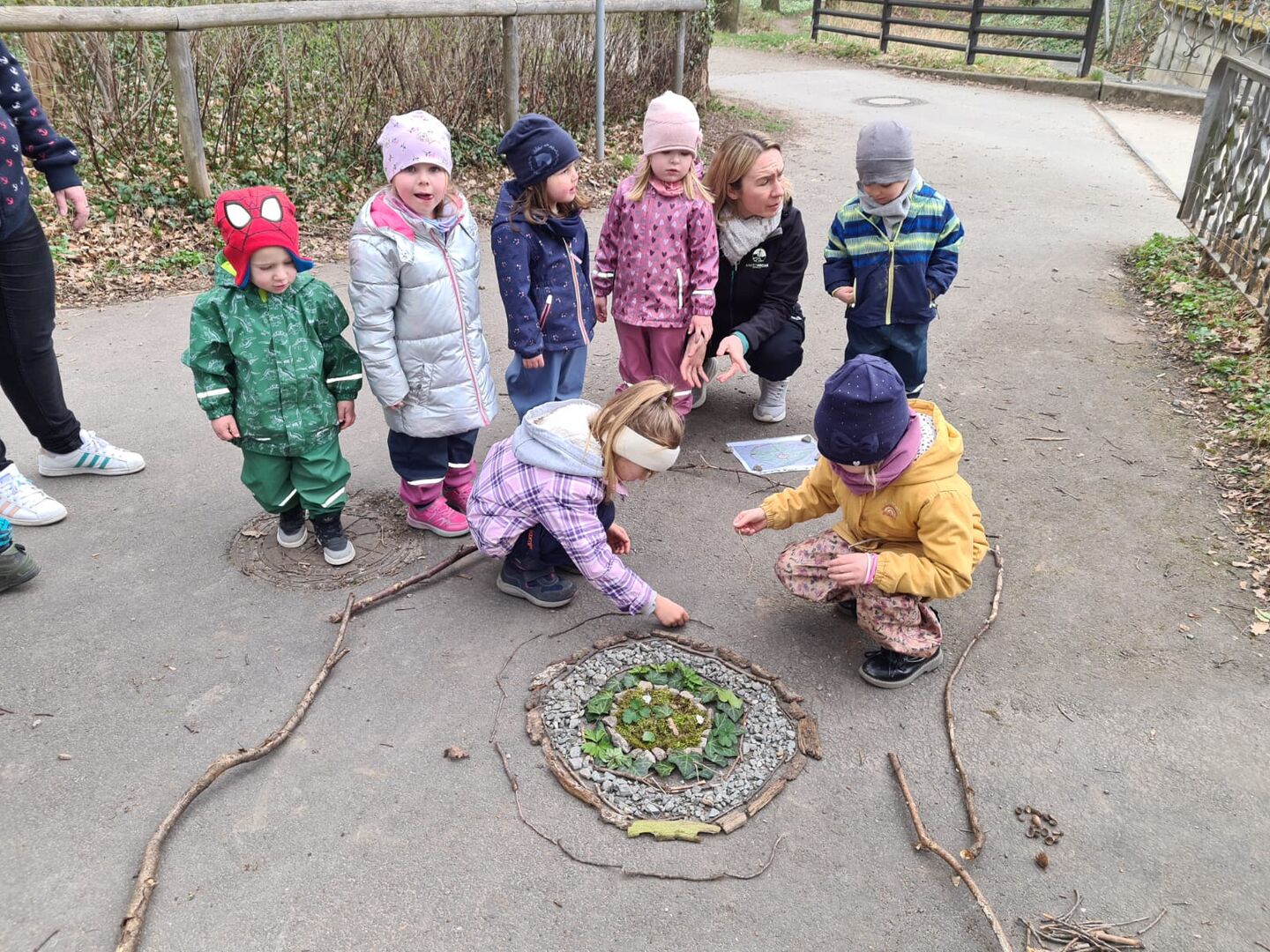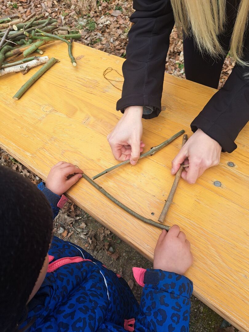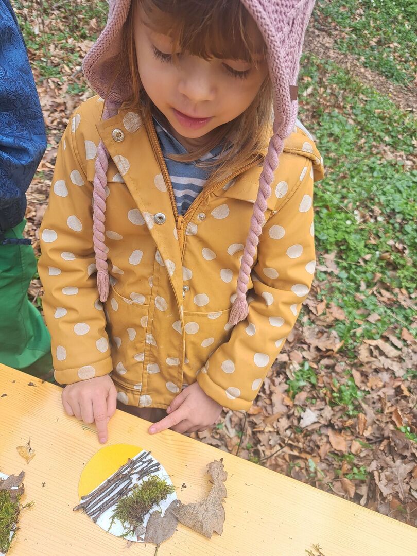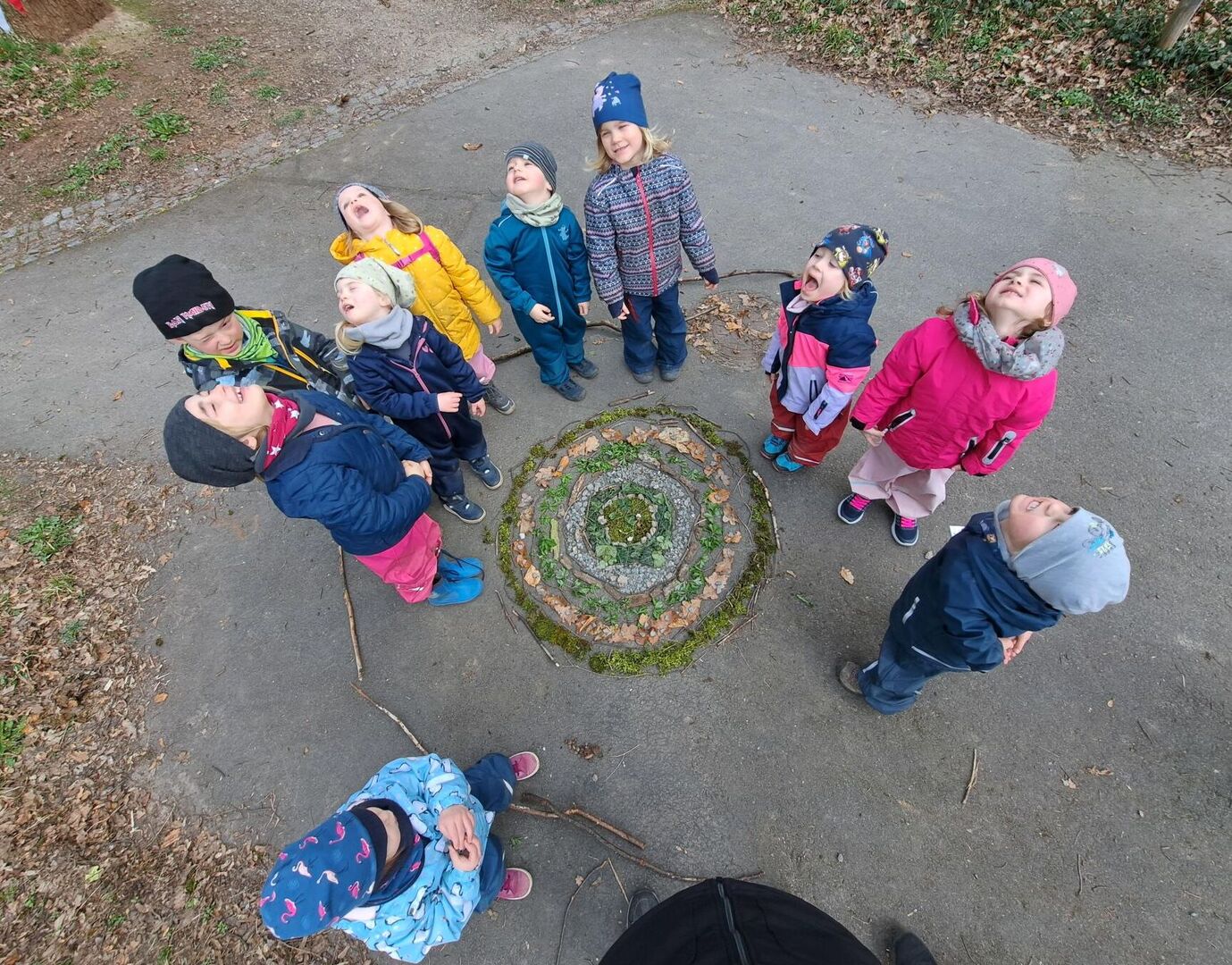 An ganz vielfältigen Stationen wurde danach im wunderschönen Sahnpark mit selbst gesammelten Naturmaterialien gebastelt und es entstand ein großes Natur-Mandala. Es wurde geturnt, gesammelt, geklebt, gestaunt und vieles mehr.