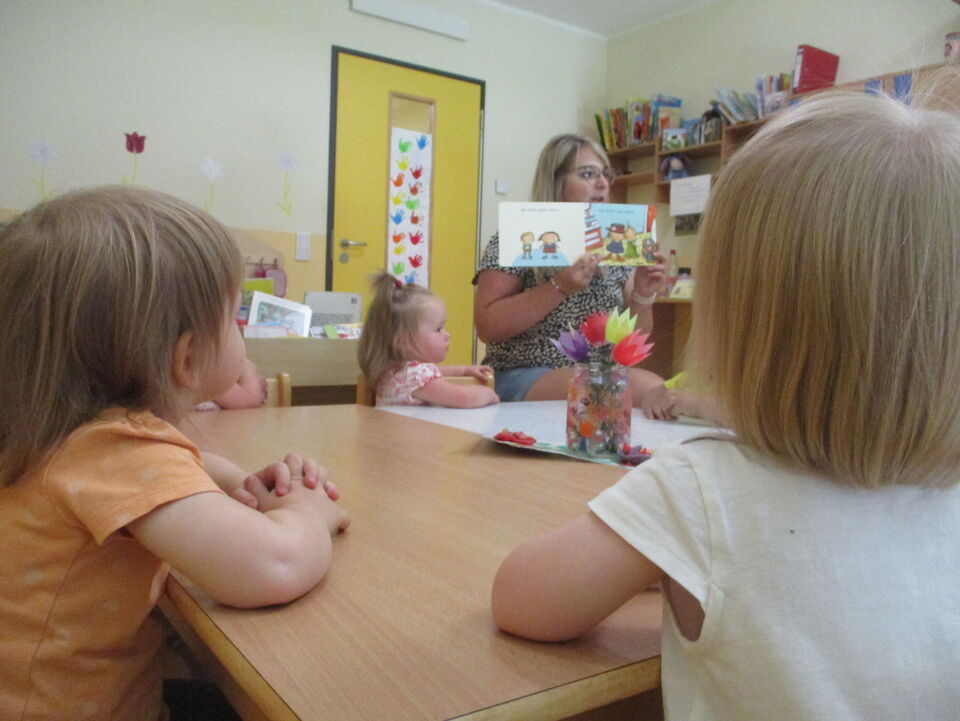 In unserem Morgenkreis haben wir uns das Buch „Zusammen“ näher angeschaut. In diesem Buch wird gezeigt, wie unterschiedlich jeder Einzelne von uns ist. Einer ist groß und der Andere etwas kleiner. Es ist okay anders zu sein als der Andere. Jedes Kind hat das Recht auf Individualität. Am Ende unseres Morgenkreises konnten sich unsere Krippenkinder in einem großen Spiegel betrachten und sich auch miteinander vergleichen. Für die Kinder war es spannend sich selbst im Spiegel zu entdecken.