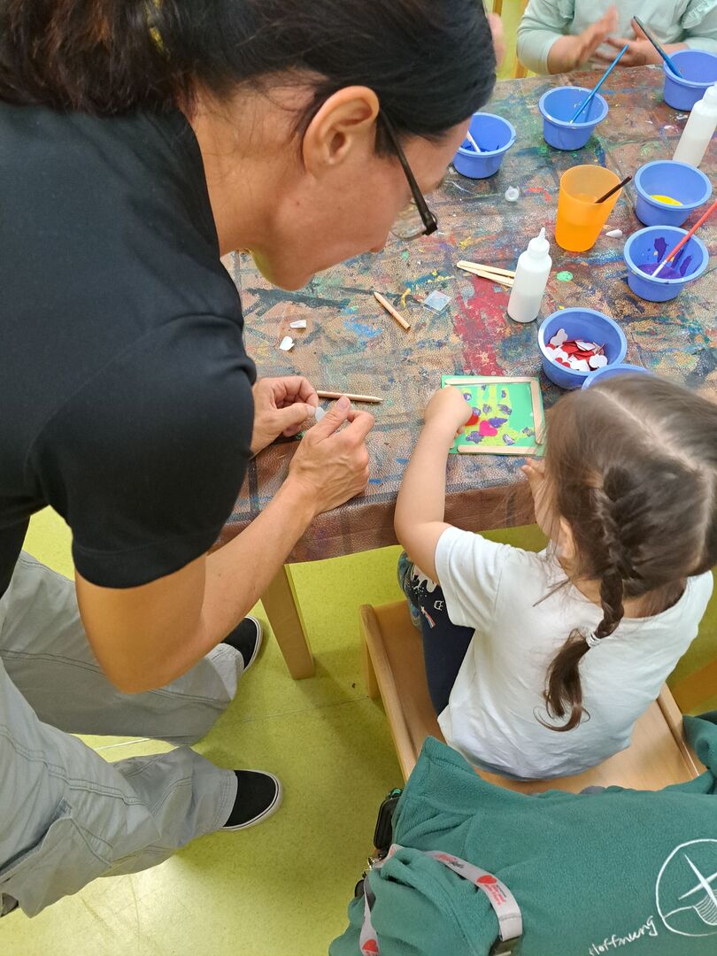Die Tage die den Mama´s und Papa´s gewidmet sind stehen kurz bevor und auch die Kinder der Kinderoase liesen es gestern bunt und kreativ angehen. Neben Blumensträußen aus Papier oder Farbe, Teelichterhaltern aus Holz oder Glas entstanden auch Batikherzen und Bilderrahmen mit Handabdrücken. So konnte jedes Kind selbst wählen mit was es seine Eltern überraschen möchte.