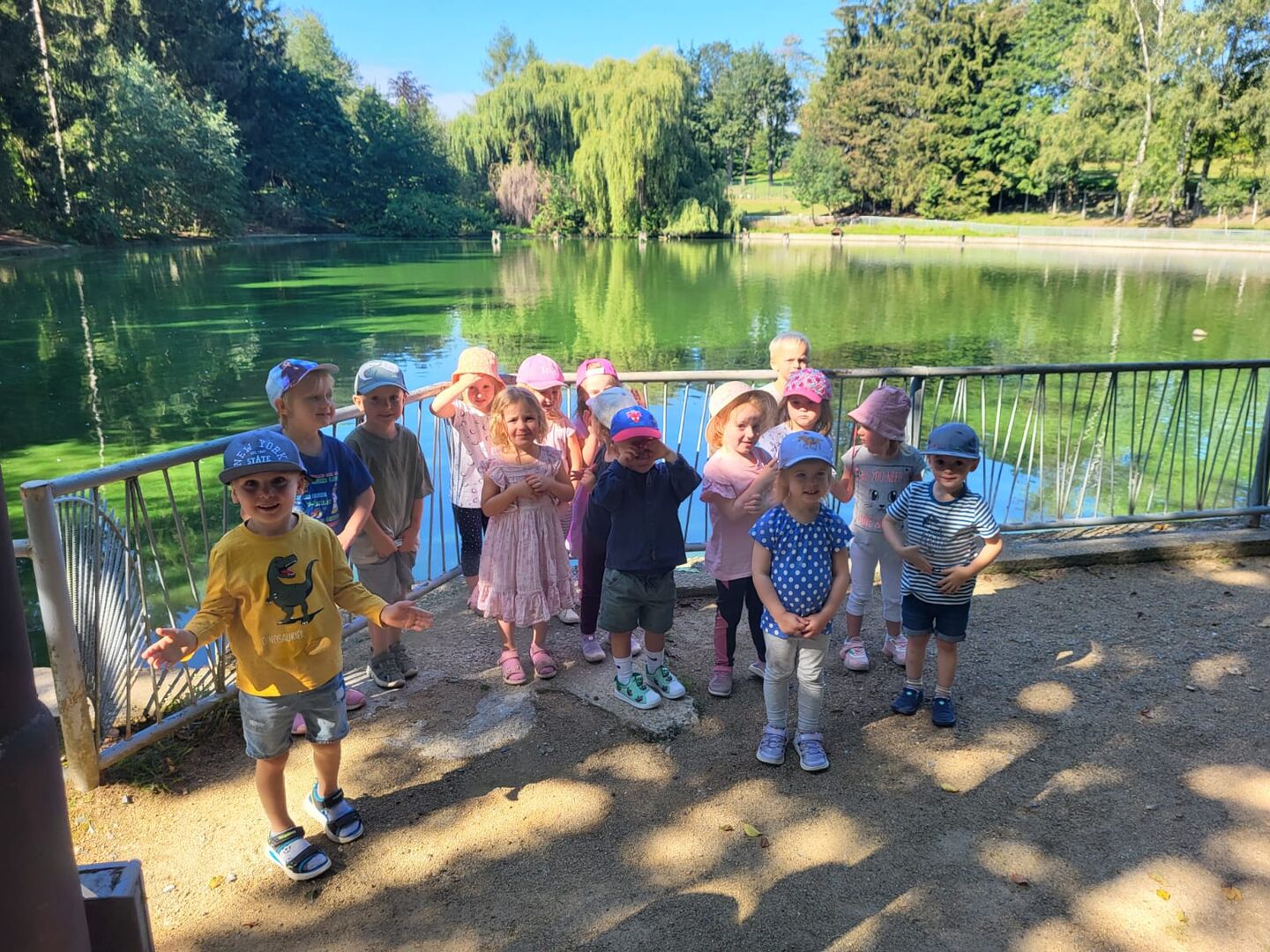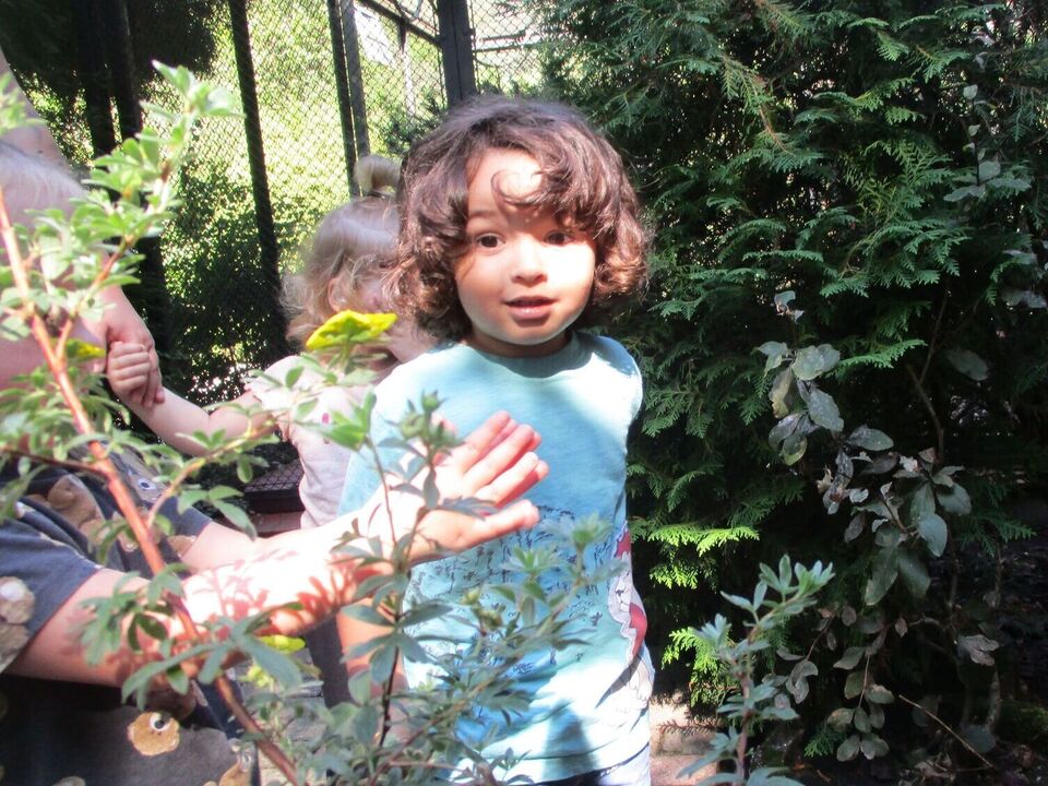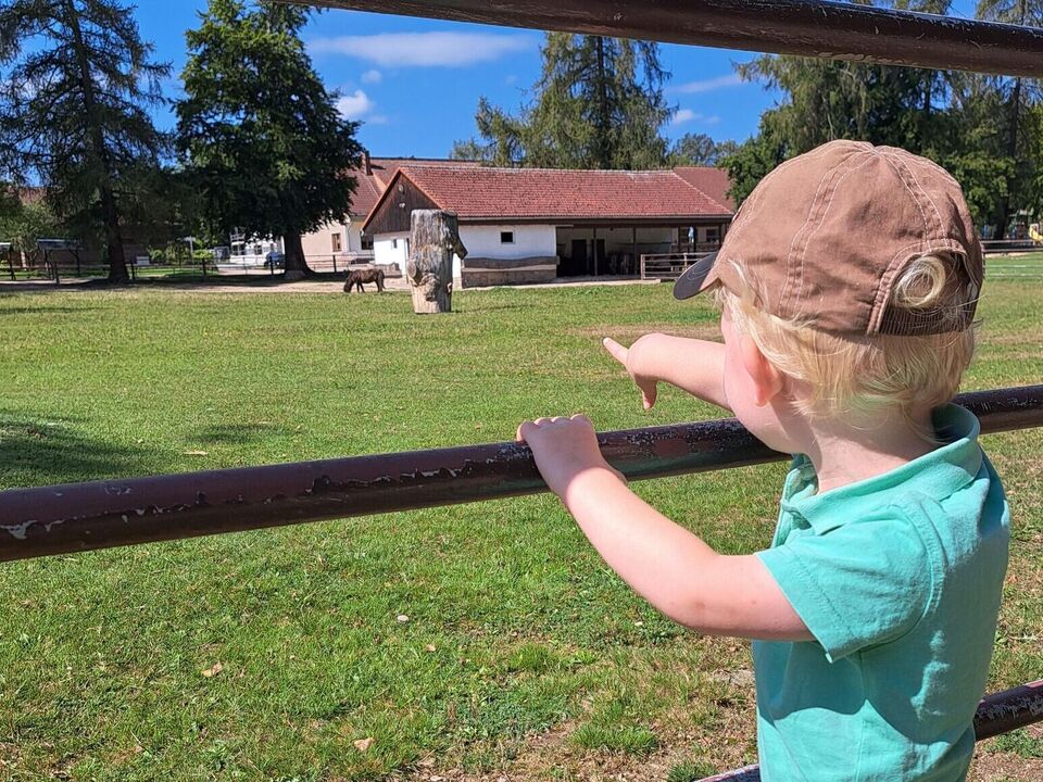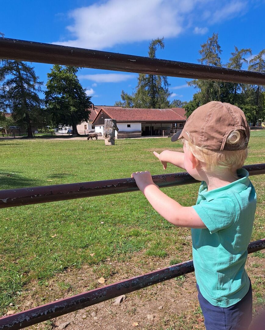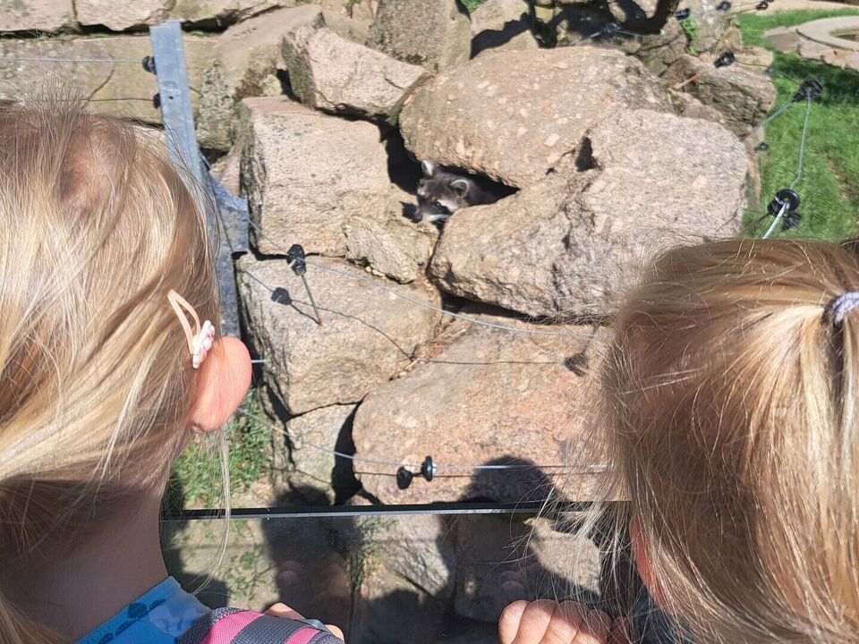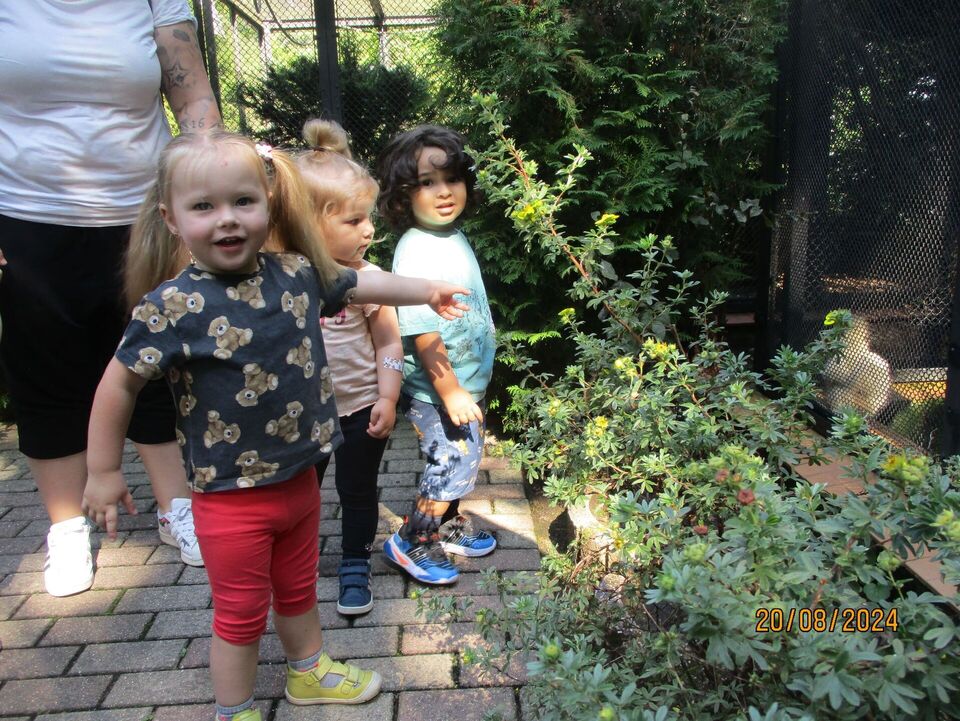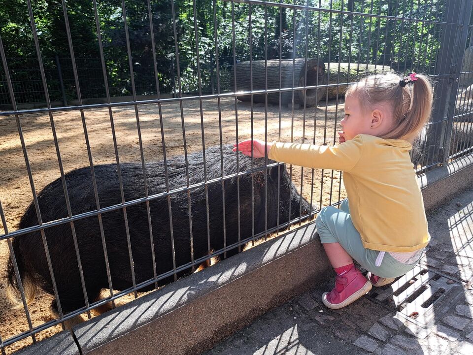 Nach der Ankunft erkundeten die Kinder mit den Erziehern und Erzieherinnen bei herrlichem Sonnenschein in mehreren Kleingruppen den Tierpark. Bei jedem Gehege wirkten unzählig viele Eindrücke auf die Kinder ein und (fast) jedes Tier wurde ausgiebig bestaunt. Dank der zahlreichen Infotafeln lernten nicht nur die Kinder spannende Besonderheiten der Tiere, wann z.B. das friedlich in der Sonne liegende Stachelschwein seine Stacheln einsetzt. Die beiden Emus kommunizierten mittels lauter Trommelgeräuschen mit uns, welche erstaunlicherweise im Hals produziert wurden. Wir bestaunten zahlreiche Vögel mit teilweise sehr lustigen Namen wie „Der lustige Hans“ und kamen aus dem Staunen gar nicht mehr heraus.