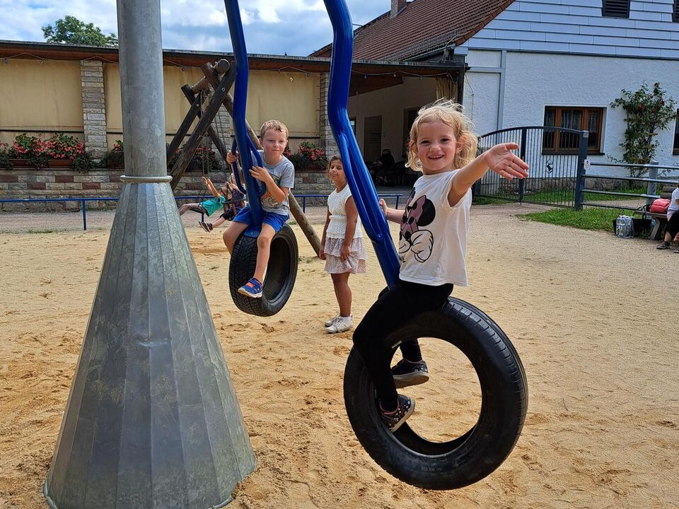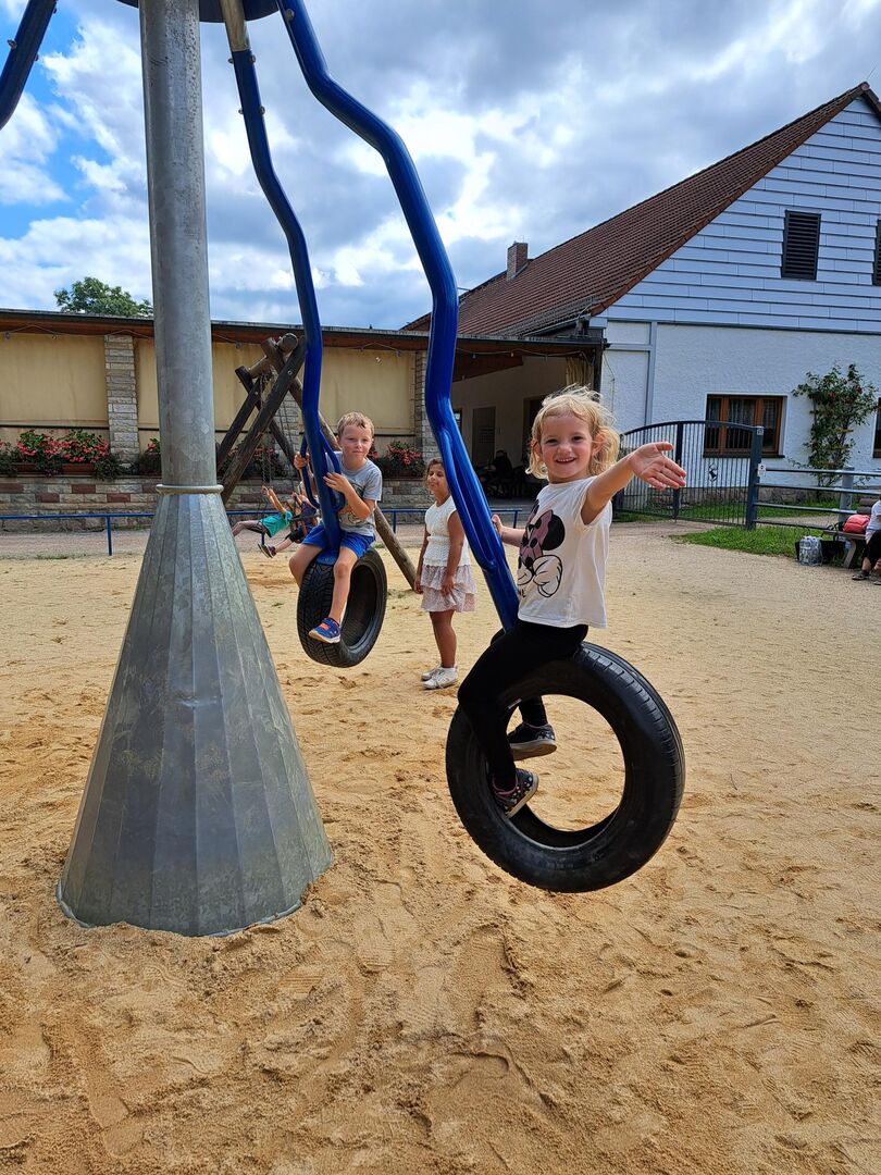 Selbstverständlich blieb den Kindern vor der Abfahrt noch genügend Zeit, um die tollen Spielgeräte auf dem Spielplatz auszuprobieren, zu testen und zu erkunden.