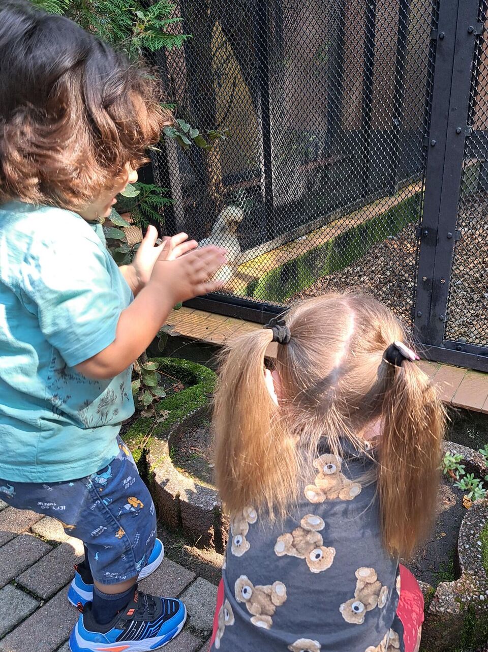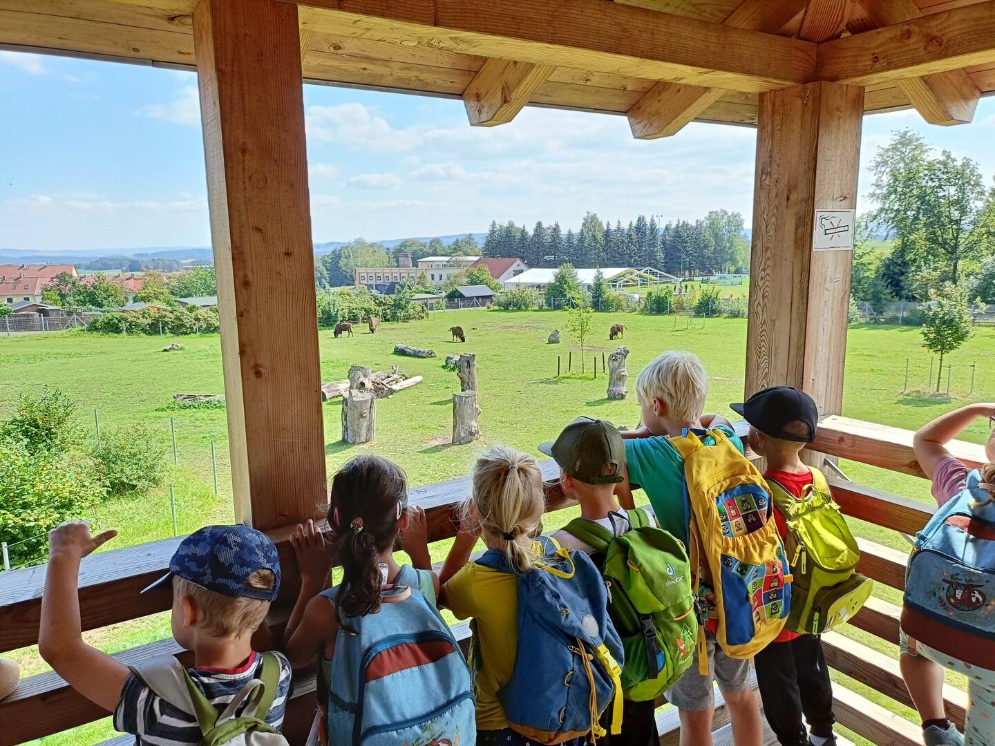 Wer schaut denn da? Fasziniert beobachten die Kinder die Tiere im Tierpark