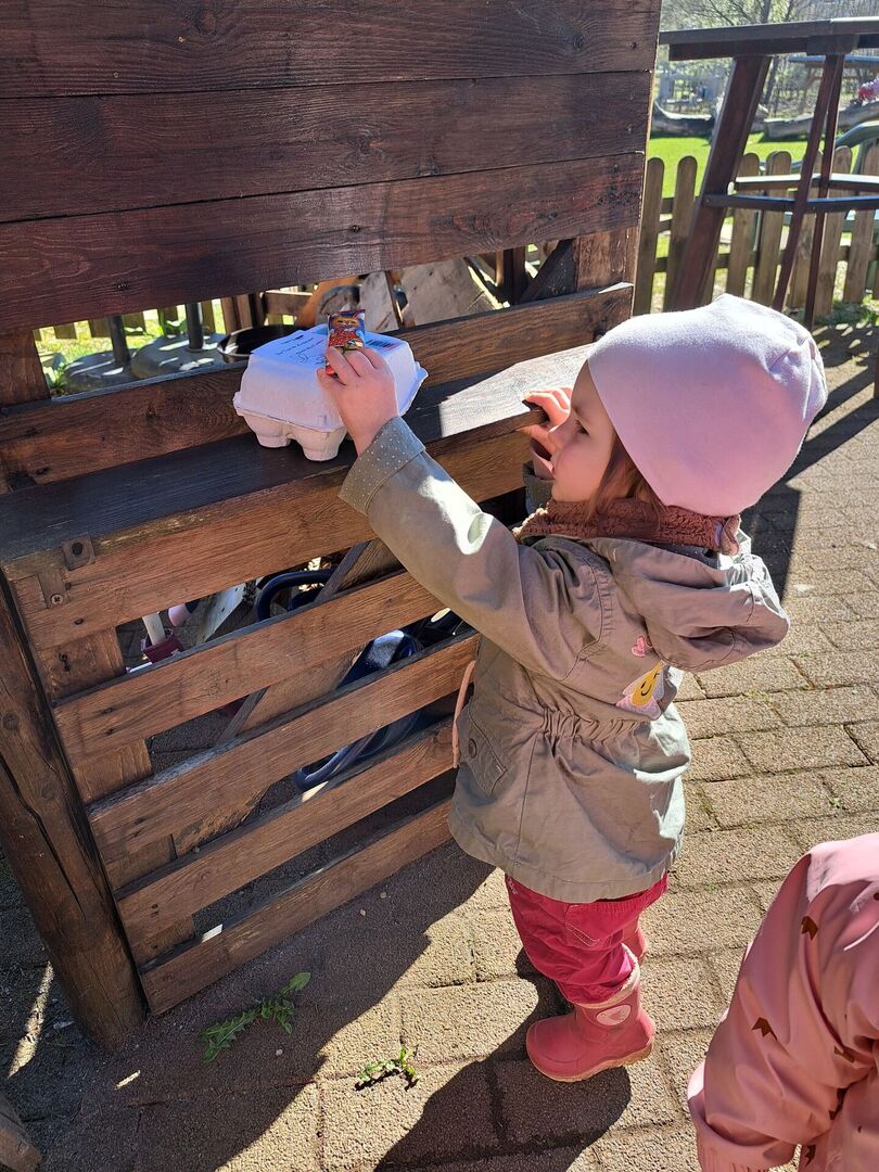 An diesem Gründonnerstag ist die Aufregung besonders bei den größeren Kindergartenkindern deutlich zu spüren. So hat doch ein Kind bereits auf dem Weg in die Kita am frühen Morgen den Osterhase gesehen.