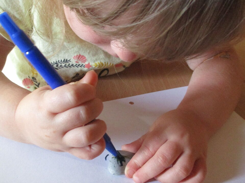 Wir haben gemeinsam einen schönen Stein ausgesucht und diesen bunt bemalt, außerdem durfte sich auch jedes Kind einen Stein zum Mitnehmen anmalen.