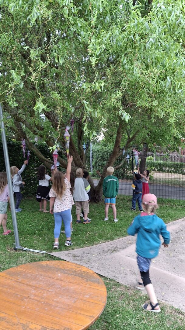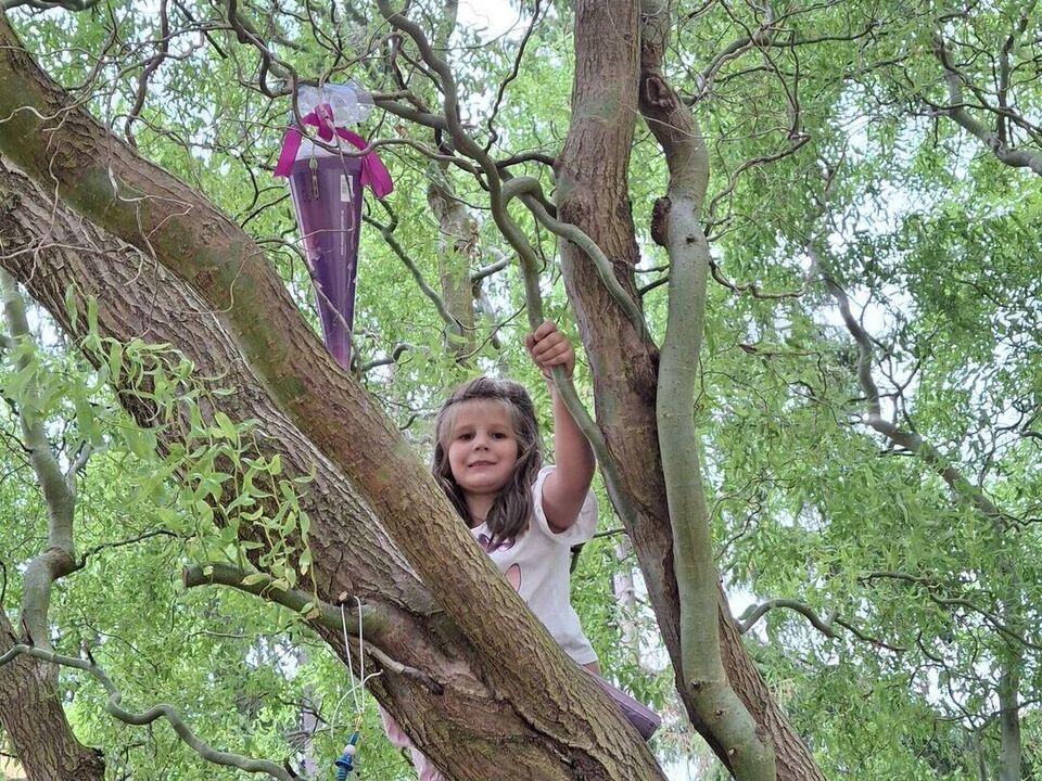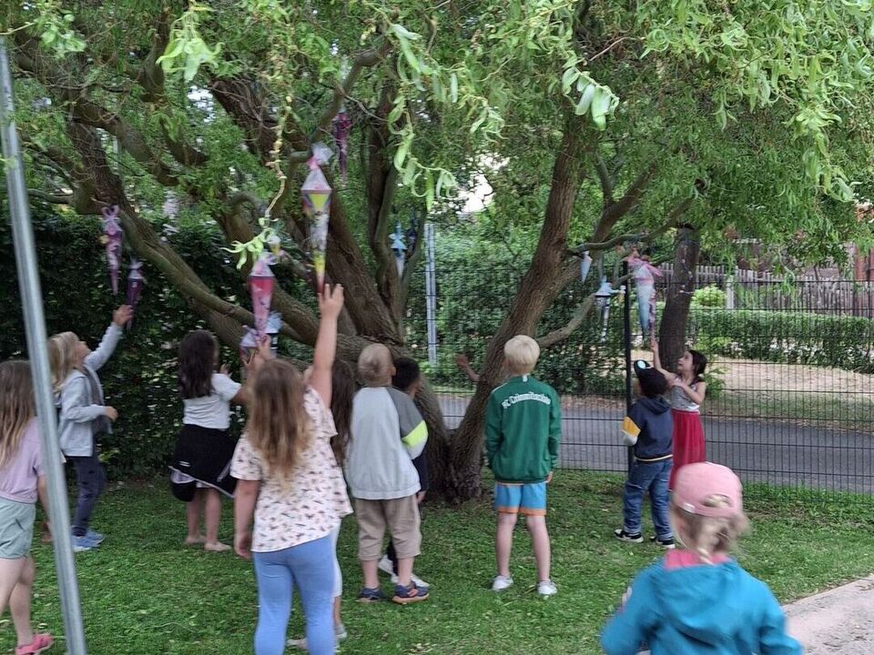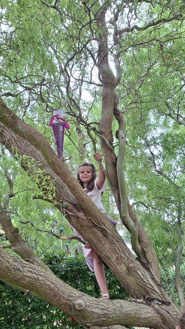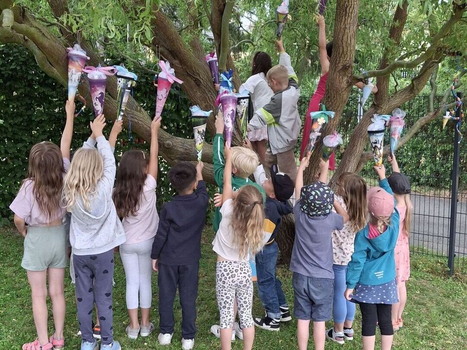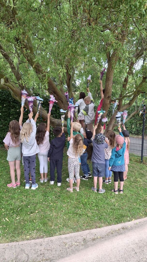 Und die ließen nicht lange auf sich warten: Gemeinsam meisterten die Kinder verschiedene Hindernisse um den geheimnisvollen Zuckertütenbaum zu finden. Die Spannung stieg – doch mit Teamgeist und guter Laune gelang die Suche und die Zuckertüten konnten schließlich entdeckt werden!