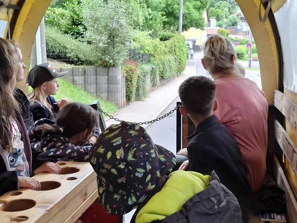 Mit einer fröhlichen Traktorfahrt durch die Dörfer rund um Crimmitschau startete das diesjährige Abschlussfest unserer Vorschüler. Natürlich durfte eine erfrischende Eispause unterwegs nicht fehlen – schließlich brauchte man Energie für die nächsten Herausforderungen!