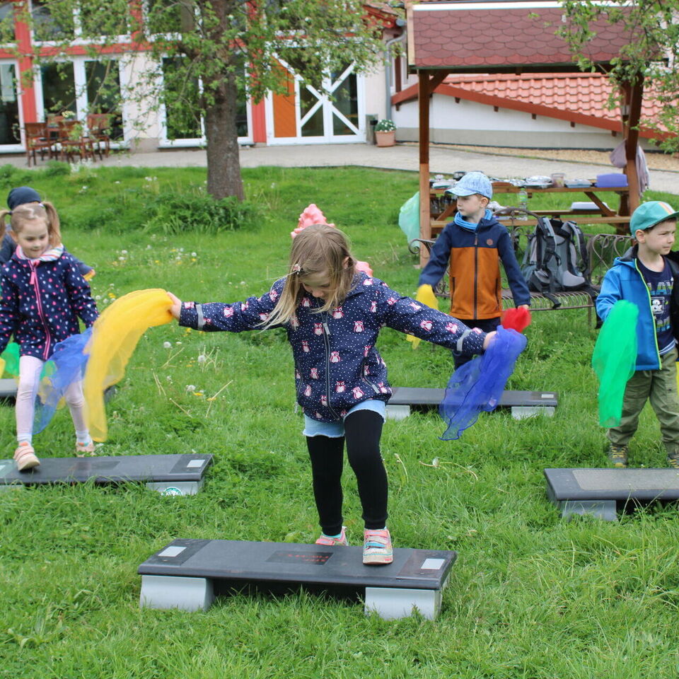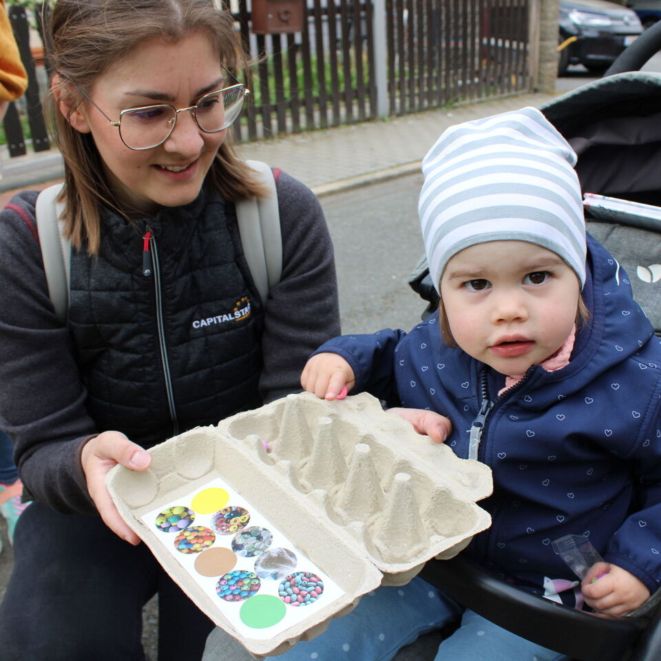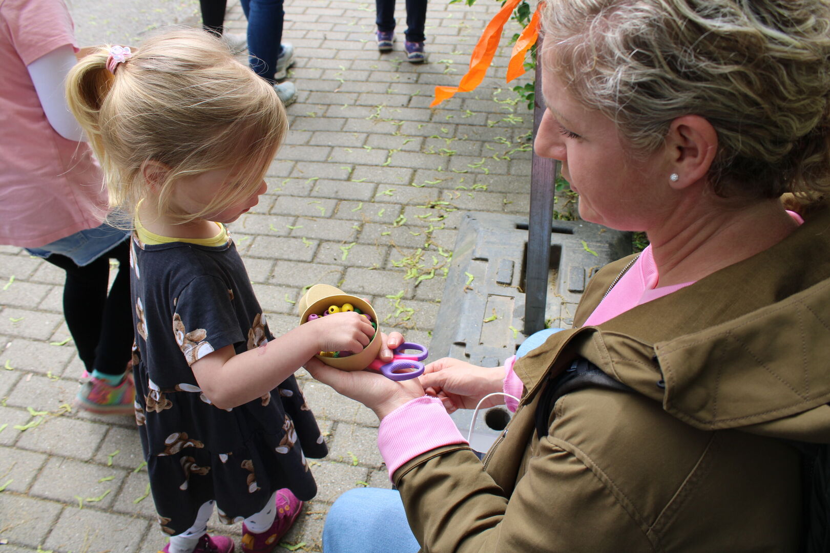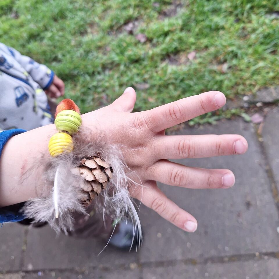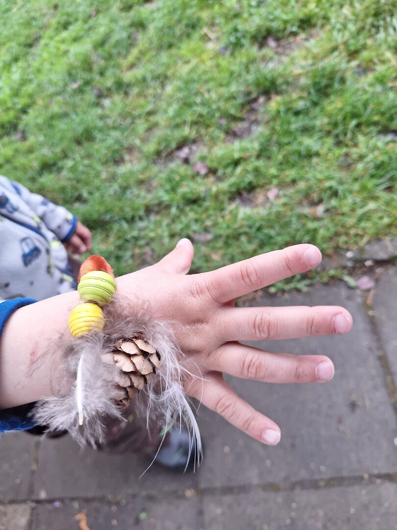 Damit den Kindern der Weg nicht zu lang wurde, bereiteten die Muttis vom Elternrat wieder eine Schatzsuche vor. Diesmal hieß es, neben Fundstücken aus der Natur, kleine Schätze, welche an verschiedenen Stationen vorbereitet waren, zu sammeln. Aus diesen konnten die Kinder im Anschluss ein kleines Armband basteln.