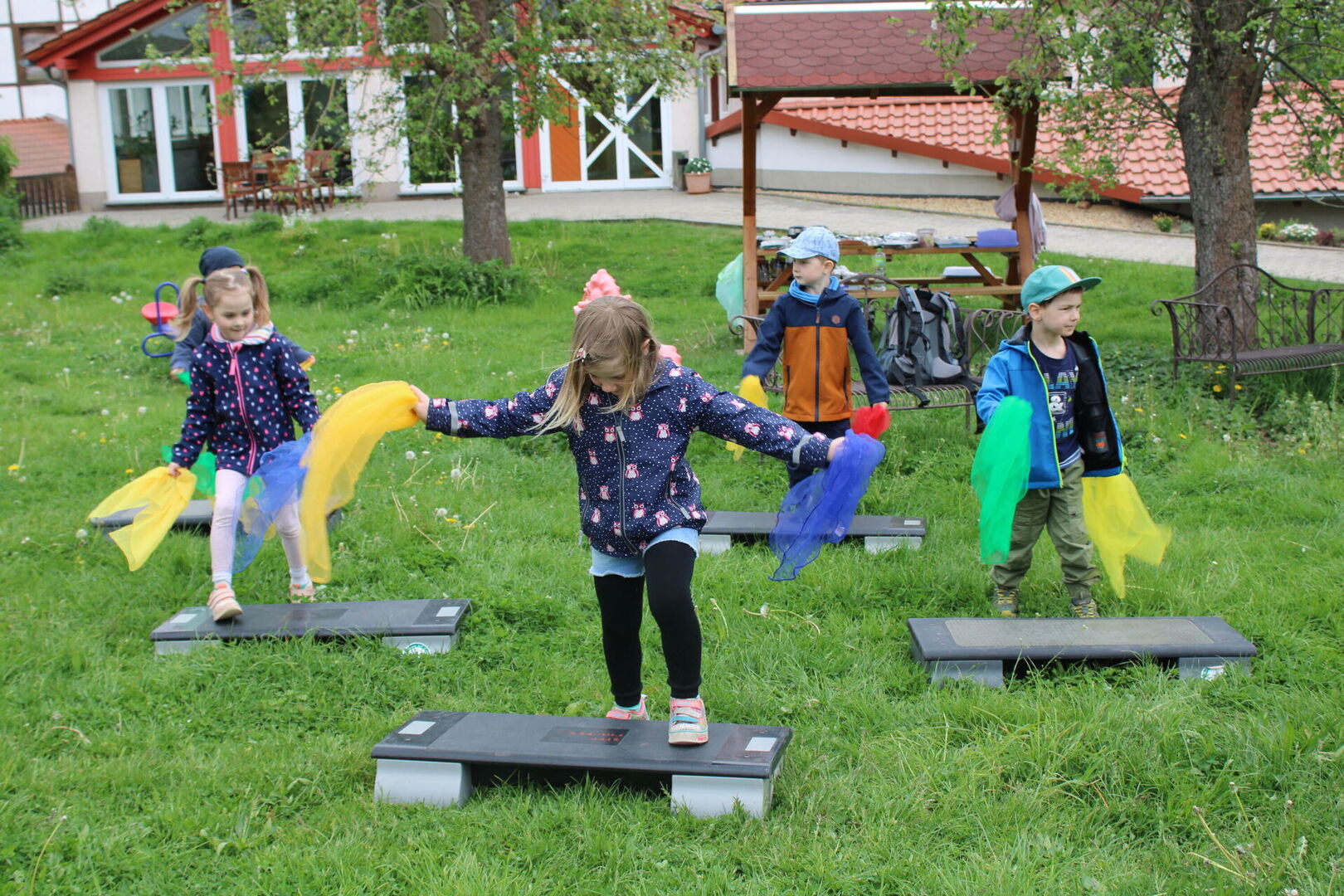 Auf dem Regenbogenhof angekommen, schenkten die „Sterntaler“ Ihren Eltern zum Dank Lieder, Gedichte und einen Stepptanz, welche zu Herzen gingen. Nach einem großen Applaus waren die Kinder zu einem Eis und die Eltern zu Kaffee und Kuchen eingeladen. Zahlreiche Familien hatten am Vortag dafür gesorgt, dass das Küchenbuffet unter freiem Himmel reichlich mit allerlei Leckereien gefüllt war.