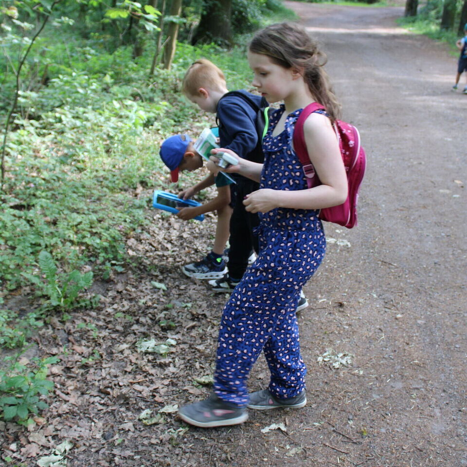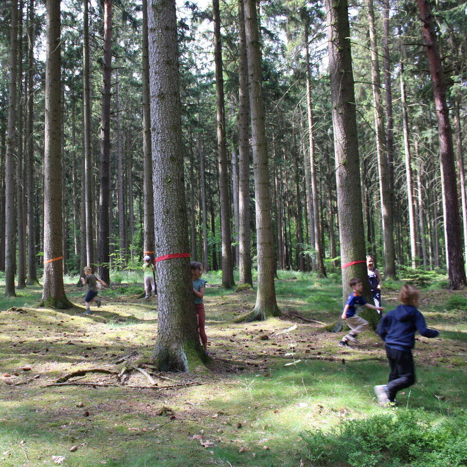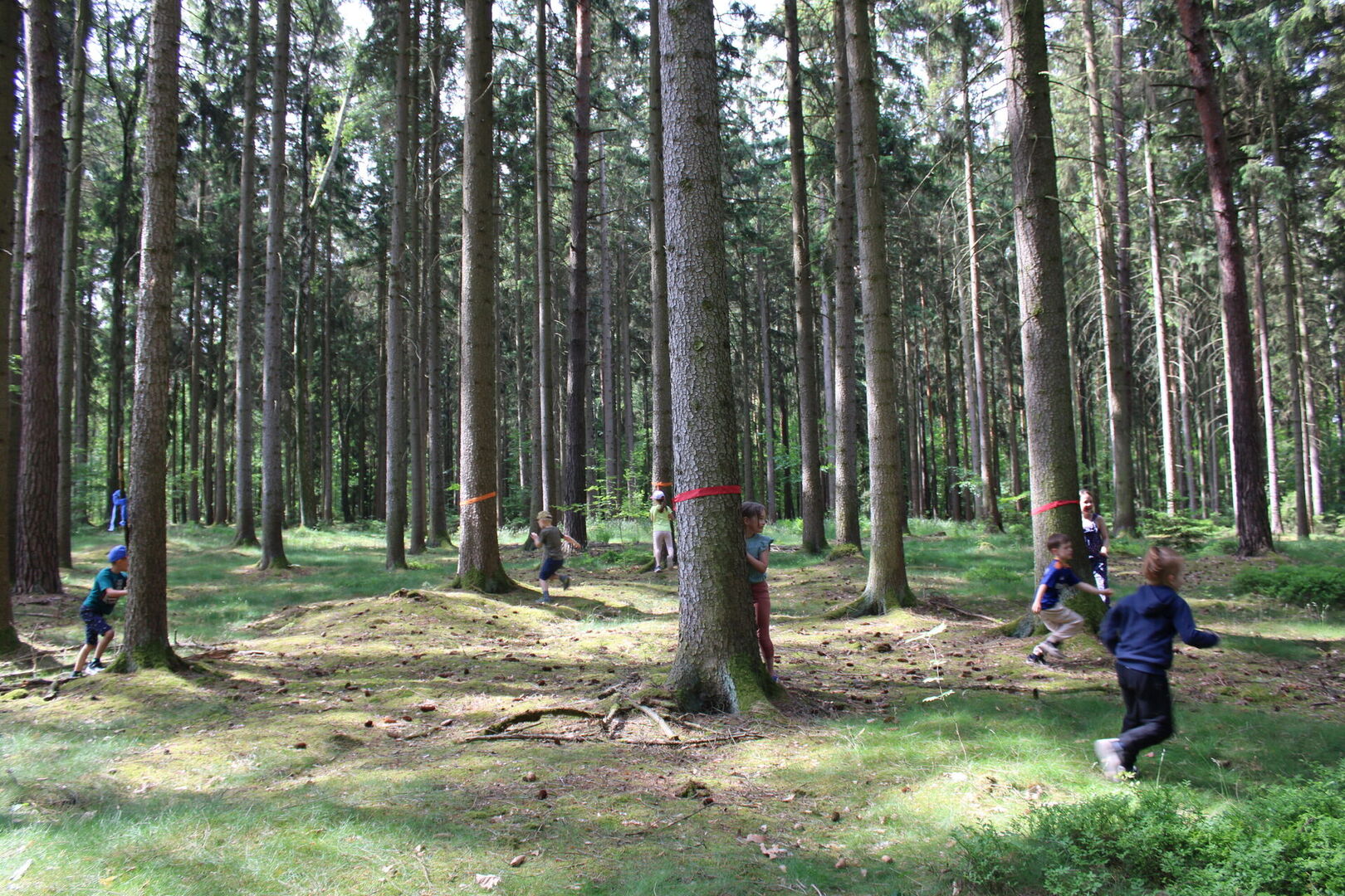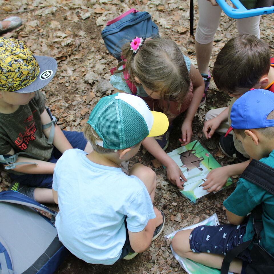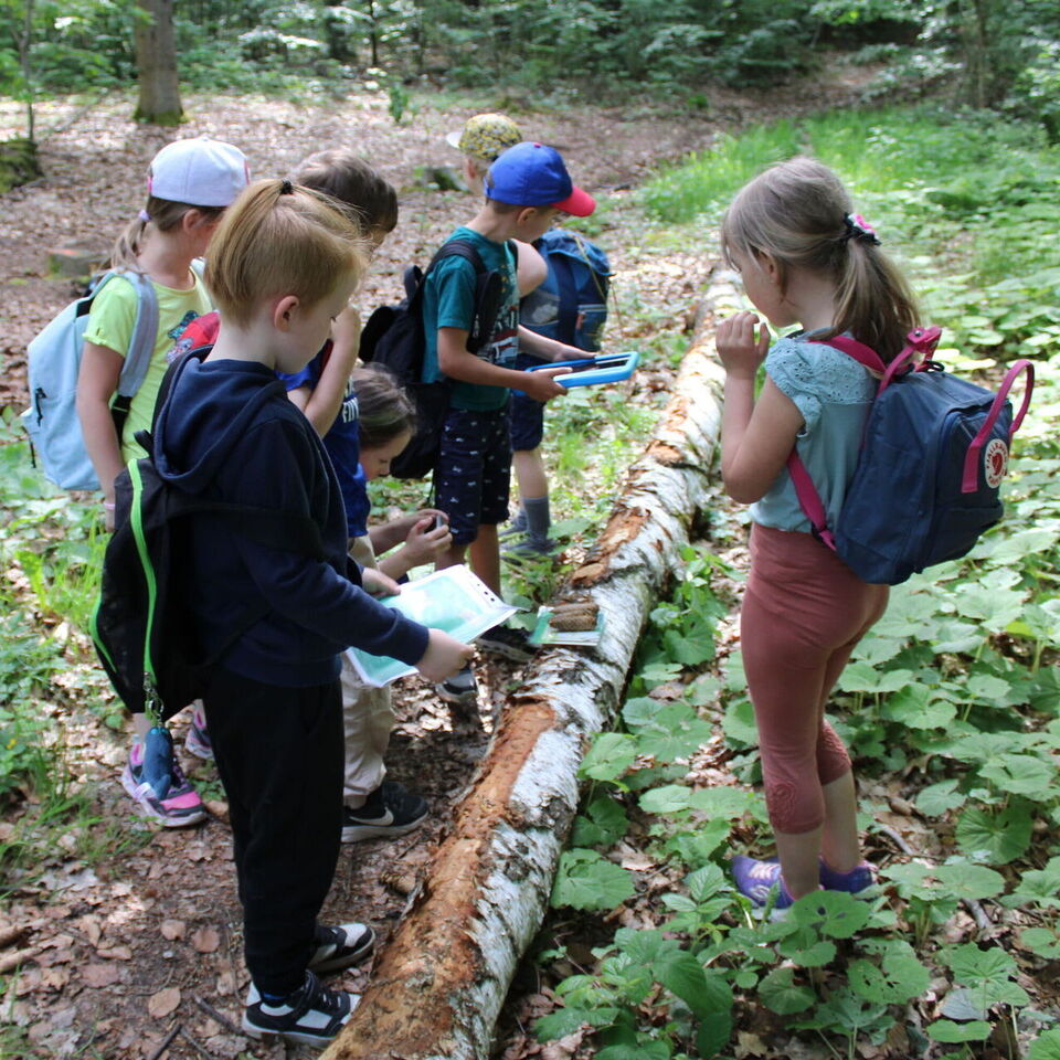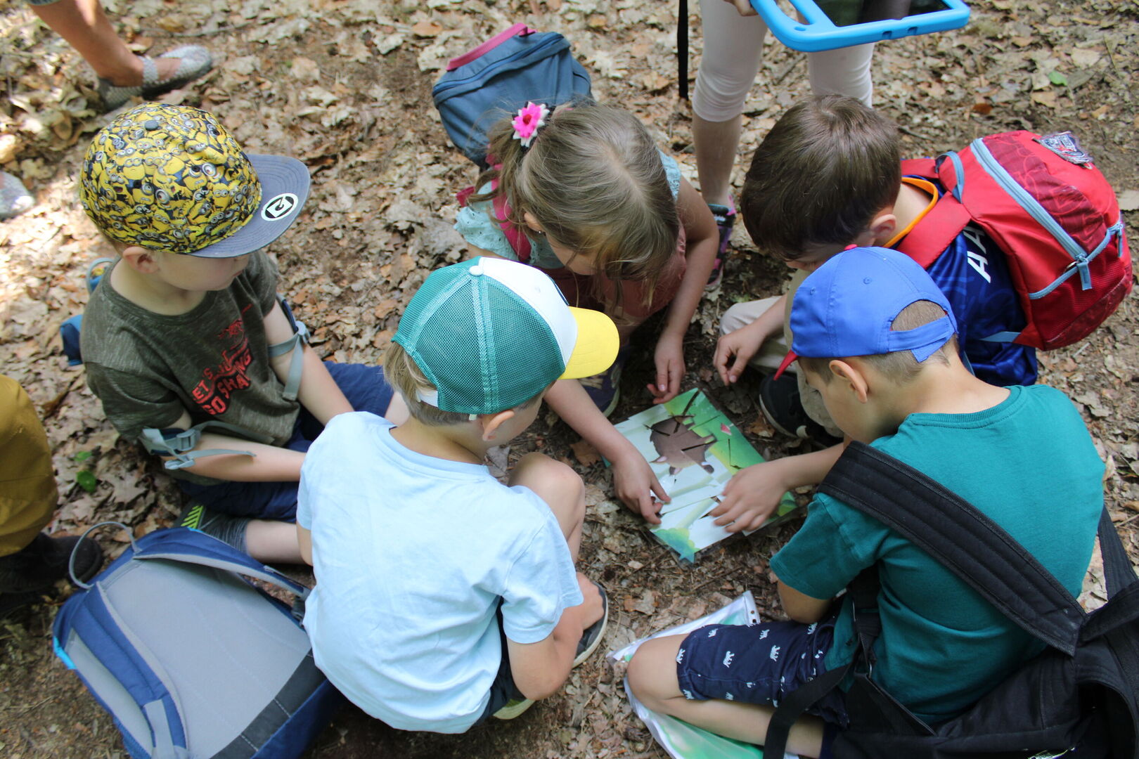 Die KInder sind auf der Suche nach dem Schatz des Eichhörnchens Lilo- der goldenen Nuss.