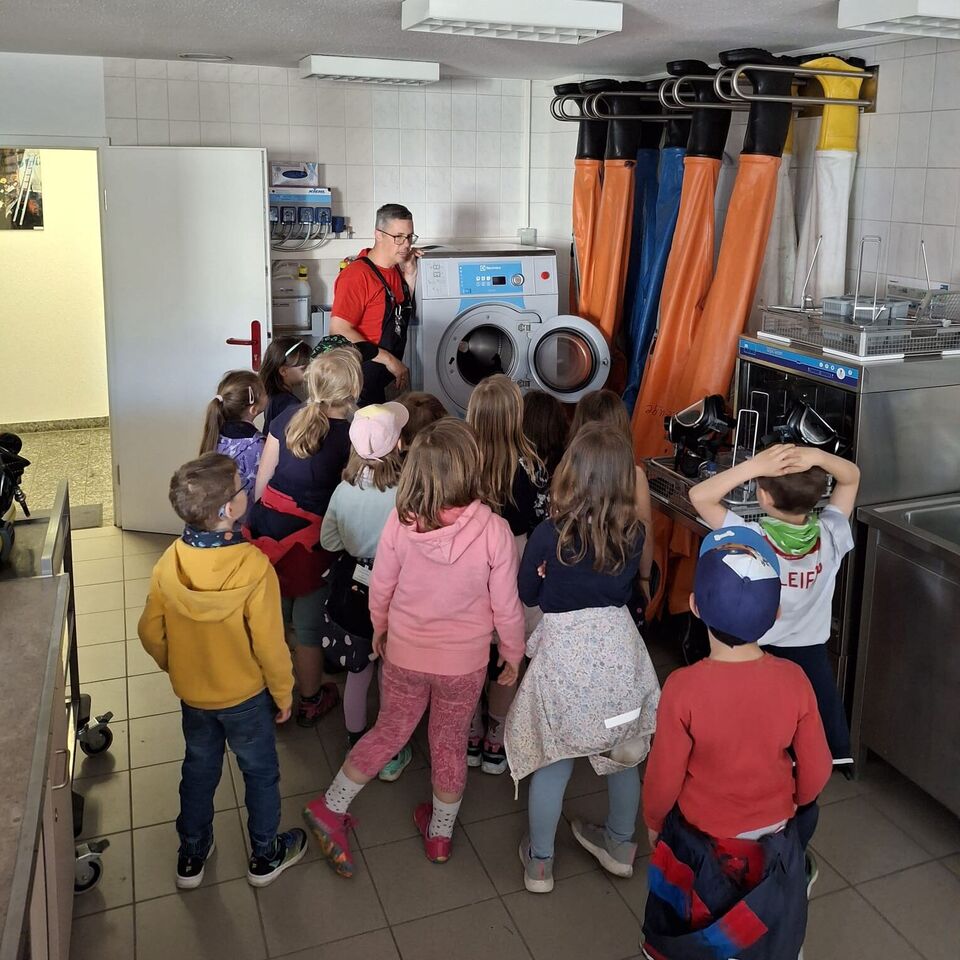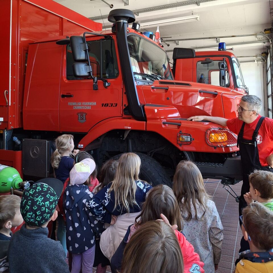 Diesen durften unsere „Wackelzähne“ am 30.April 2025 bei der Freiwilligen Feuerwehr in Crimmitschau wagen. Ob es wohl hier auch so zuging wie in dem bekannten Kinderbuch "Bei der Feuerwehr wird der Kaffee kalt".