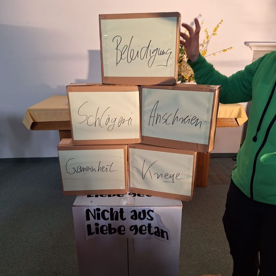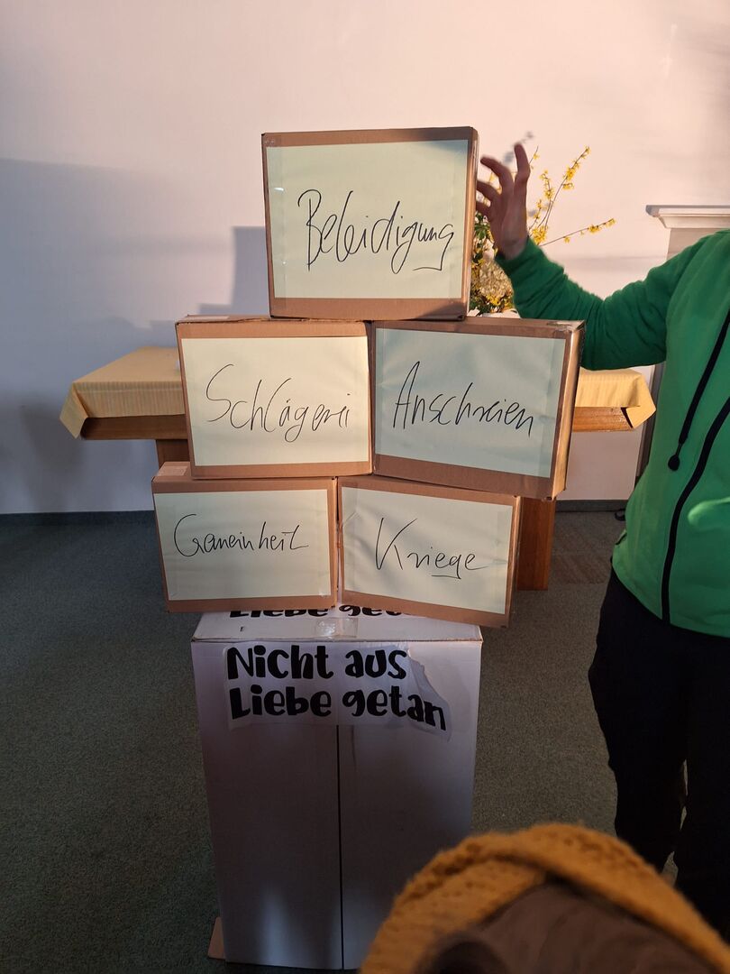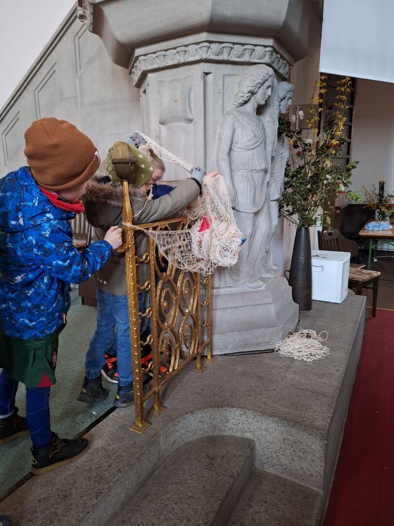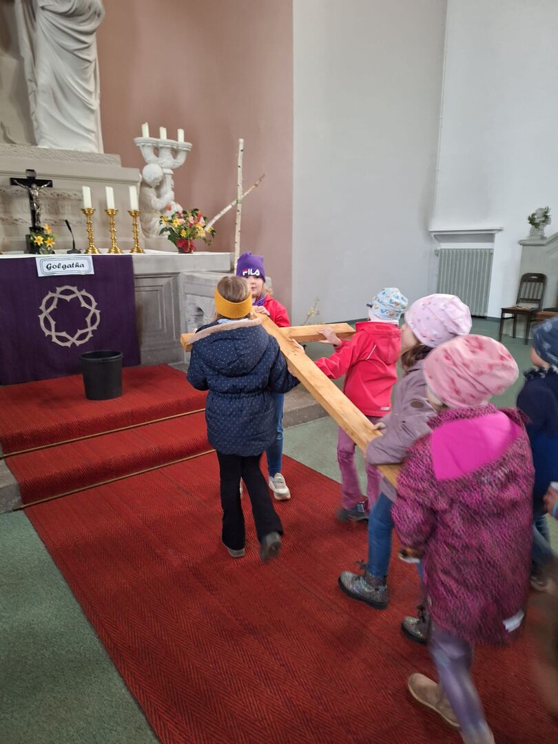 Anett Erler berichtete uns von dem Zwiegespräch zwischen Jesus und seinem himmlischen Vater und den Geschehnissen am Kreuz und die Kinder besuchten dazu passende "Stationen".