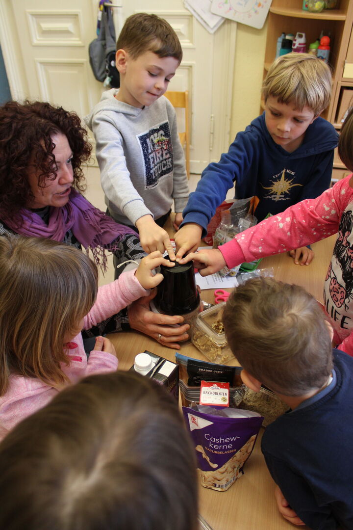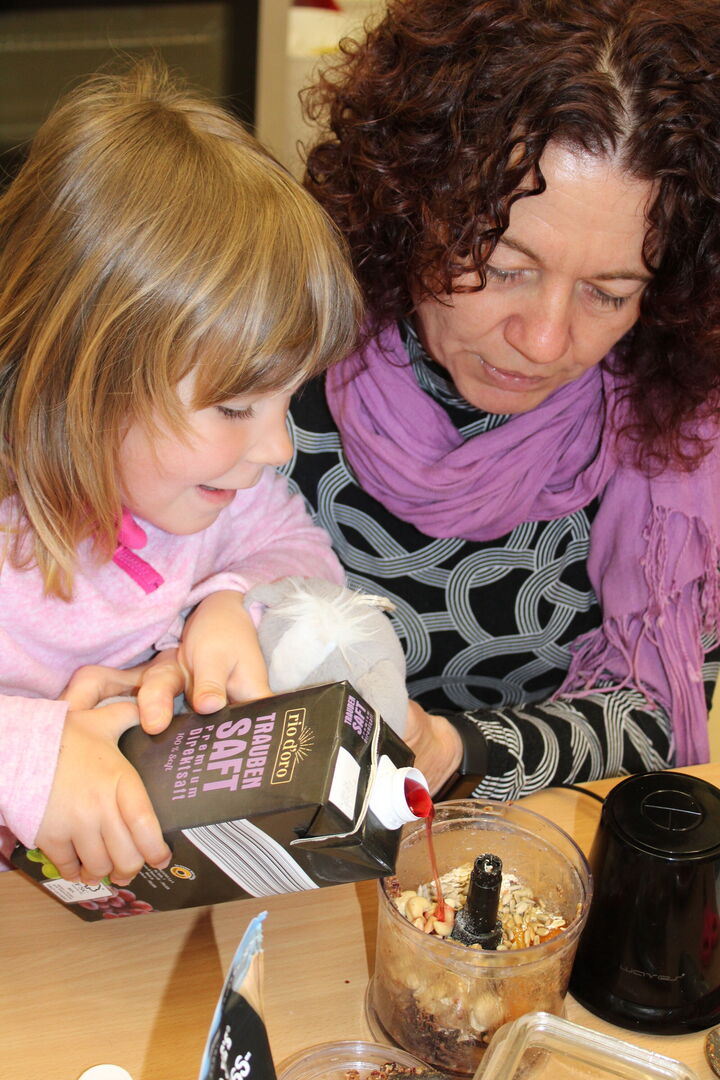 Nachdem Frau Roßmann sich schon am Vormittag gemeinsam mit den Kindern über eine ausgewogene Ernährung spielerisch austauschte und kleine leckere und vollwertige Zwischenmahlzeiten herstellte, waren am Abend die Eltern eingeladen, zum Thema: „Hunger vs. Appetit“ ins Gespräch zu kommen.