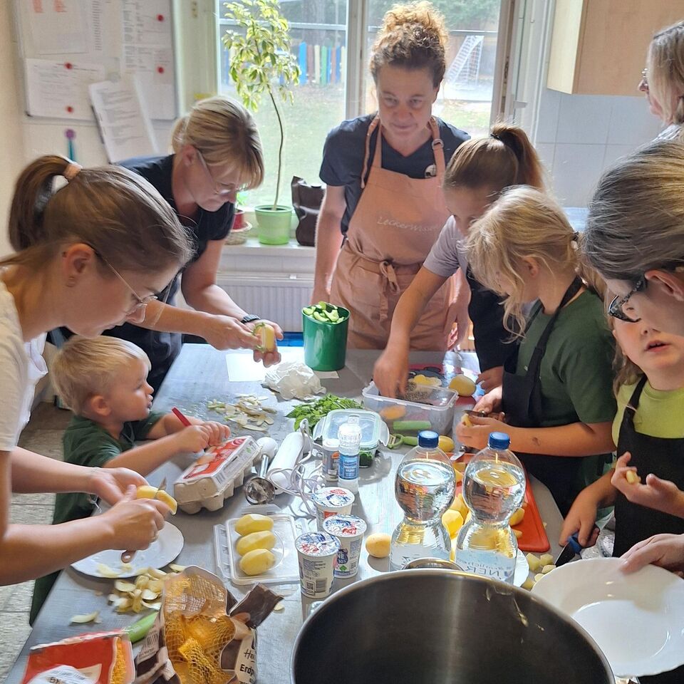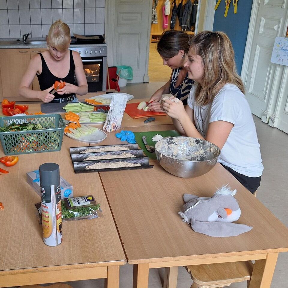 Am Nachmittag kamen zahlreiche „Sterntalerfamilien“ zusammen, um gemeinsam gesund zu kochen und anschließend in schöner Atmosphäre zu genießen. Unterstützung erhielten wir dabei von Anett Roßmann, Ernährungsberaterin bei der Kinderarche, welche wieder den Kindern schon bekannten Kochhasen „Schnuffel“ und allerlei leckere Rezepte mitbrachte.