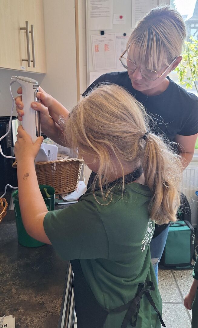 Kinder und Eltern hatten ganz viel Spaß beim gemeinsamen Tun und die Kinder lernten dabei unbekannte Kräuter wie Giersch, Brennnessel und Bärlauch kennen.