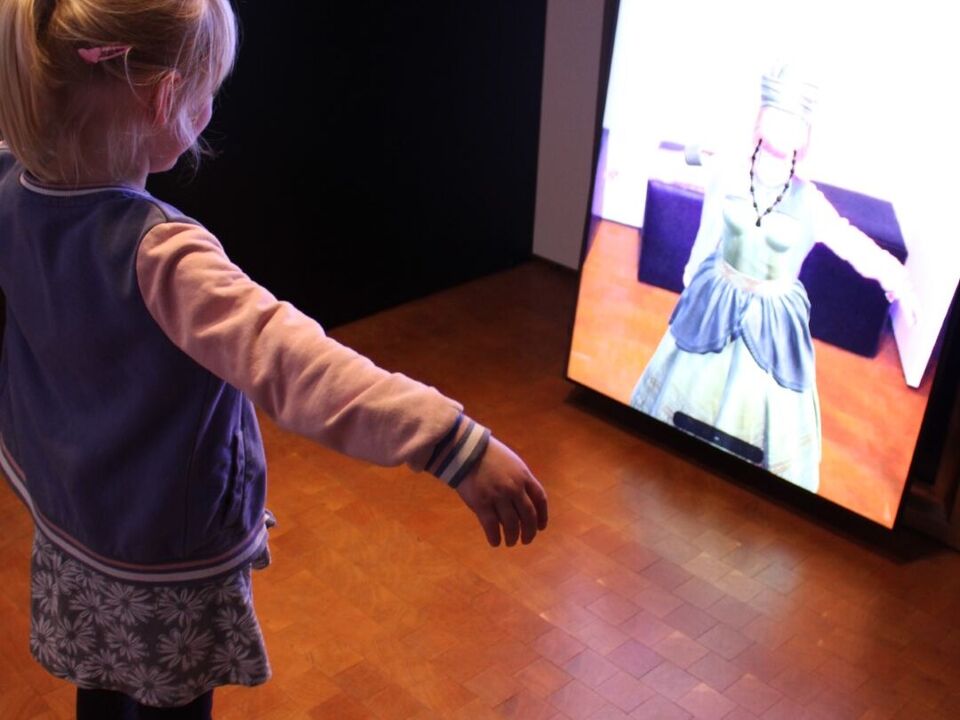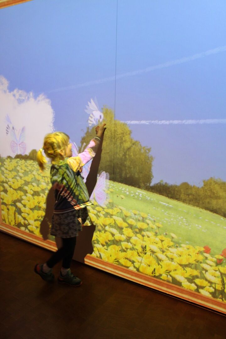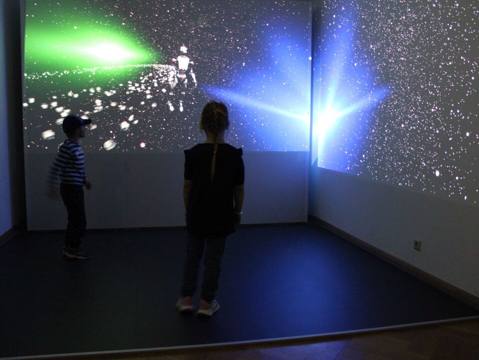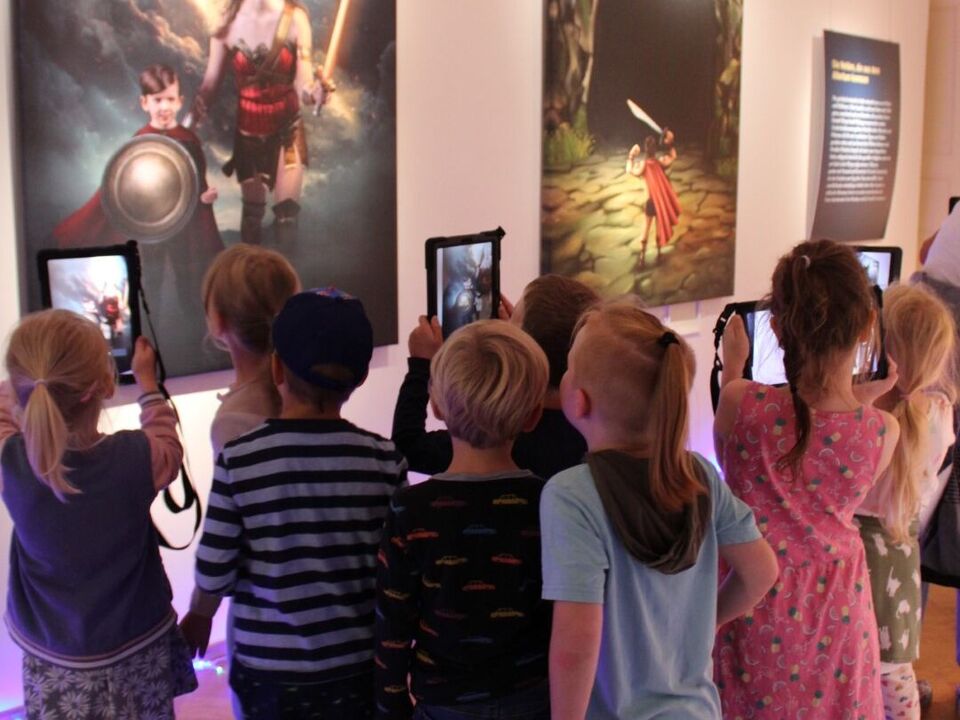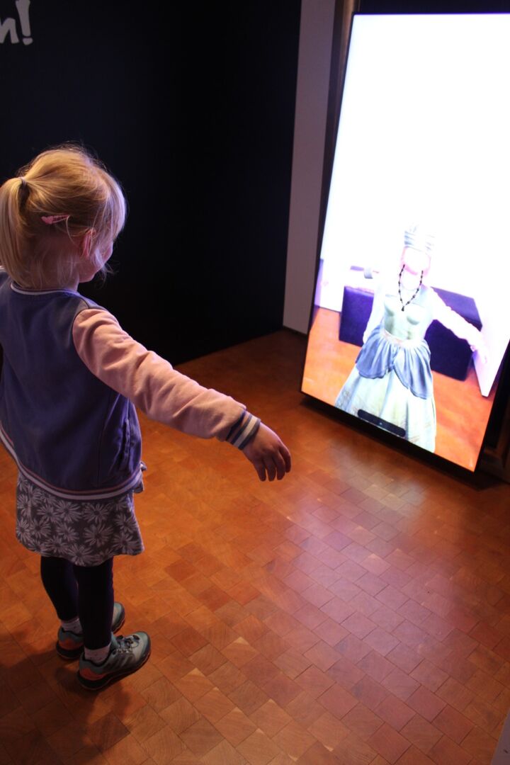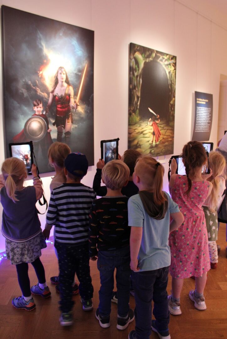 Die Kinder entdecken die multimediale Welt im Schloss Lichtenwalde.