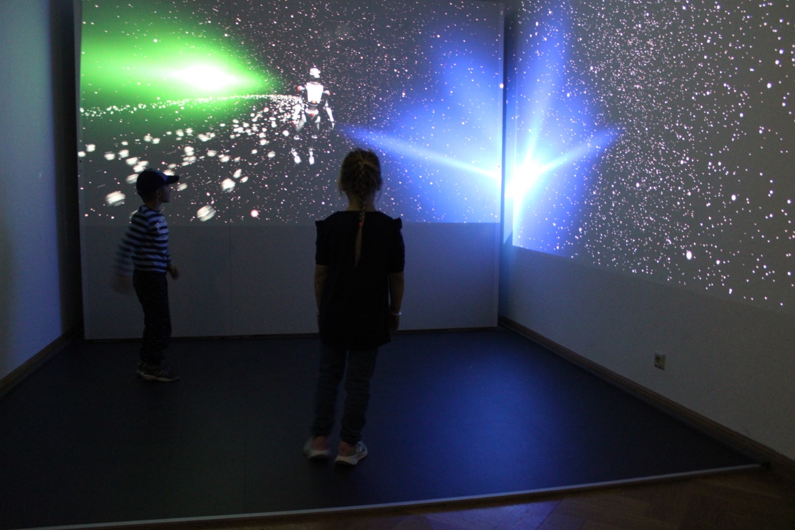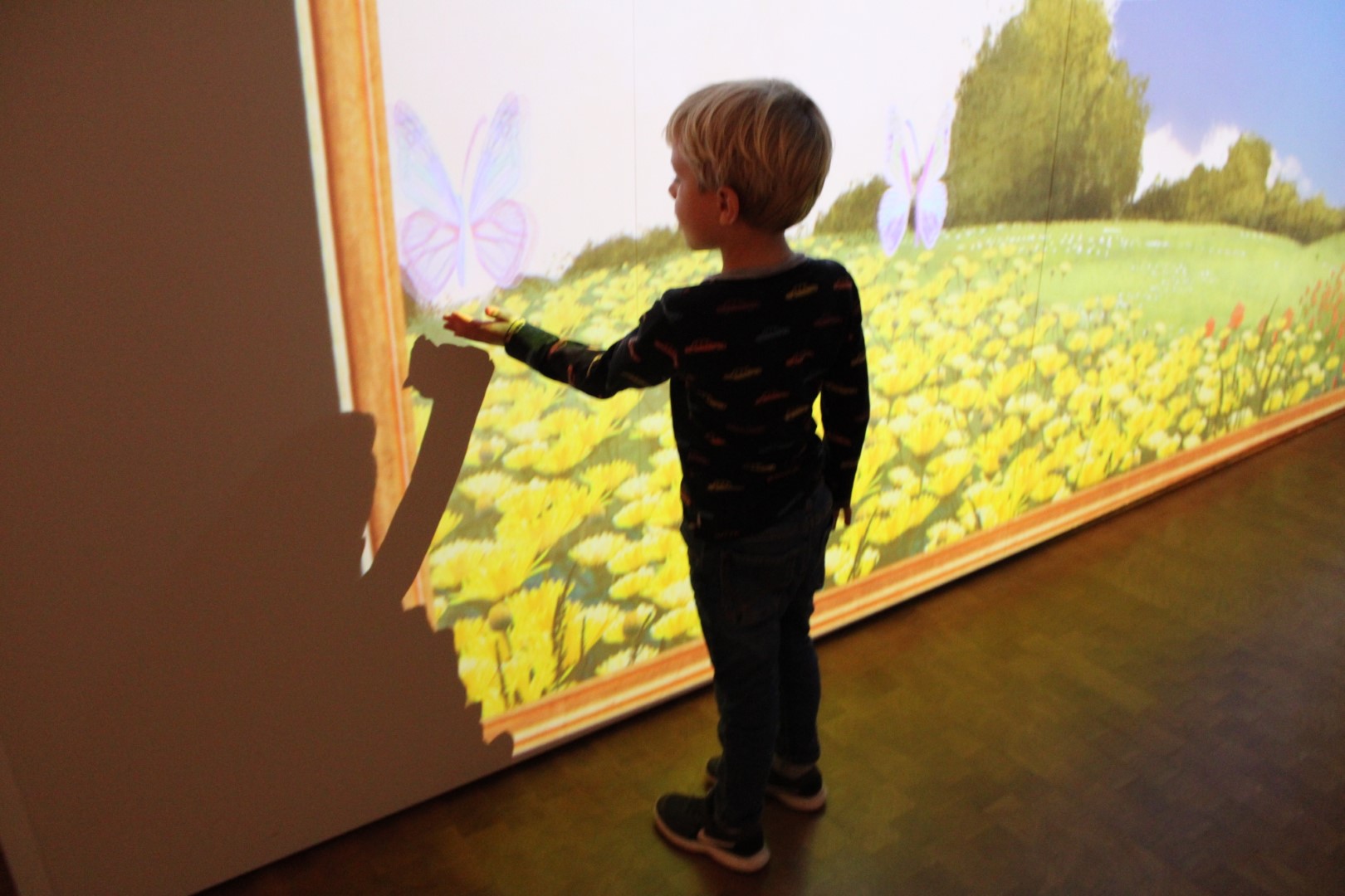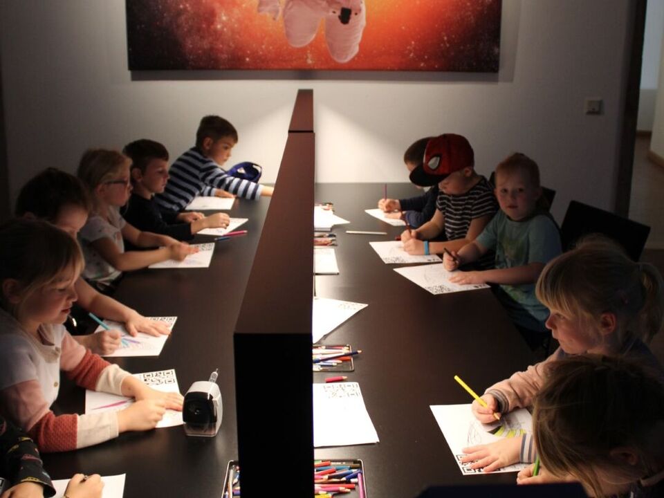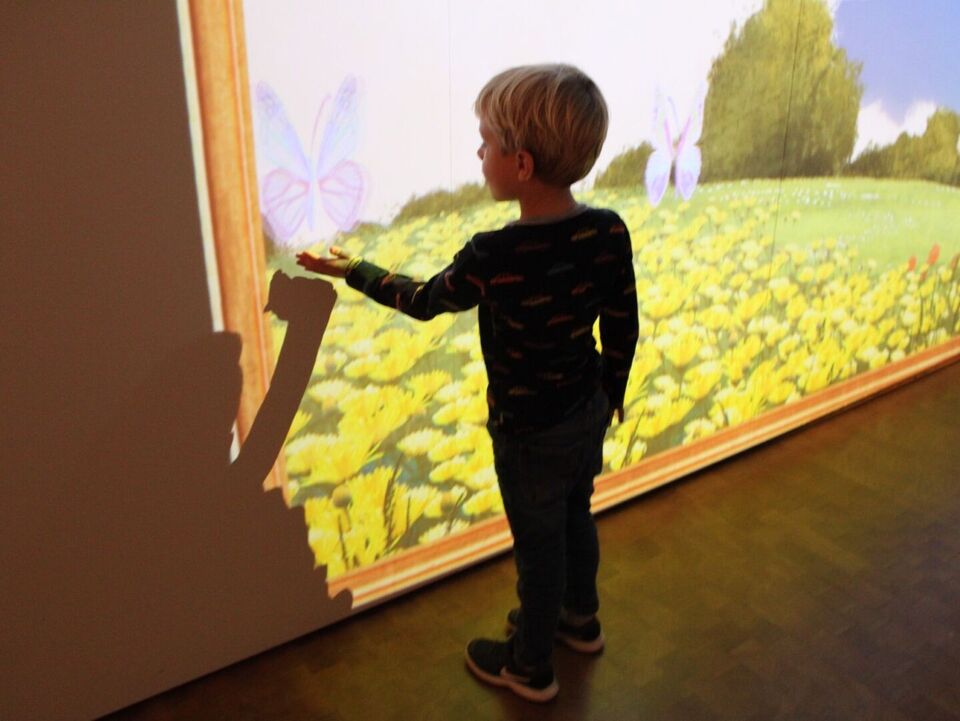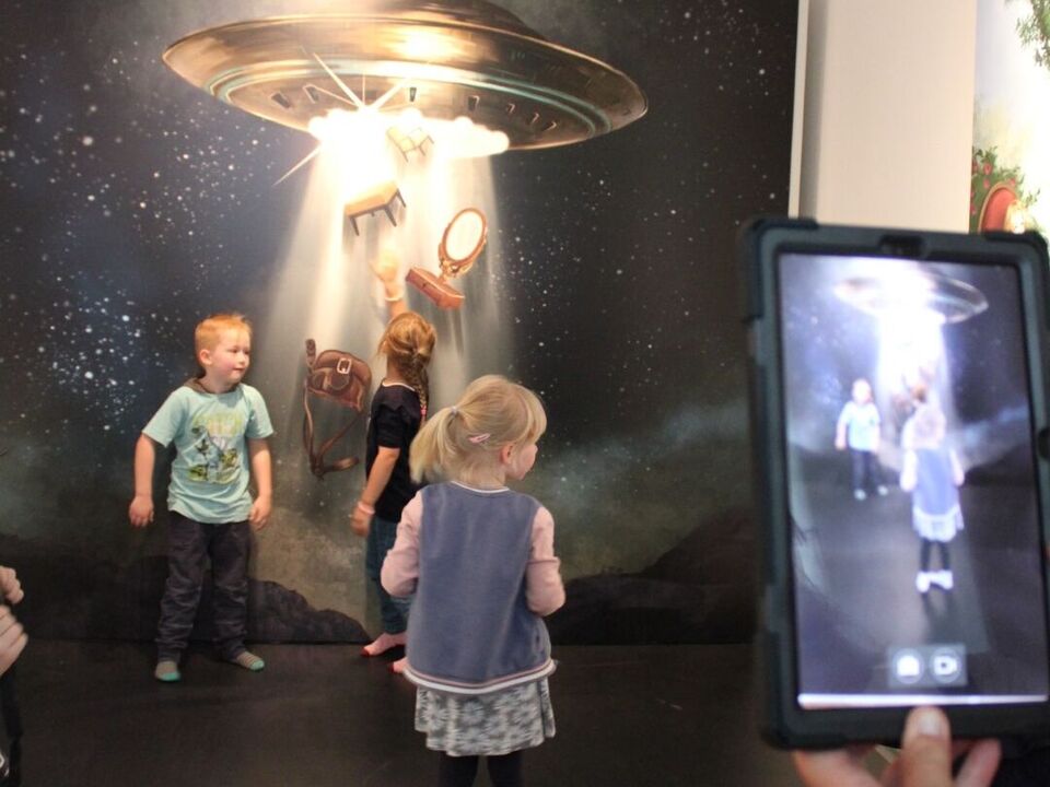 Die Kinder entdecken die multimediale Welt im Schloss Lichtenwalde.