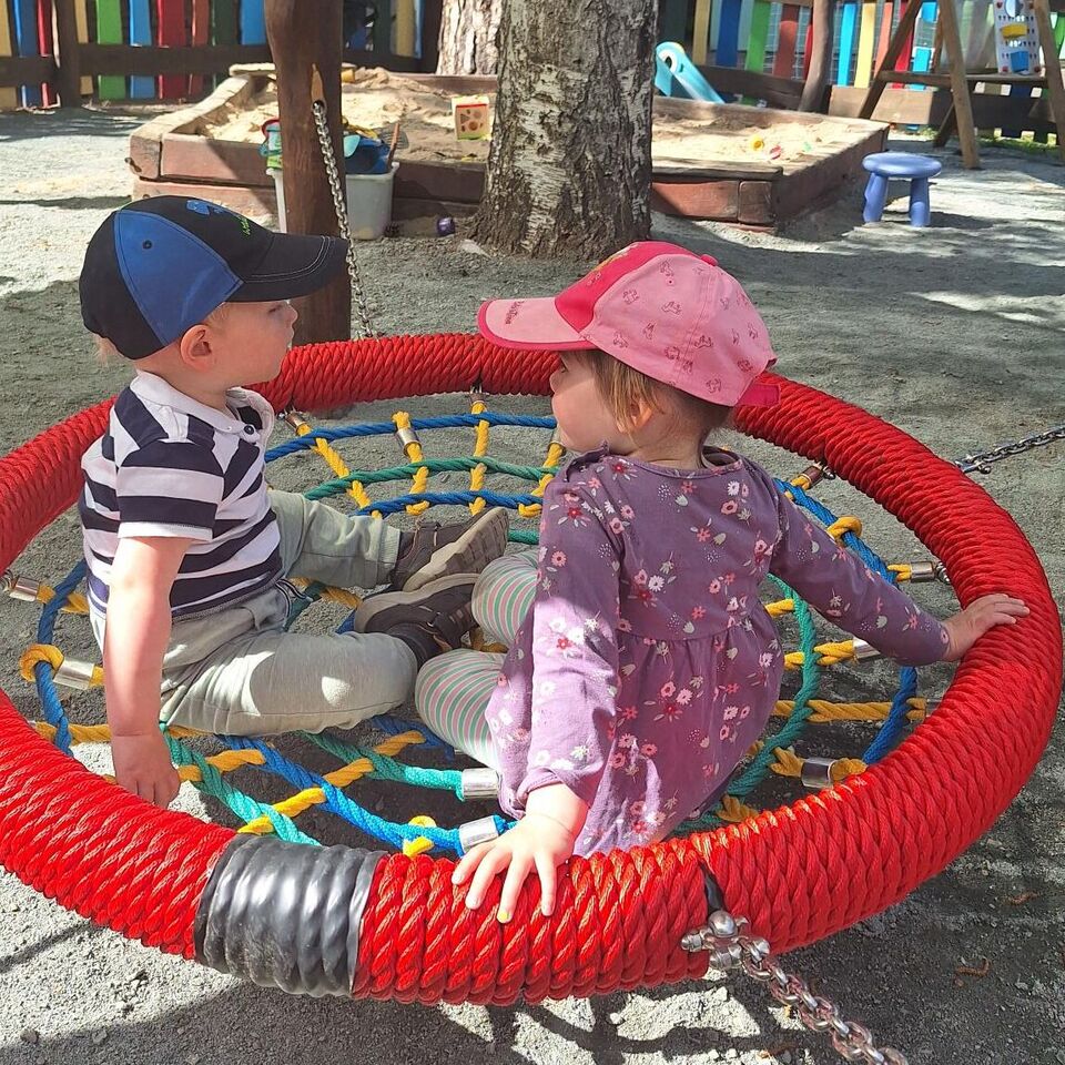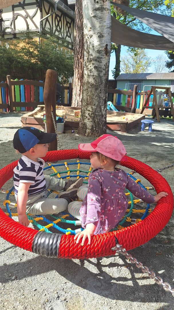 Da unser bisheriger Krippenbereich im Garten noch nicht optimal auf die Bedürfnisse der Kleinsten ausgerichtet war, haben wir ihn erweitert und nach den Wünschen der Kinder neu gestaltet… mit einer kleinen Nestschaukel und etwas mehr Raum, damit die Kinder Bobbycar fahren können. Auch ein Sonnensegel, welches die Kinder gut geschützt spielen lässt, konnten wir anbringen.