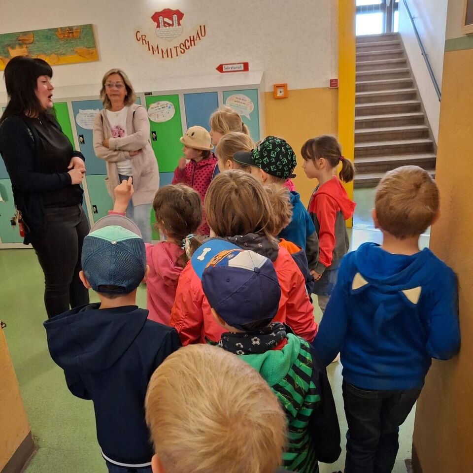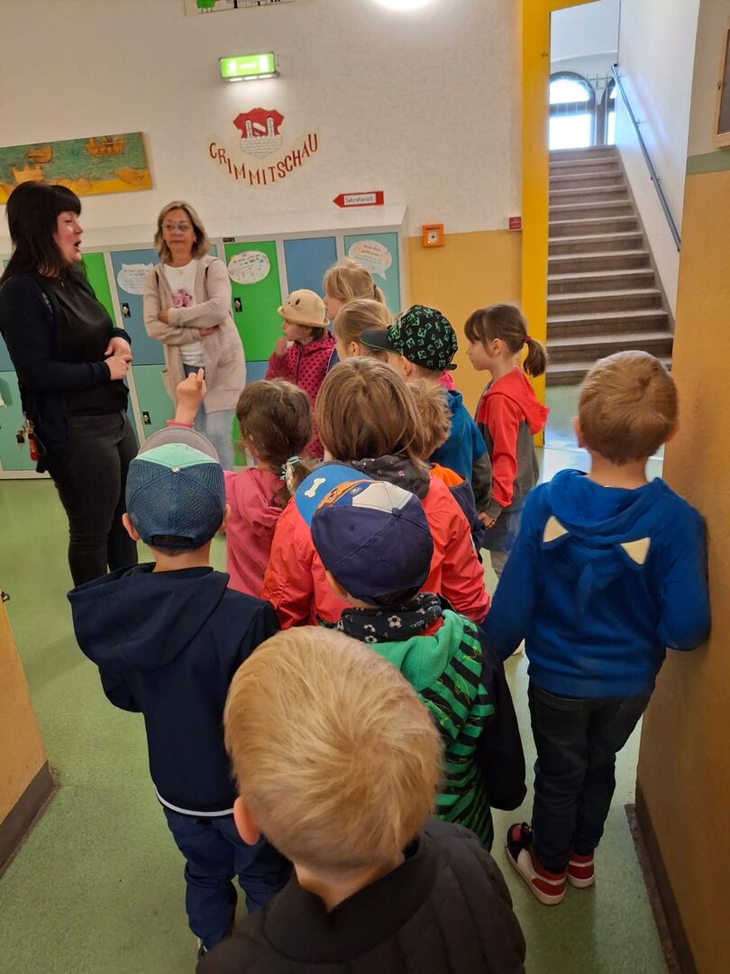Am 14.Mai 2025 besuchten unsere "Wackelzähne" die "Käthe- Kollwitz- Grundschule" in Crimmitschau. Die Kinder wurden von der Lehrerin Frau Heimann herzlich begrüßt und betraten staunend das große Schulgebäude mit den vielen Treppen und Türen.