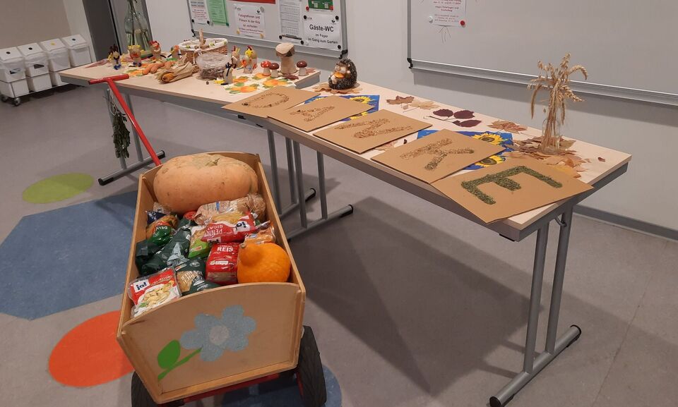 Erntegaben der Kirchgemeinde am Dom und der Kita "Villa Kunterbunt" am Altarplatz