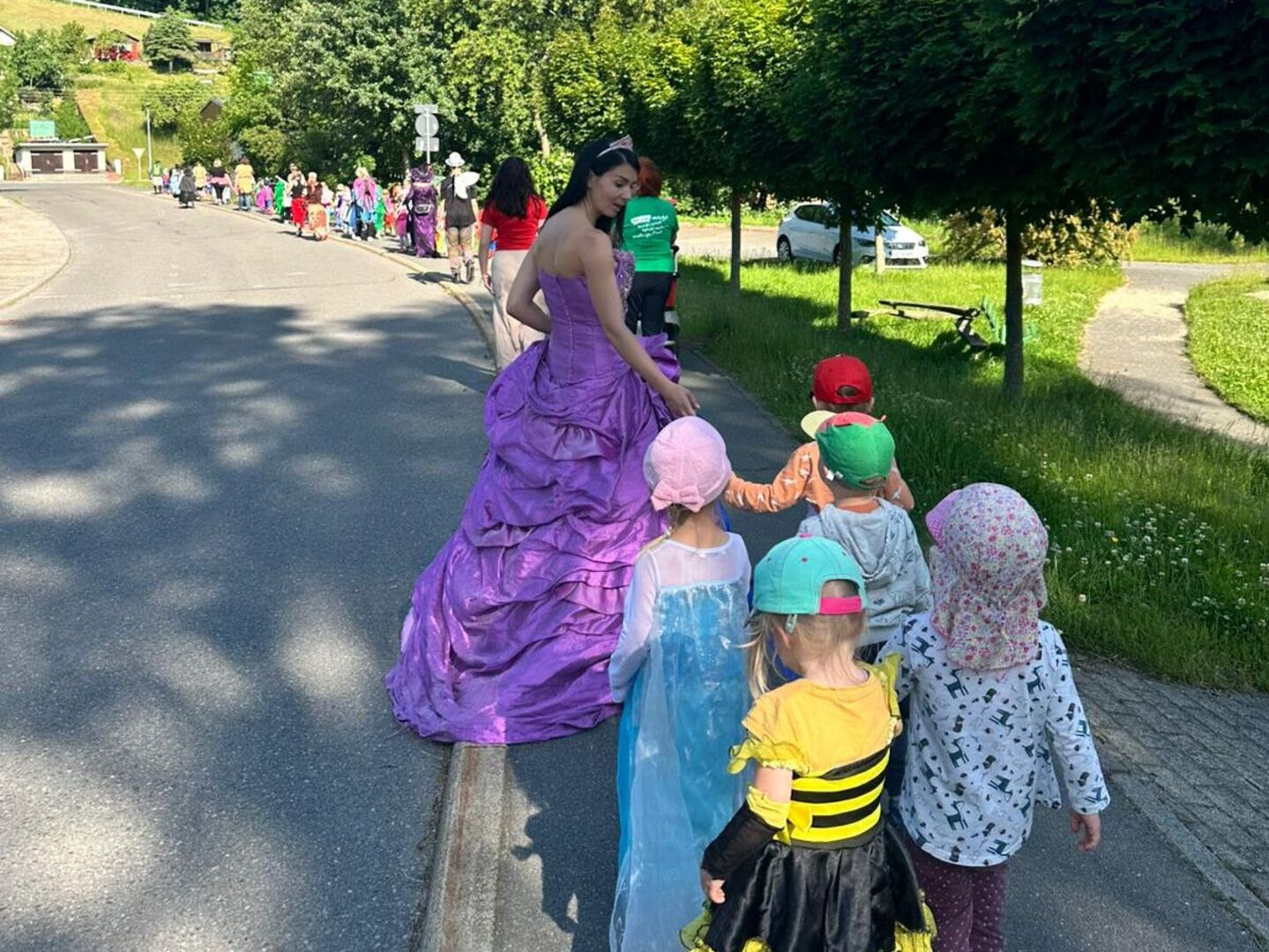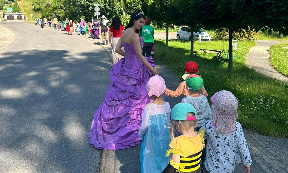 Auf magische Weise wurden in der Geschichte, die sie aufführten, alle Bäume grau und die Pflanzen verblühten. Die Vorschüler mussten das Fantasialand retten. Mit ihren selbst gewählten Superkräften als Hulk, Maui, Elsa, Batman oder Spiderwoman zeigten sie ihre Talente. Dafür gab es zwar viel Applaus, aber es reichte nicht aus, um die Welt wieder zum Blühen zu bringen. Das gelang erst, als sie ihre Kräfte bündelten und vereint gemeinsam das „Böse“ in „Gutes“ verwandelten. Die Pflanzen blühten wieder und die gute Fee brachte die lang ersehnten Zuckertüten im Konfettiregen.