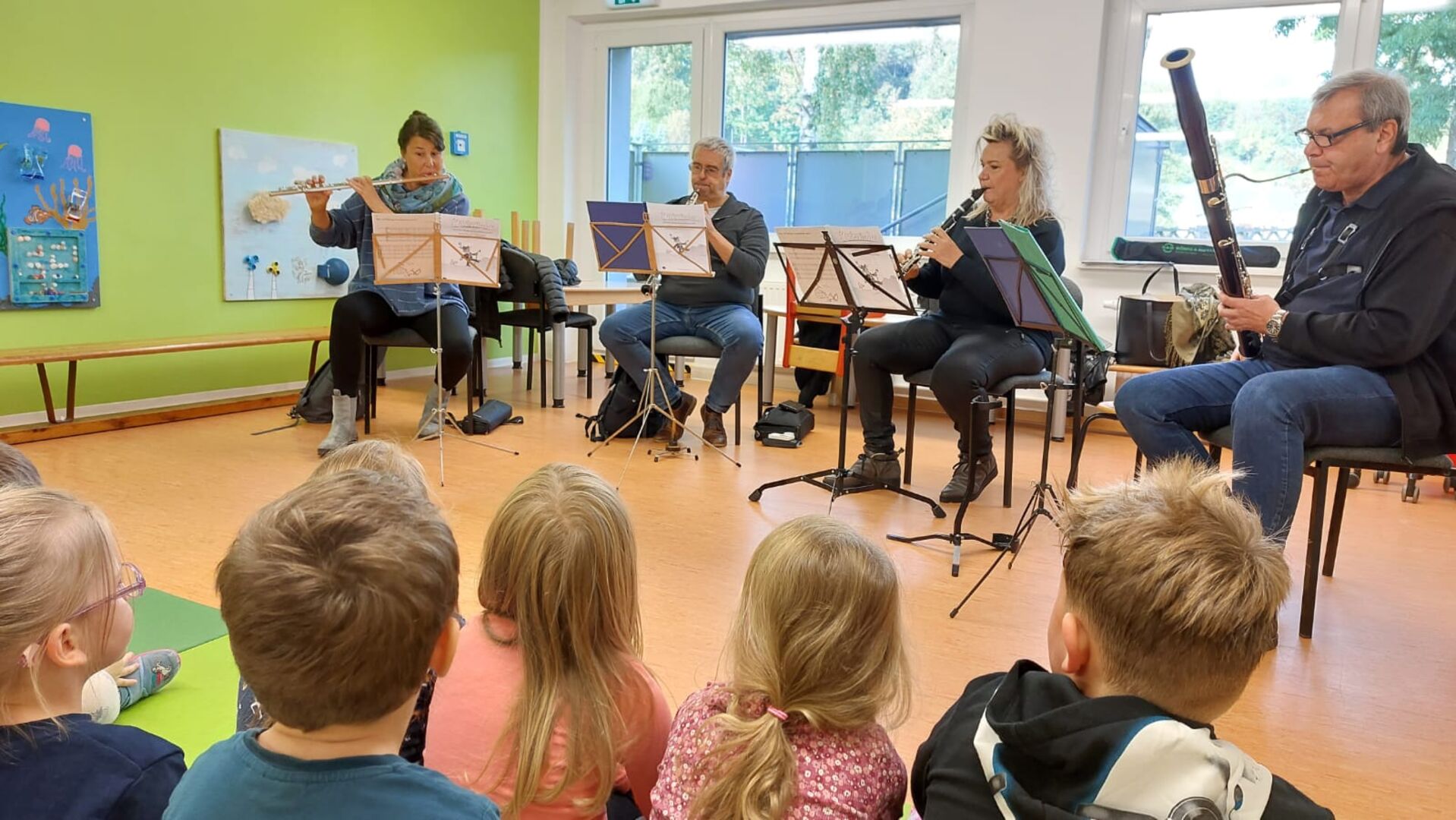 Unteren anderem waren die Vorschüler beim Flizzy-Sportabzeichen mit vollen Eifer dabei, haben am Tag der Zahngesundheit teilgenommen und die ortsansässige Zahnarztpraxis Börner besucht und beim Besuch vom Mittelsächsischen Theater die selbst ausgewählte Instrumentengruppe der Holzbläser kennengelernt.