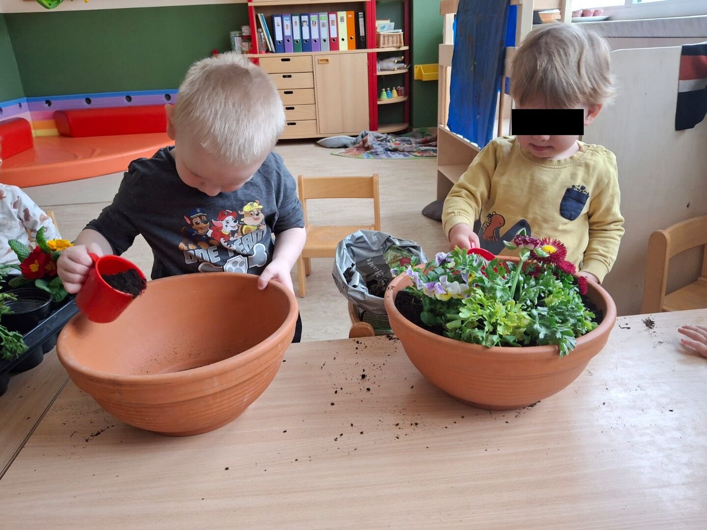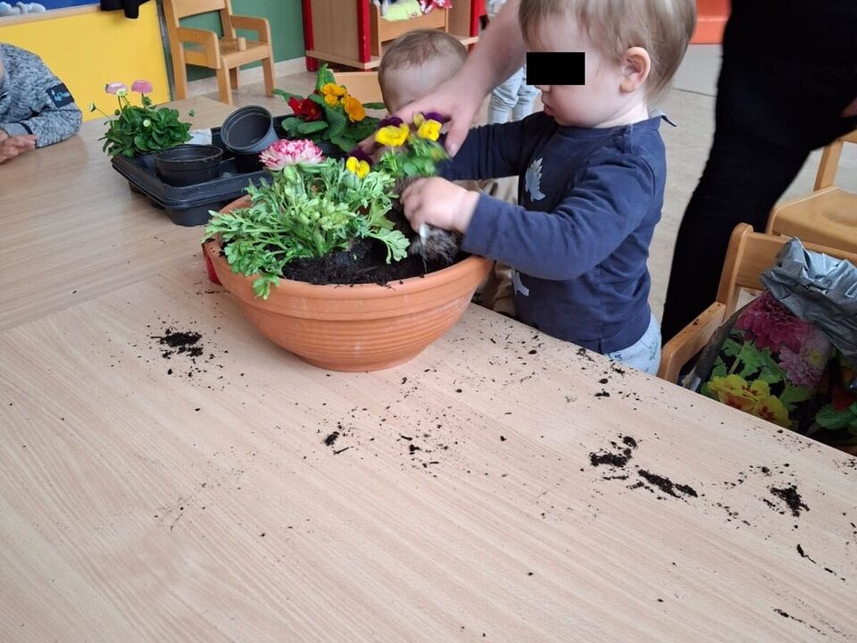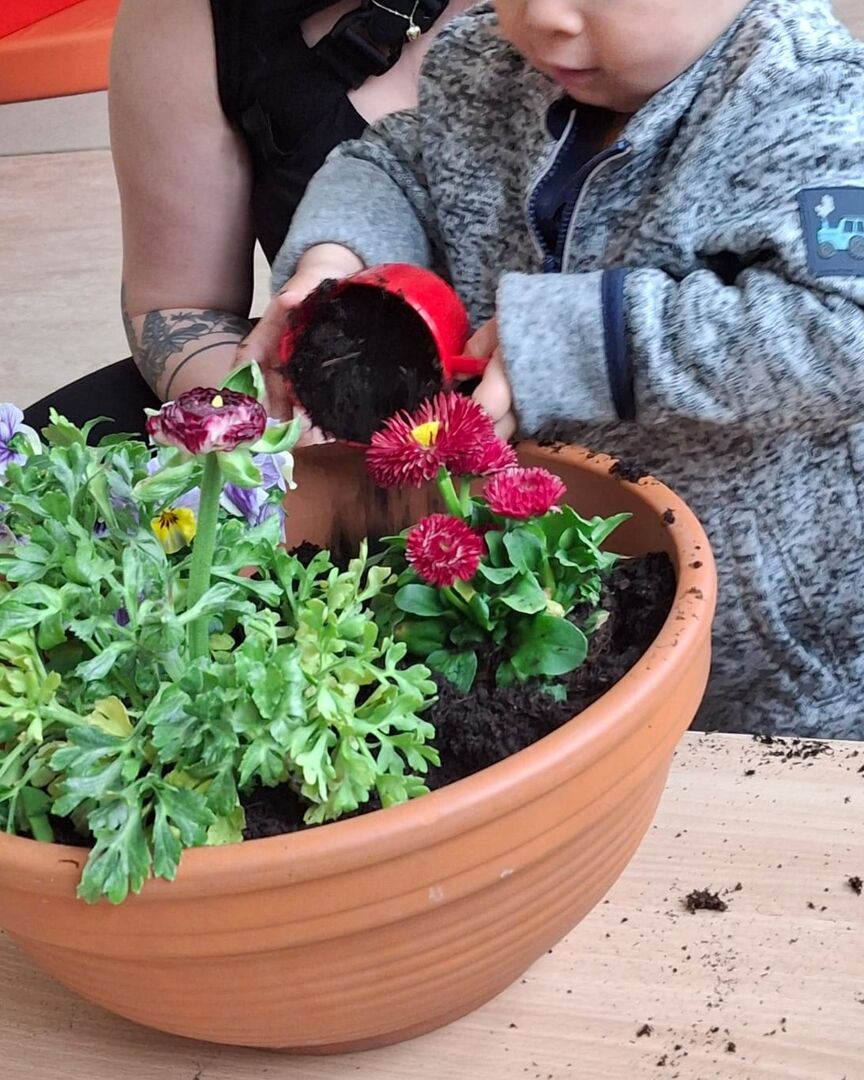 Auch die Allerkleinsten der Kita lernen schon die Frühblüher kennen. Neben Osterglocke, Hyazinthe und Traubenhyazinthen im Beet, lernen wir nun auch noch Stiefmütterchen, Ranunkel und ... kennen. Apropos Wurzeln kommen in die Erde, die Blüte nach oben in die Sonne, denn Blumen brauchen Sonne für Wärme und Licht und Wasser um uns jeden Tag wieder zu erfreuen und weiterhin so farbenfreudig zu erblühen...