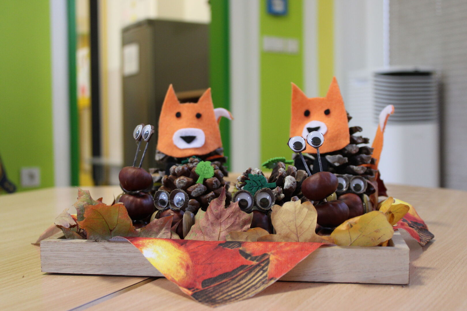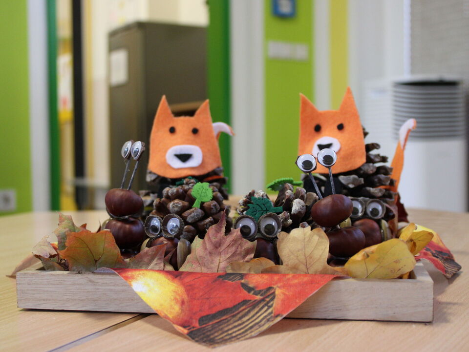 In unserer Kita startete nach den Ferien unsere alljährliche „Herbstwoche“. Wir haben unsere Zimmer herbstlich dekoriert, Obstspieße mit Schokolade hergestellt, mit Naturmaterialien tolle Sachen gebastelt, sind durchs Laub geflitzt und haben Herbstlieder gesungen. Das Highlight war natürlich unser Herbstfrühstück, bei dem es allerlei Leckereien gab. Nun freuen wir uns schon sehr auf den November und das bevorstehende Martinsfest mit Lampionumzug.