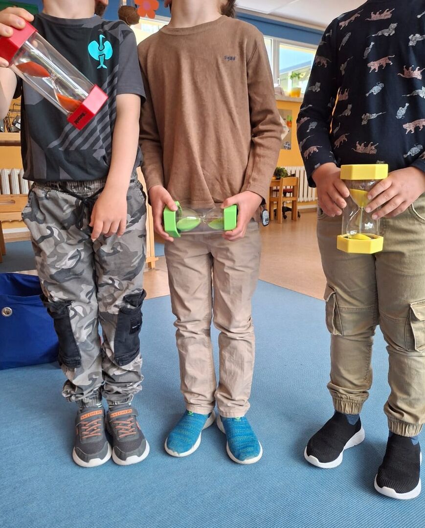 Sie wissen um Abläufe, Regeln, kennen die pädagogischen Fachkräfte, haben teilweise schon feste Freundschaften und freuen sich auf die Schule. Im Prinzip ist der ganze Kiga-Alltag: Vorbereitung auf die Schule und das Leben. In der Krippe und den Mischgruppen vor dem letzten Kindergartenjahr werden die Grundlagen gefördert. Zum Beispiel: die anderen und ich (Sozial- und Emotionalkompetenz erlangen), Stifthaltung (Feinmotorik), Muster erkennen und weiterführen (kognitive Fähigkeiten), gemeinsames erleben des Alltags (kommunikative Fertigkeiten) in der Einrichtung. Auch für diese Altersgruppen gibt es den“ Köpfchentag“. Einmal in der Woche treffen sich die Kinder einer zukünftigen Klasse. Verschiedene Spiele, kleine Arbeitsblätter und Lernspiele stehen im Vordergrund. Ja, Sie lesen richtig: spielen! Kinder in diesem Alter lernen spielerisch und mit allen Sinnen am leichtesten! Zu sehen und hören, gehören auch fühlen, anfassen und gemeinsames Tun. Das ist bei den Schulanfängern sehr ähnlich, aber auch schon länger. Je nachdem, wie lang die Konzentrationsspanne ist. Nun gibt es für jedes Kind ein Mäppchen mit Buntstiften, Radiergummi und Co. Es wird darauf geachtet, dass wir den Kindergarten nicht „verschulen“, sondern Vorfreude wecken, Ängste nehmen und gemeinsam viele AHA´s erleben. Möglichst vom Tun (3 D), zur Arbeit am Blatt (2D). Ein Beispiel? OK. Mengenlehre. Eine Grundlage dafür bildet das Sortieren von Dingen. Wir sortieren nach verschiedenen Gesichtspunkten, erst praktisch, dann auf einem Arbeitsblatt unter wechselnden Sortiermerkmalen. Oft eingepackt in ein Spiel, nehmen die Kinder solche Aufgaben gerne an. Schnell merken sie: Sortieren ist nichts Anderes als aufräumen :) Ebenso halten wir Bewegung im Freien und eine Entspannungsphase nach dem Mittagessen für wichtig. So gestalten wir einen sanften Übergang in die Grundschule: zuhören, andere ausreden lassen, vor anderen sprechen, Konflikte lösen, Rücksicht nehmen. Wie spitze ich einen Stift? Wie bindet man eine Schleife? Wie loche ich Blätter und hefte diese ein? Die zukünftige Klassenlehrerin oder Klassenlehrer besucht die Kinder im Kindergarten. So fügen sich viele Puzzelteile zu einem Grossen Ganzen.
