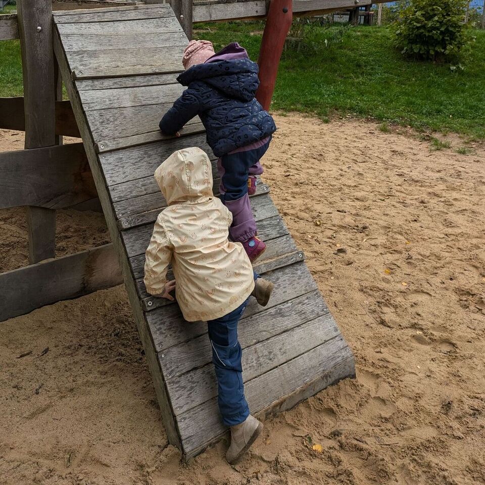 Es wird beobachtet und sich über das Beobachtete gemeinsam in der Gruppe ausgetauscht. Im gesamten Garten wird sich bewegt, alles erkundet, geklettert, gebacken, geschaukelt, gebuddelt und gesprungen. (motorische Entwicklung)