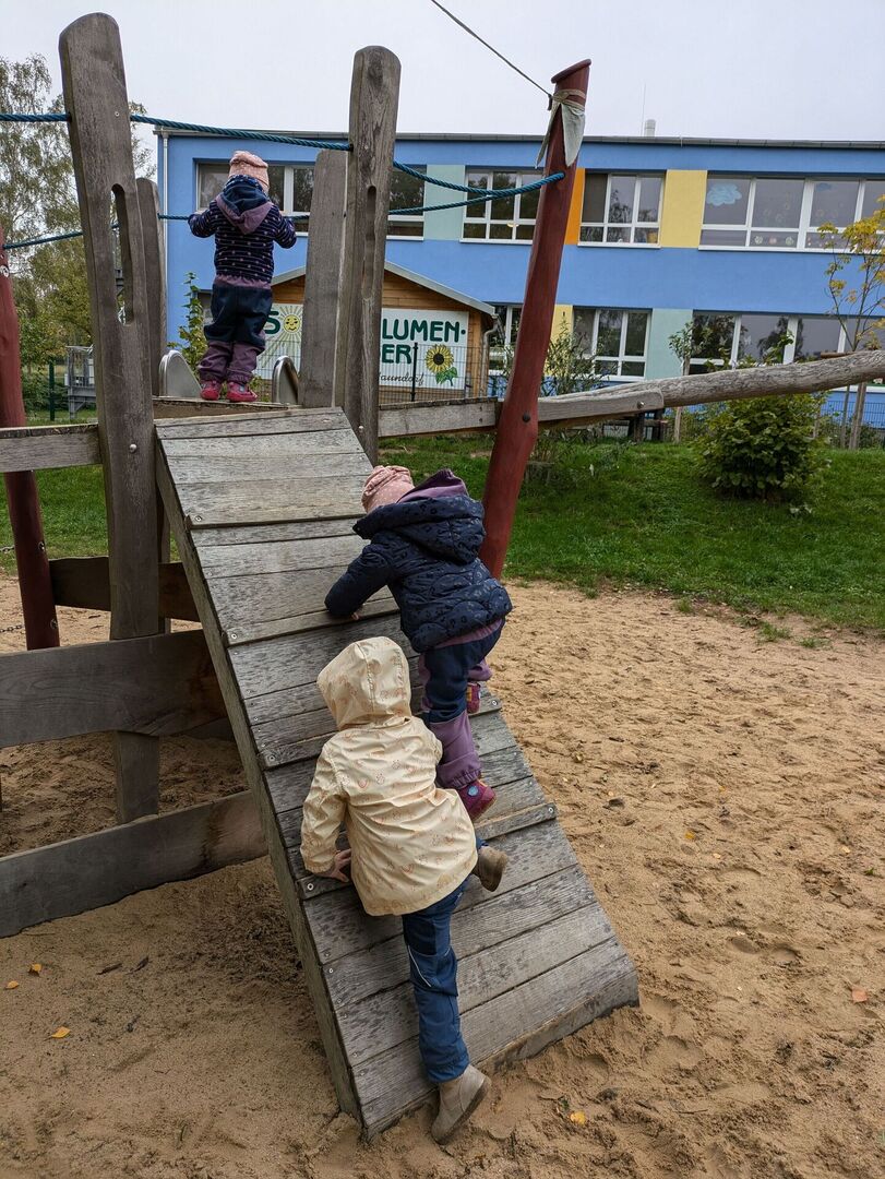 Wir lernen, dass wir Wetter nicht beeinflussen. Mit wettergerechter Kleidung wie Matsch-/Regenhose und -jacke, passenden Schuhen oder Gummistiefeln, Sonnenhut und Sonnencreme, gefütterten Stiefeln und wasserabweisender Kleidung, sowie mit ausreichend Wechselkleidung in unserer Einrichtung sind wir immer aber für jedes Wetter gewappnet und können den Aufenthalt im Freien genießen.