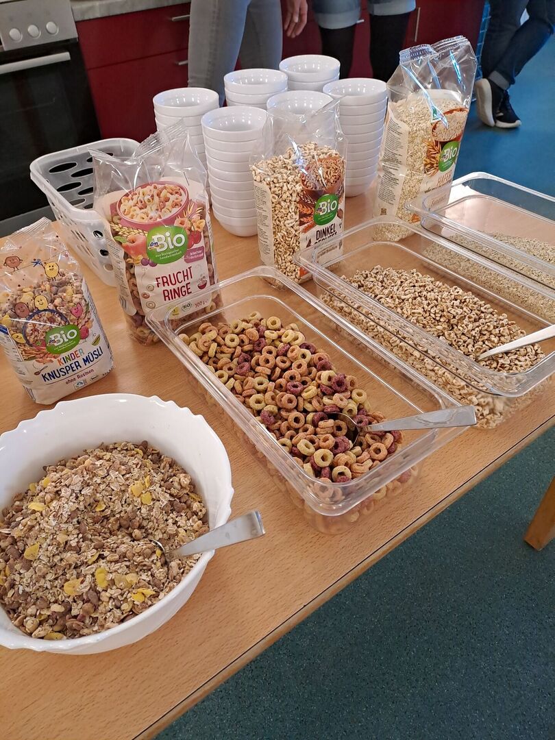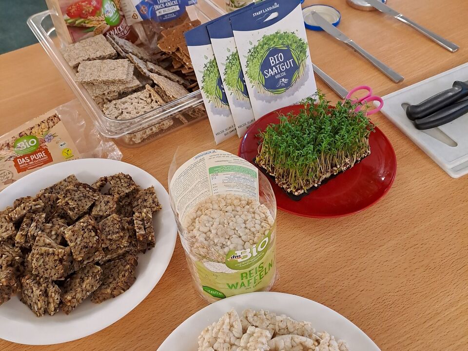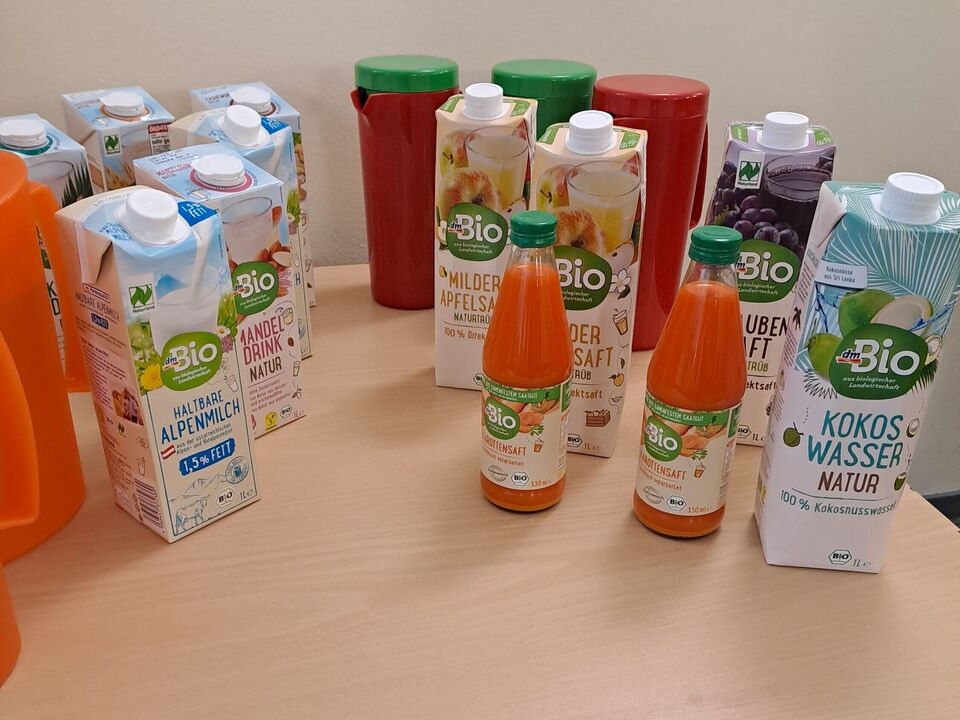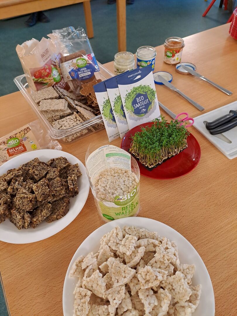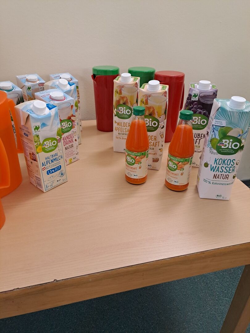 Von puren Haferflocken bis hin zu Kokoswasser war alles dabei. Wir probierten Brot, das fast nur aus Körnern bestand mit verschiedenen Brotaufstrichen aus Cashews und Tomaten. Wir staunten über das vielfältige Müsli- und Cornflakesangebot - alles in BIO- Qualität. Und wir stellten fest: Gescmäcker sind verschieden. Dem einen schmeckt der Hafer- oder Mandeldrink und der andere liebt Möhrensaft. Nur bei einem waren sich die Kinder einig: Kokoswasser ist nicht unser Ding.