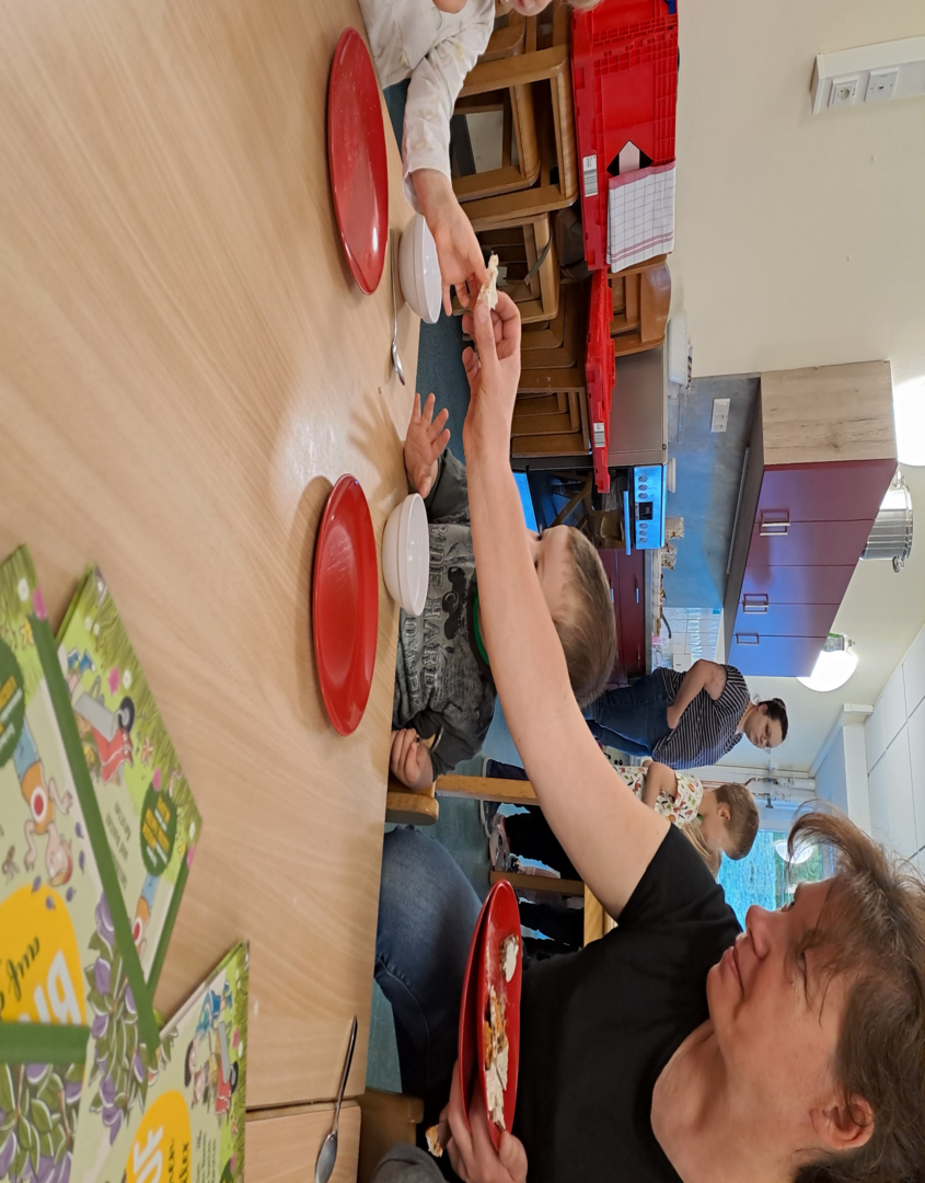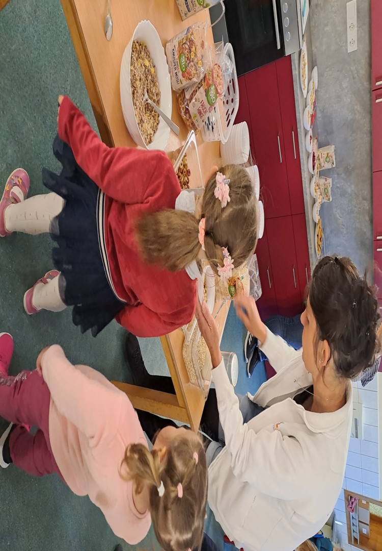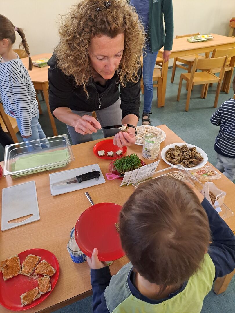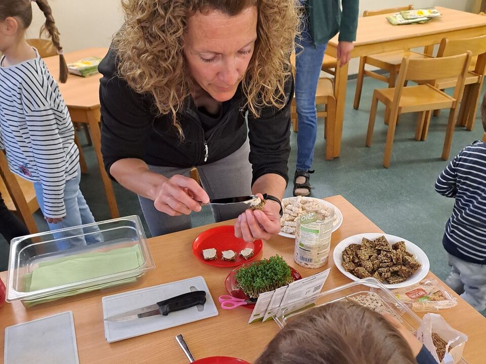 Von puren Haferflocken bis hin zu Kokoswasser war alles dabei. Wir probierten Brot, das fast nur aus Körnern bestand mit verschiedenen Brotaufstrichen aus Cashews und Tomaten. Wir staunten über das vielfältige Müsli- und Cornflakesangebot - alles in BIO- Qualität. Und wir stellten fest: Gescmäcker sind verschieden. Dem einen schmeckt der Hafer- oder Mandeldrink und der andere liebt Möhrensaft. Nur bei einem waren sich die Kinder einig: Kokoswasser ist nicht unser Ding.