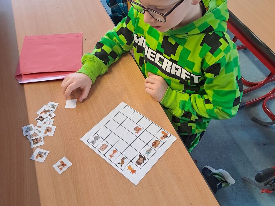 Weitere Rätsel beschäftigen uns im Hort: Logikrätsel. Mit viel Eifer sind die Kinder dabei Schneeflocken in die richtige Reihenfolge zu legen oder Schal und Mütze in die vorgegebene Farbkombination zu bringen.