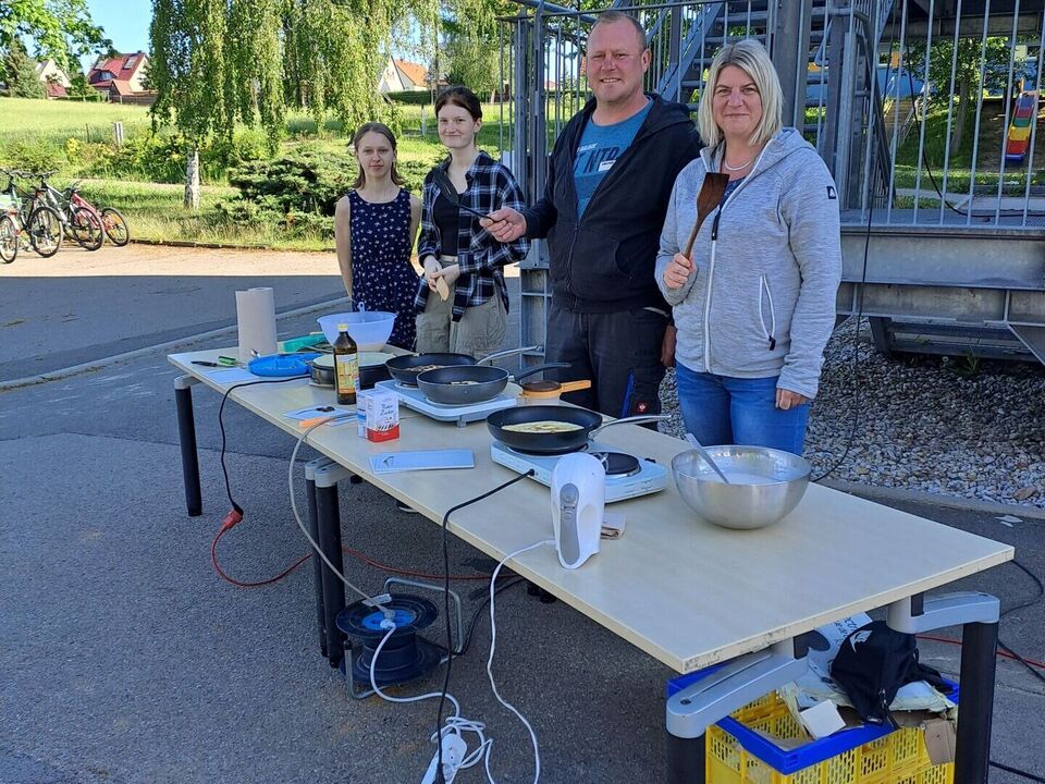 Und tatsächlich wäre das Eierkuchenbacken an dem Tag ohne die helfenden Hände, aufgrund von Personalausfall nicht möglich gewesen.