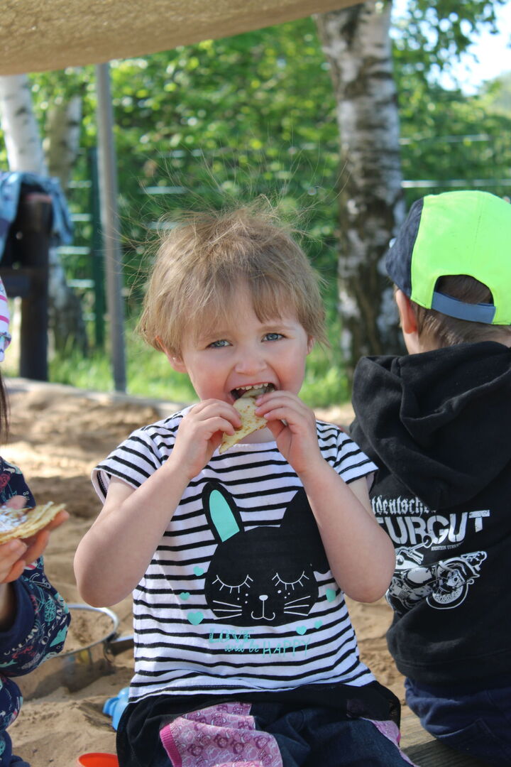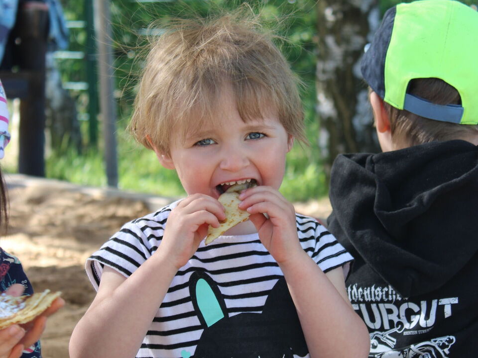 Leonie schmeckt es! Herzlichen Dank! Eltern und Praktikanten helfen uns einen lang ersehnten Wunsch der Kinder zu erfüllen! Wir möchten Eierkuchen zum Frühstück!